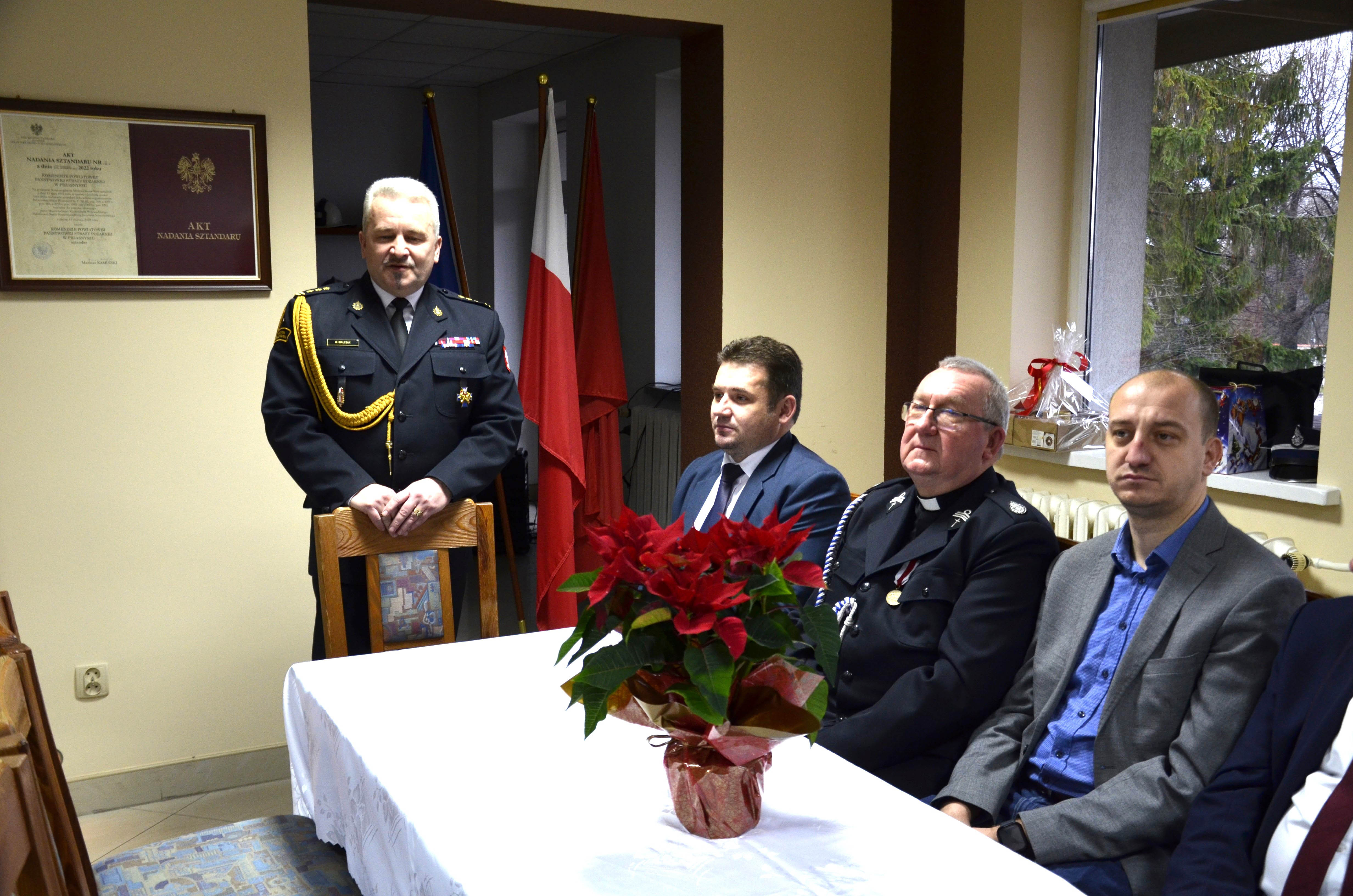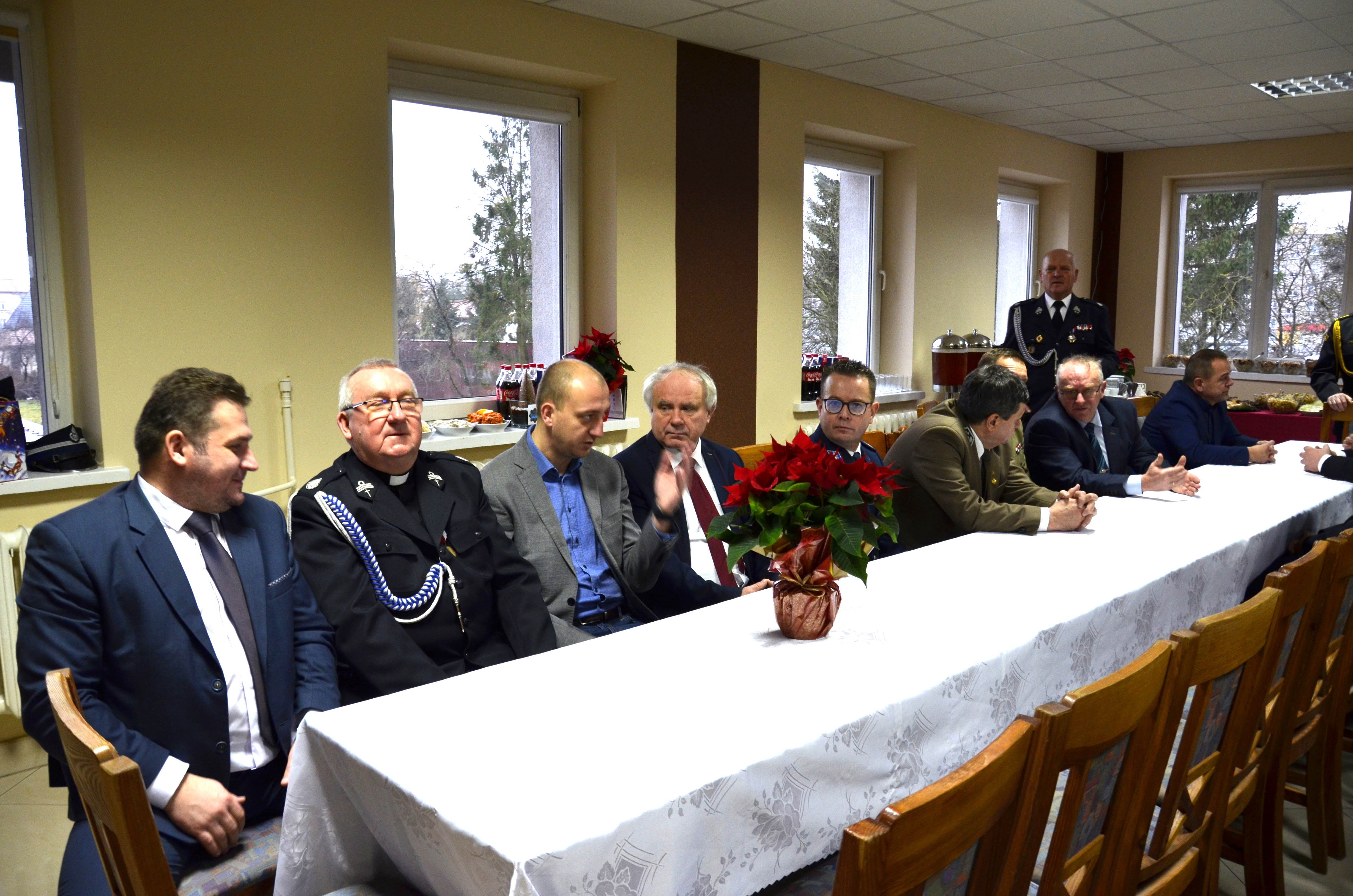 Komendant Powiatowy st. bryg. mgr inż. Waldemar Białczak przywitał przybyłych gości, którzy zaszczycili nas swoją obecnością, krótko podsumował wydarzenia i osiągnięcia mijającego roku oraz złożył wszystkim uczestnikom i ich rodzinom życzenia świąteczne. Poświęcenia opłatka i błogosławieństwa zgromadzonym dokonał Powiatowy Kapelan Strażaków PSP i OSP o. Wiesław Wiśniewski - Proboszcz parafii pw. Św. Stanisława Kostki w Przasnyszu. Strażacy oraz zaproszeni goście przełamali się opłatkiem w miłej rodzinnej atmosferze oraz złożyli sobie najszczersze życzenia i wspólnie zasiedli do wigilijnego posiłku.