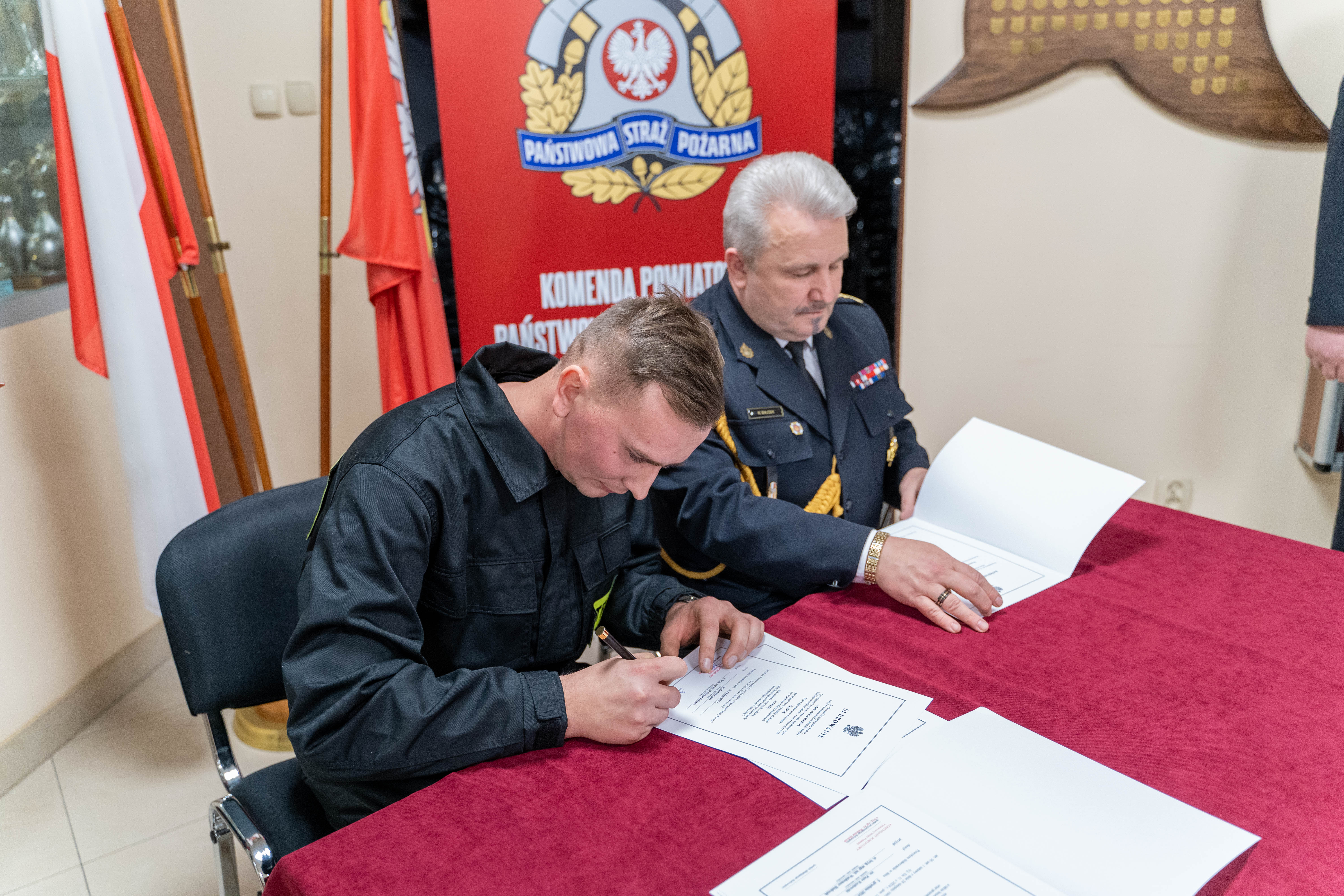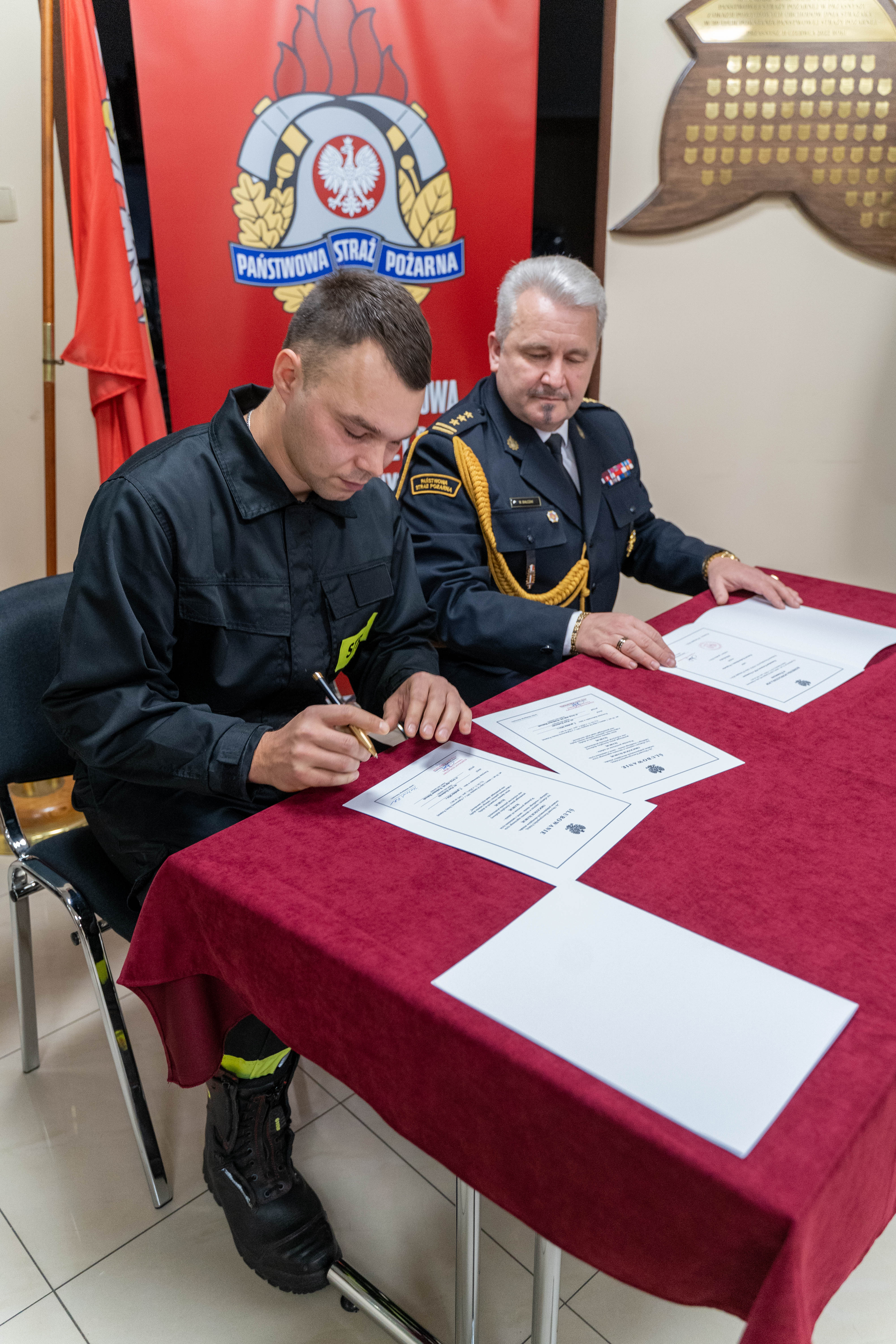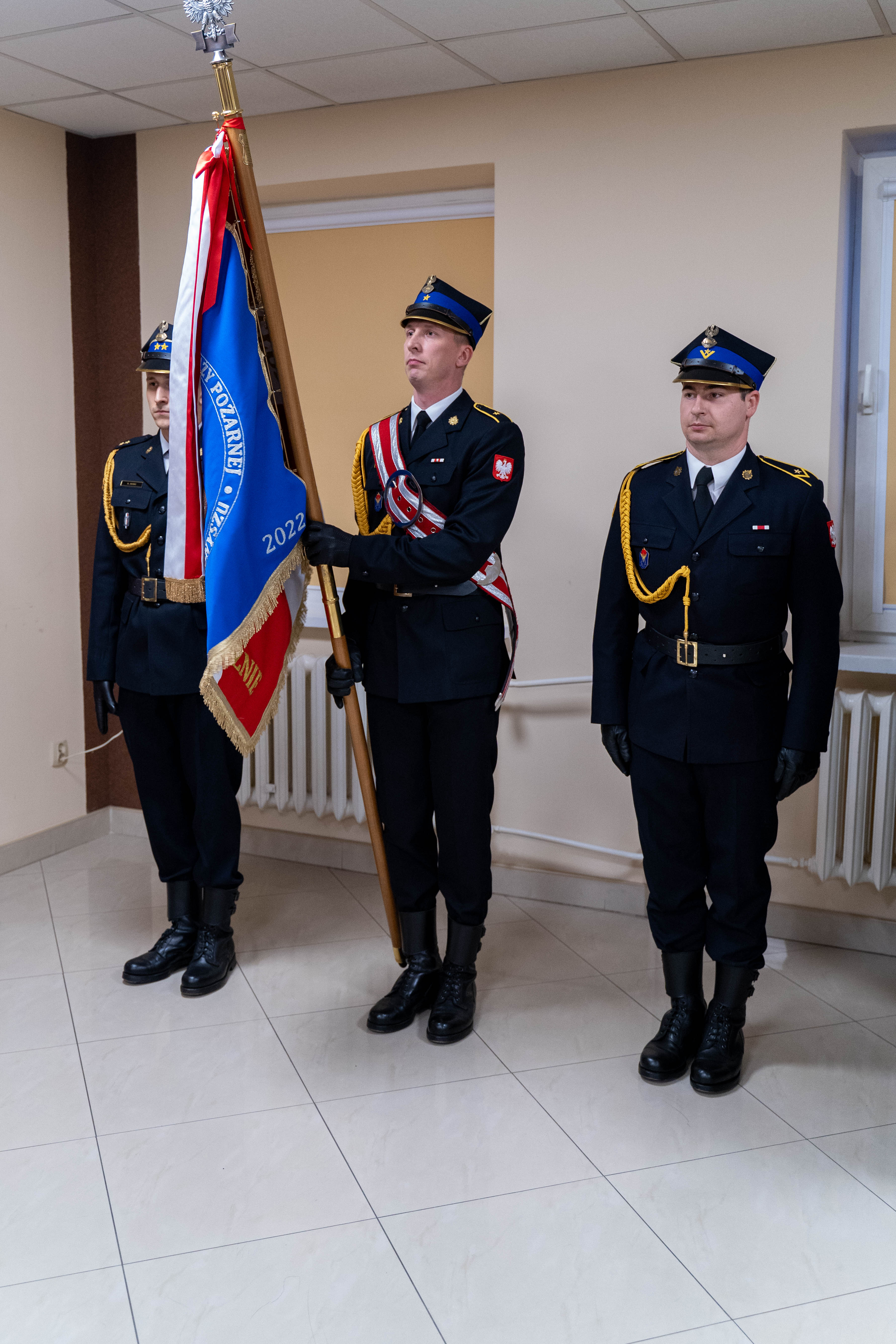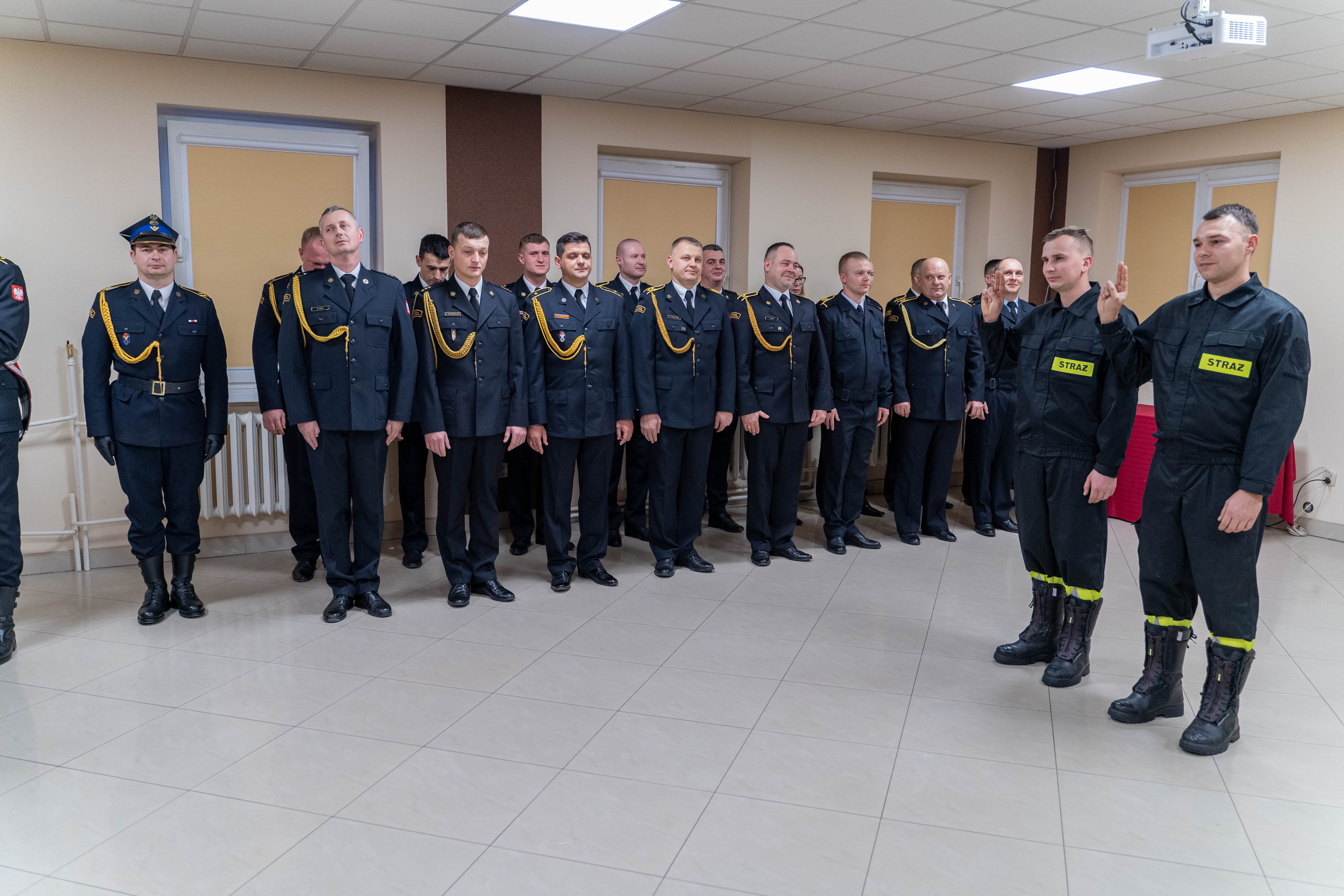 W ramach uroczystości miało miejsce ślubowanie dwóch nowo przyjętych strażaków: str. Bartosza Kępki oraz str. Piotra Kozłowskiego. Obaj młodzi strażacy złożyli ślubowanie, zobowiązując się do służby na rzecz bezpieczeństwa obywateli oraz do przestrzegania etyki zawodowej. Ich przyjęcie do grona strażaków to nie tylko osobisty sukces, ale również wzbogacenie zespołu o nowych, zmotywowanych ludzi.