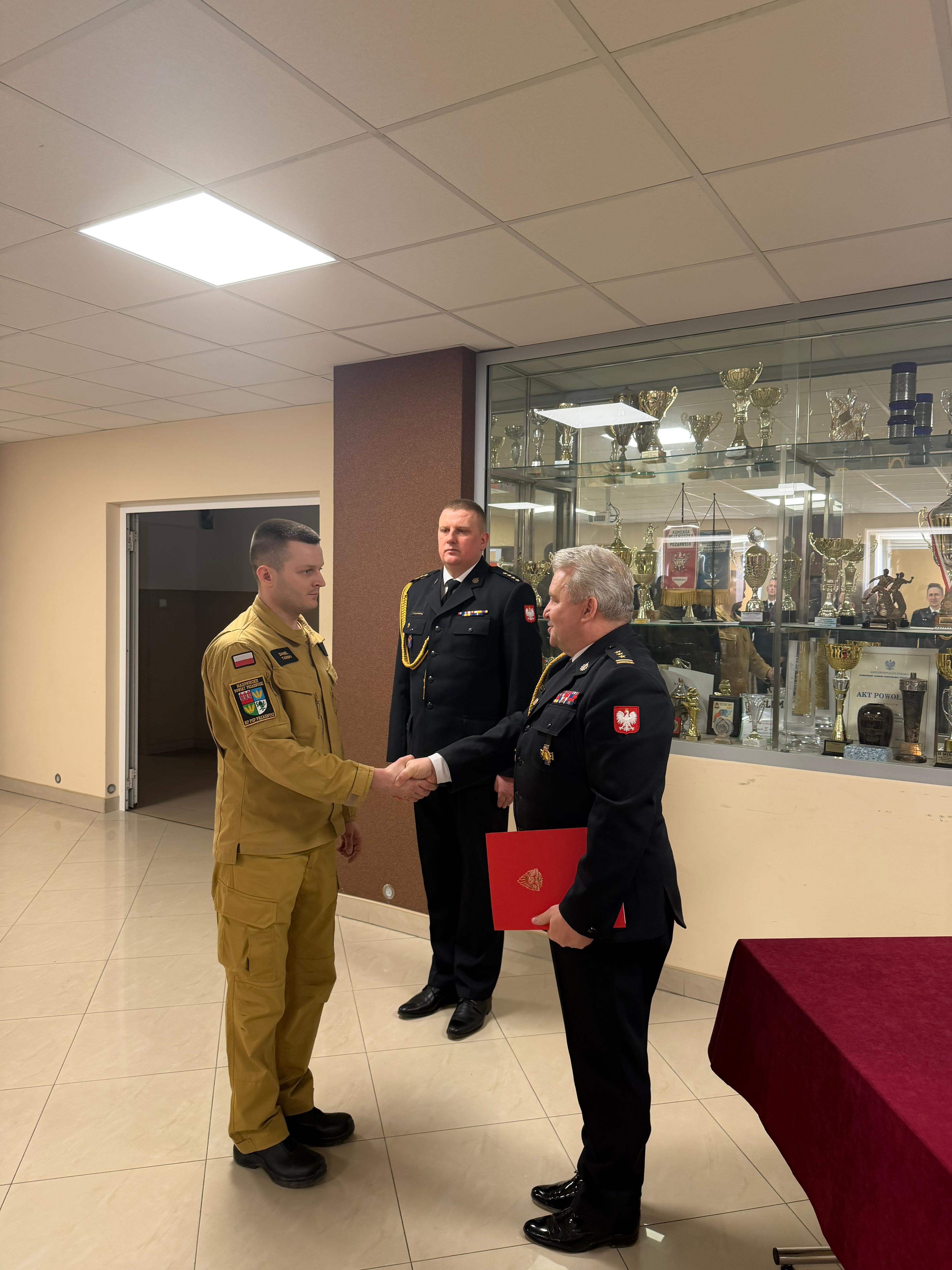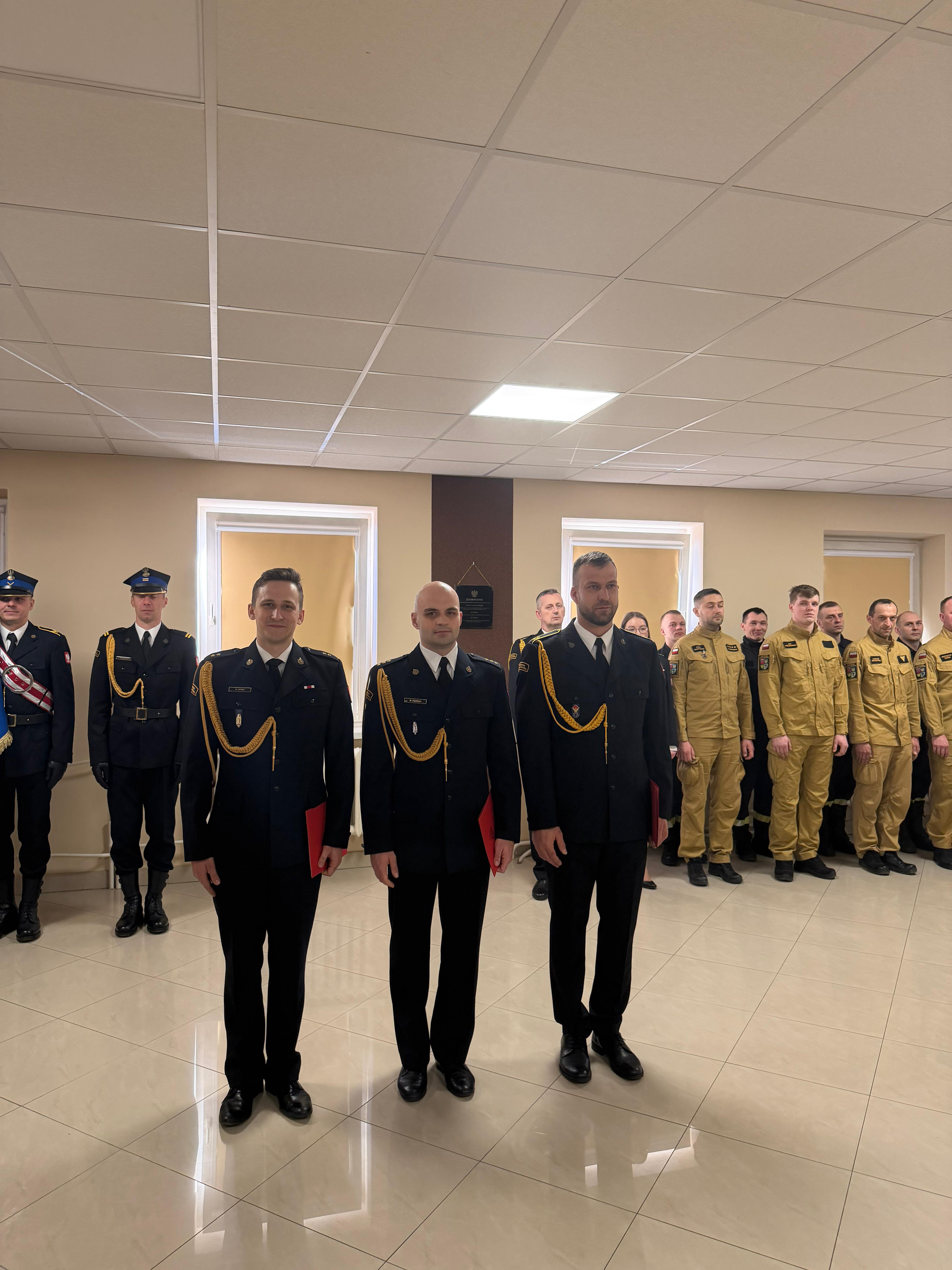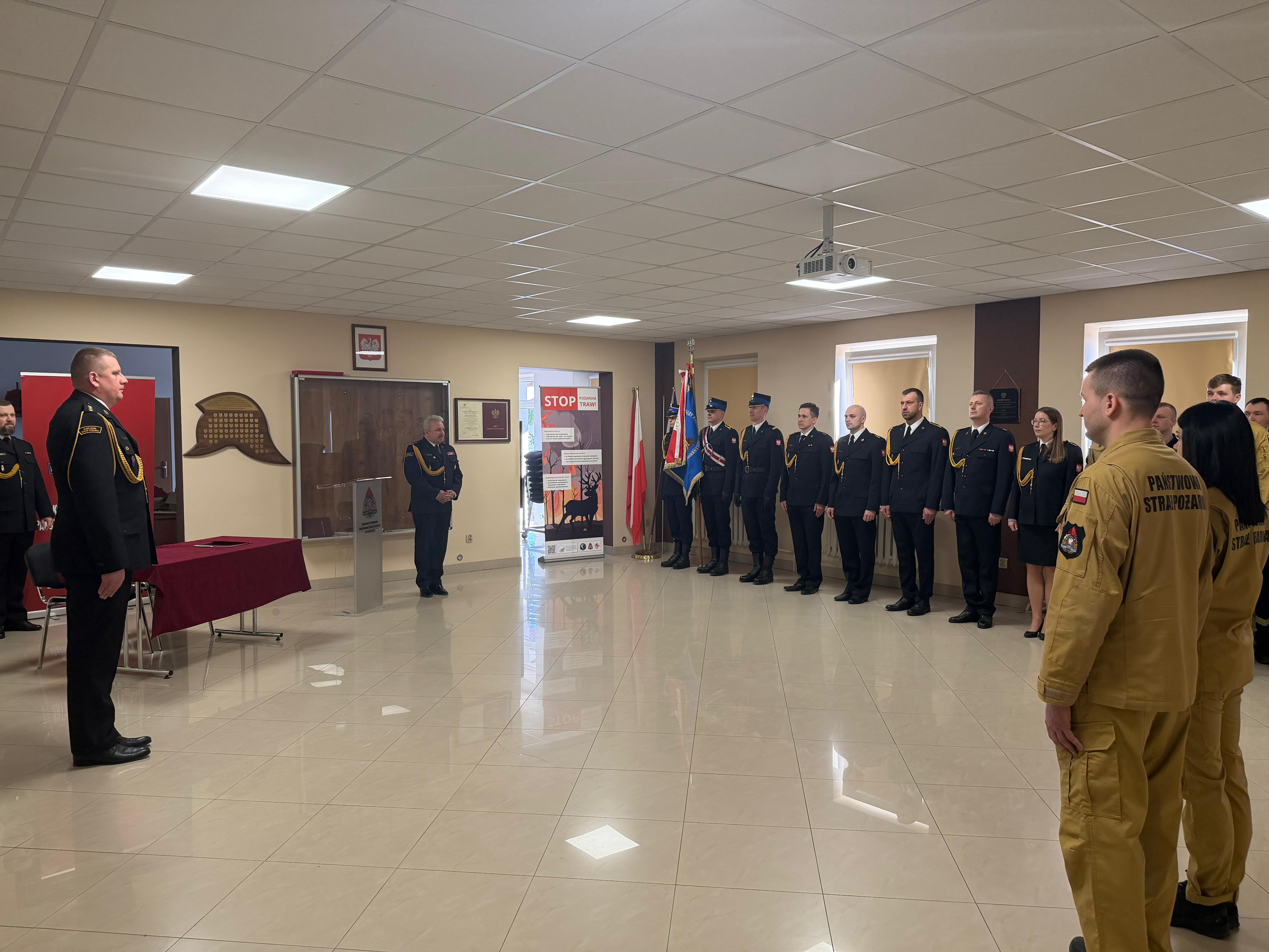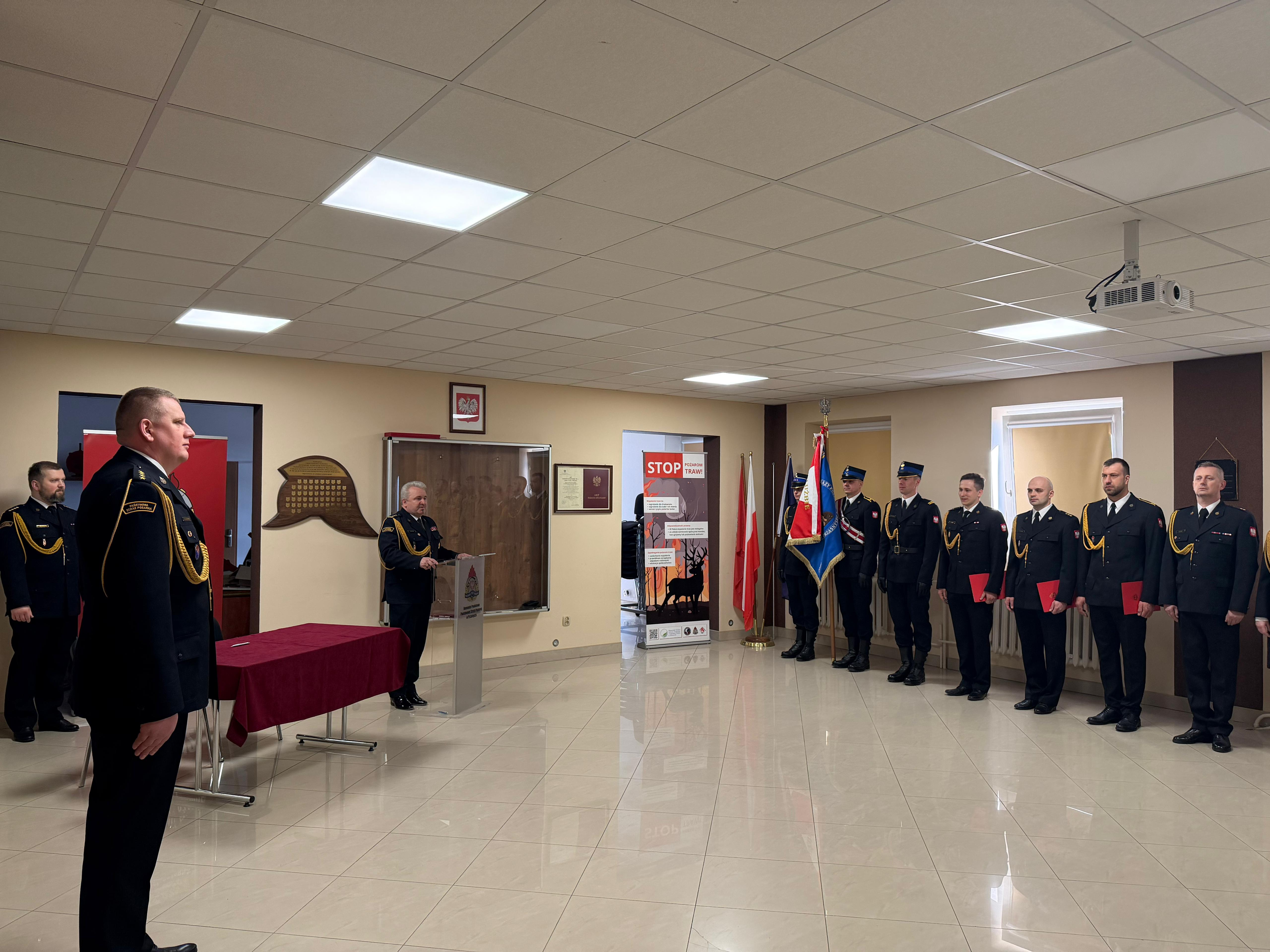Podczas uroczystości wręczono również akty mianowania na wyższe stanowiska służbowe. Z dniem 1 marca 2026 r. na stanowisko Dowódcy Zastępu mianowany został mł. asp. Rafał Krawczyk, na stanowisko Zastępcy Dowódcy Zmiany – mł. kpt. Kamil Niski, natomiast na stanowisko Dyżurnego Operacyjnego – kpt. Marek Piotrak.