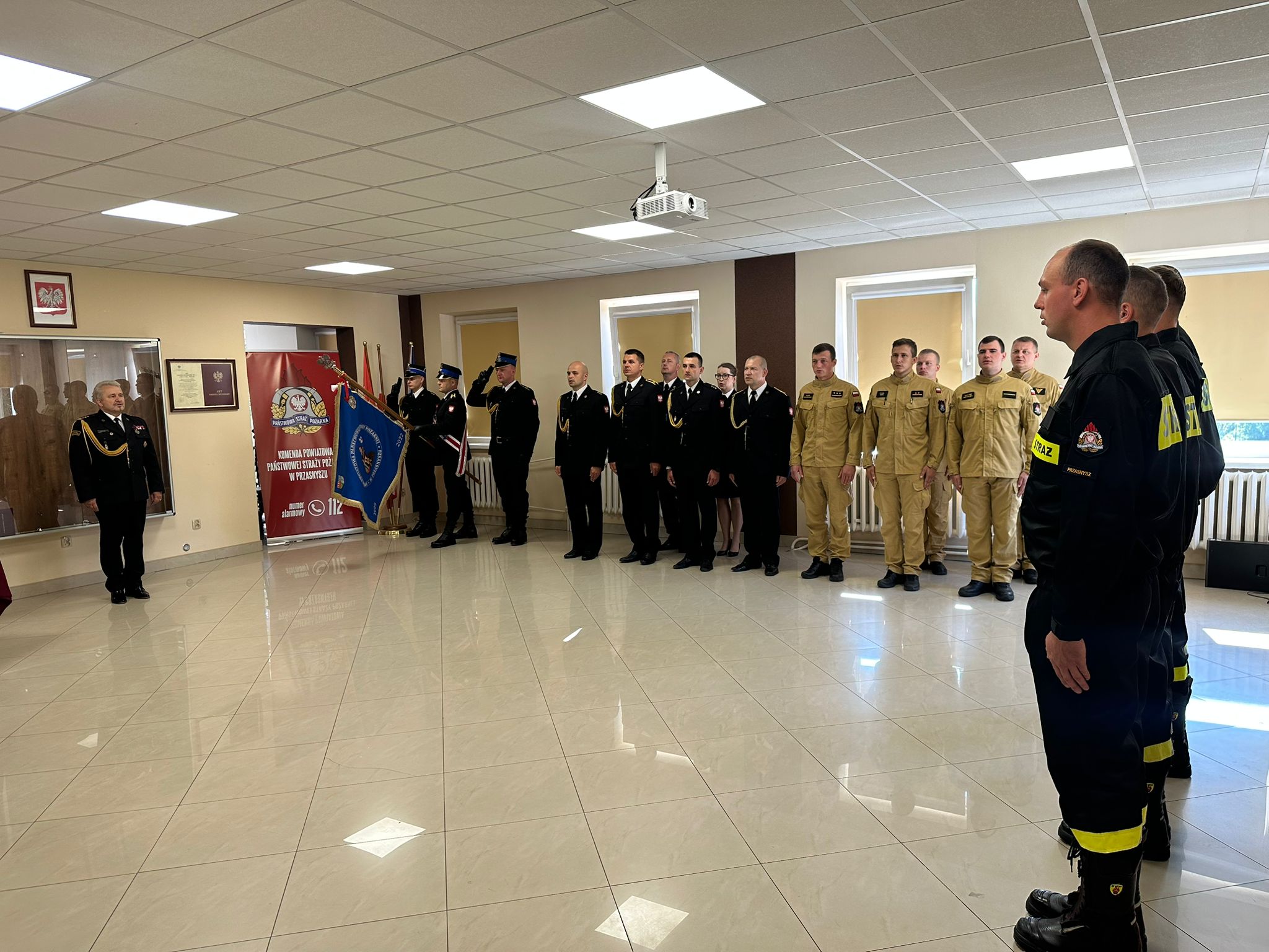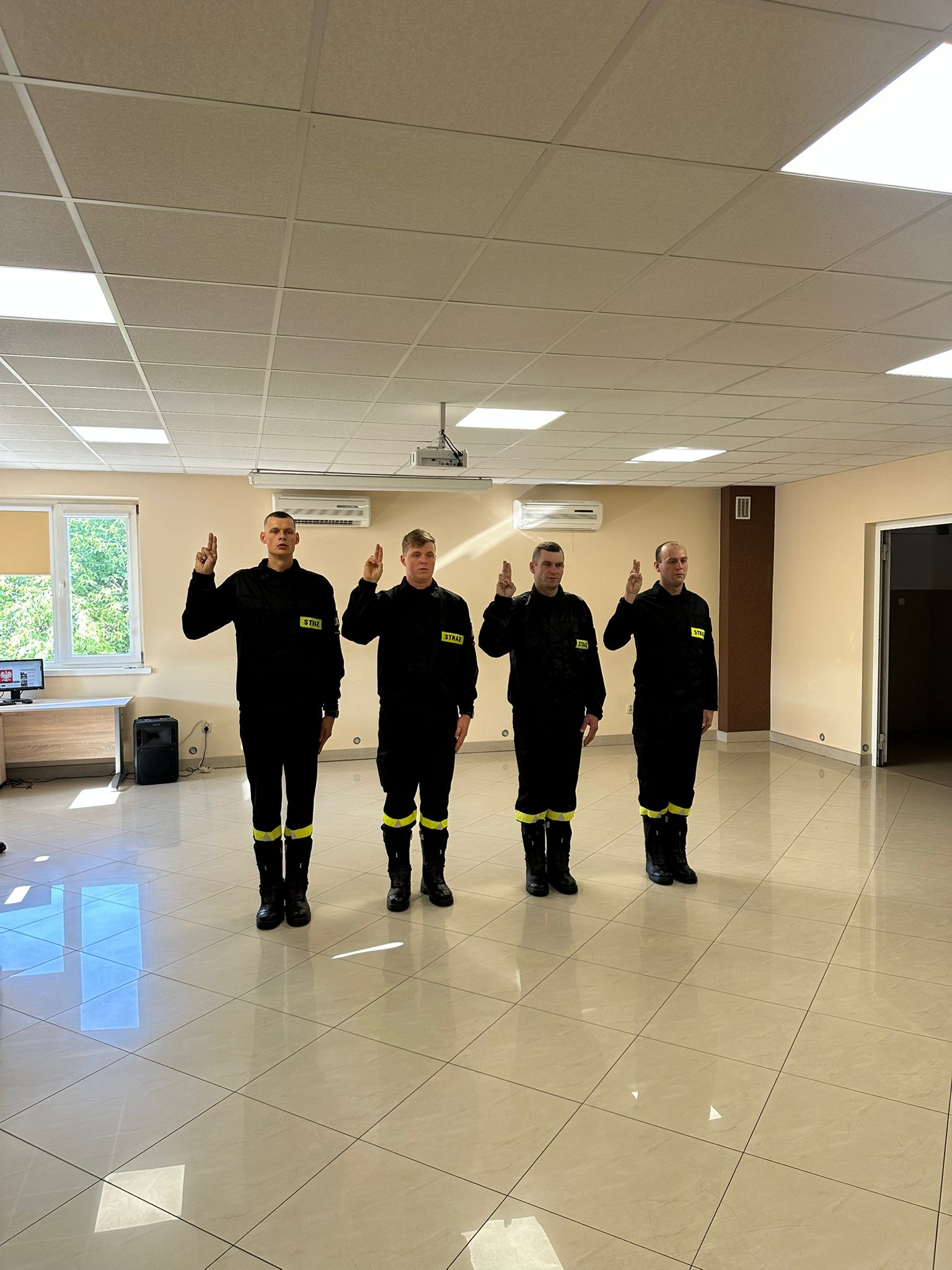 W dniu 5 września 2025 r. w Komendzie Powiatowej Państwowej Straży Pożarnej w Przasnyszu odbyła się uroczysta zbiórka, podczas której czterech nowo przyjętych strażaków złożyło ślubowanie przed Komendantem Powiatowym PSP w Przasnyszu oraz funkcjonariuszami tutejszej Komendy.