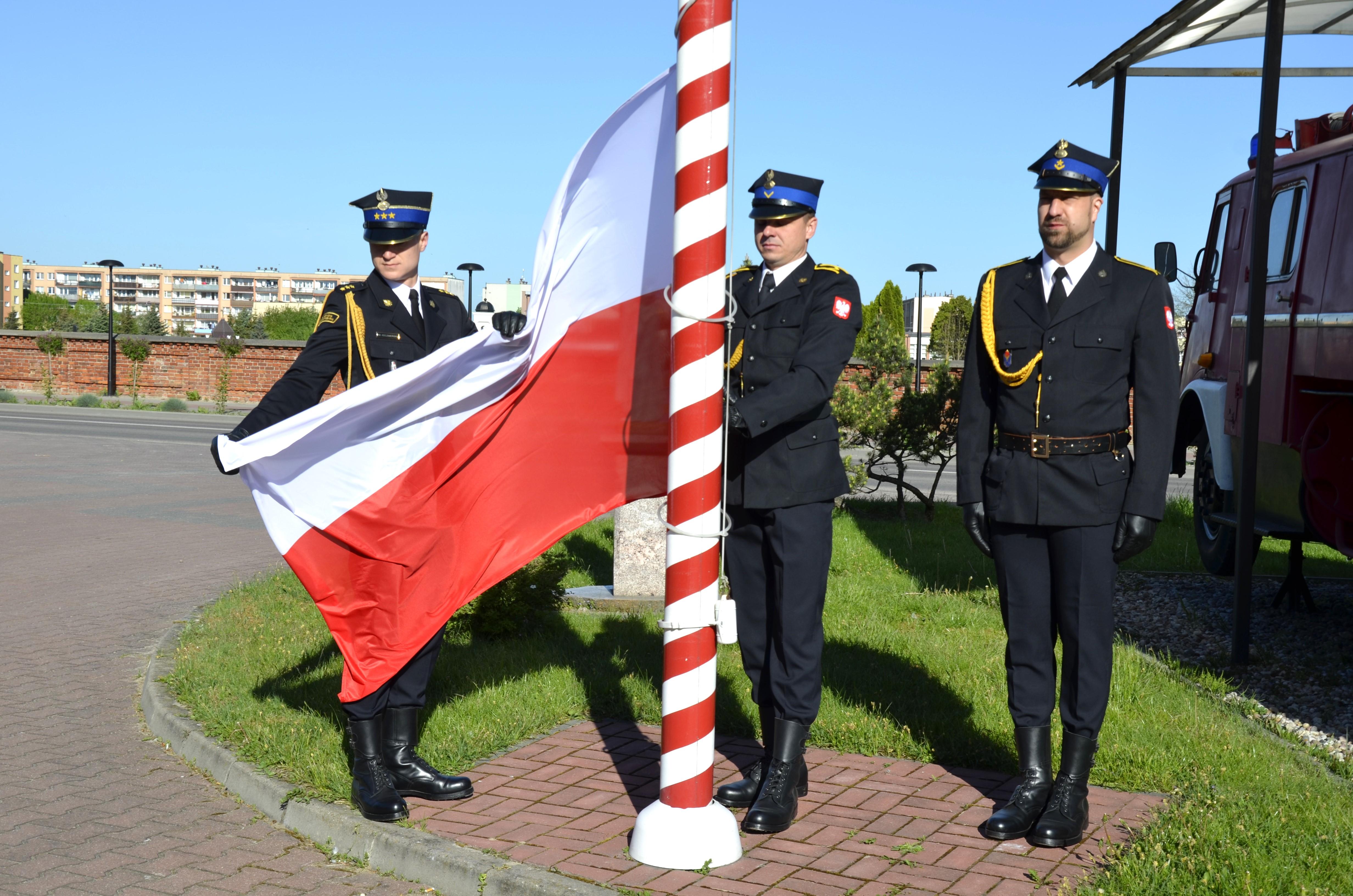 Podczas zmiany służbowej nastąpiło uroczyste podniesienie flagi państwowej. Następnie głos zabrał Z-ca Komendanta Powiatowego, który przybliżył historię polskich barw narodowych i podkreślił wagę propagowania wiedzy o polskiej tożsamości i symbolach narodowych.