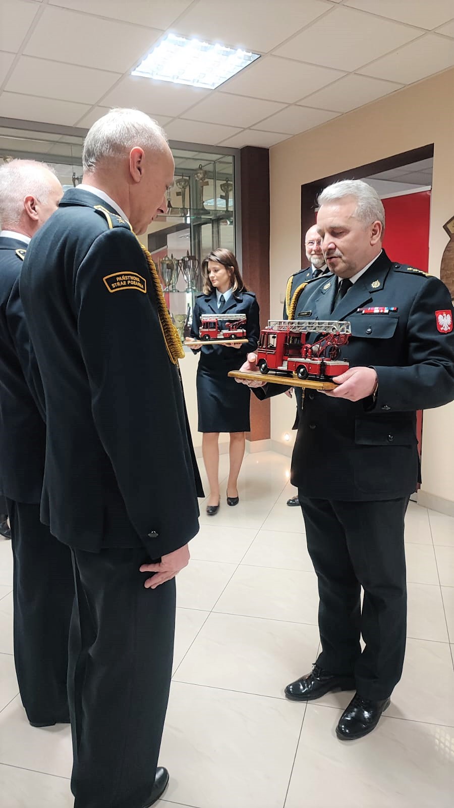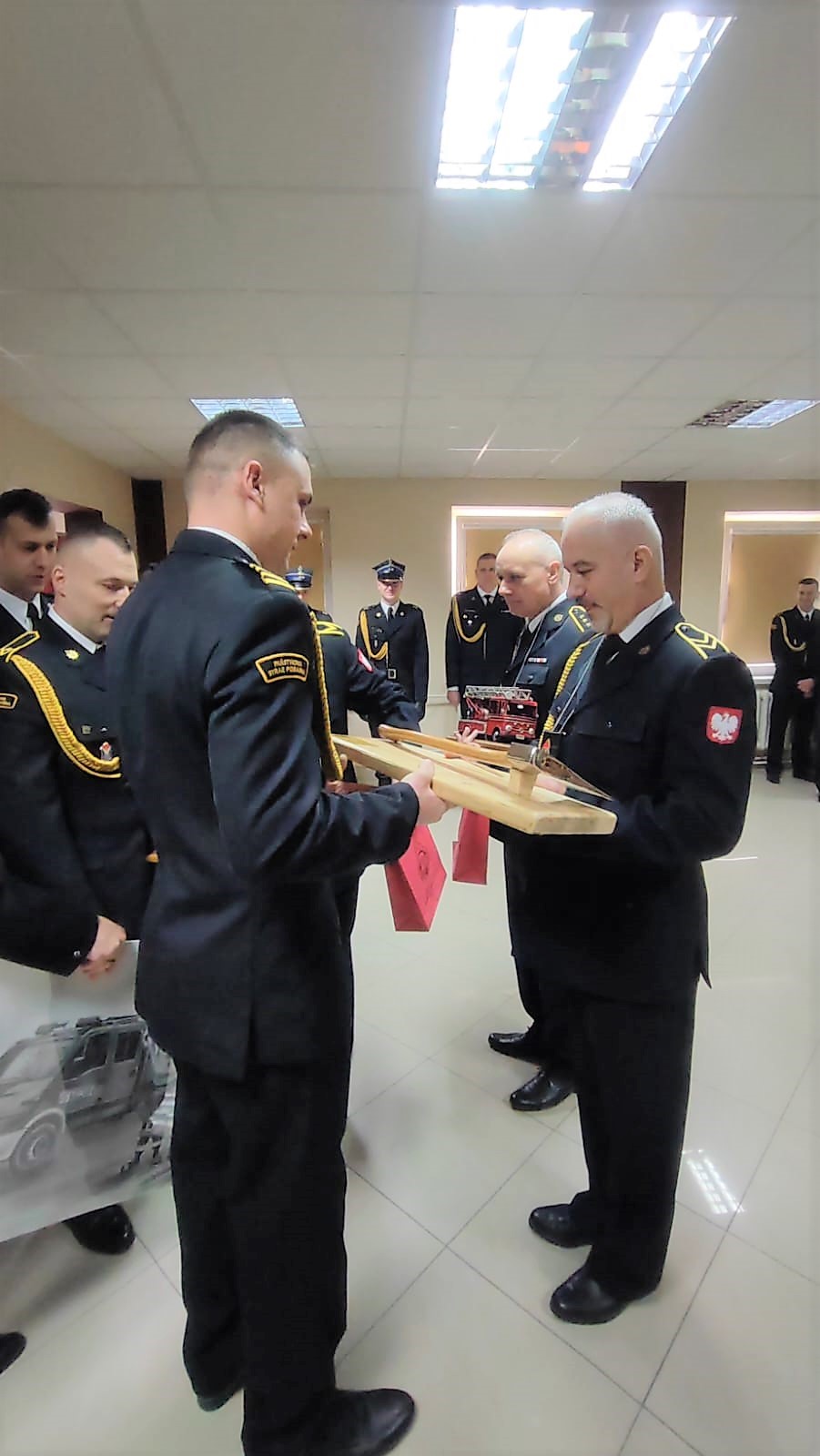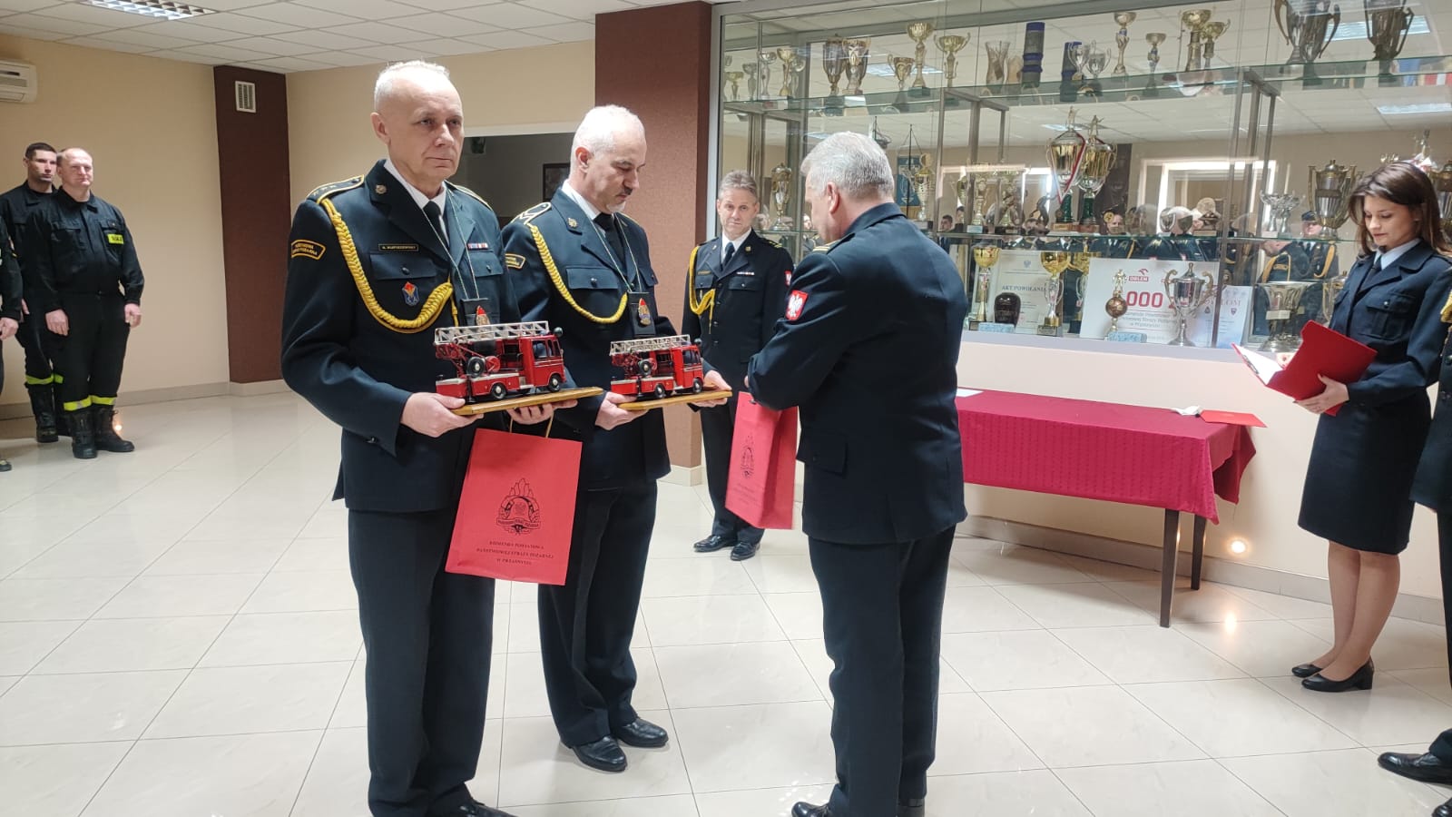 Nie obyło się też bez chwil wzruszenia i uśmiechu, podczas przemówień podsumowujących i upamiętniających dorobek służby obu wspaniałych strażaków. Na zakończenie uroczystości odchodzącym na zaopatrzenie emerytalne funkcjonariuszom wręczono symboliczne upominki.