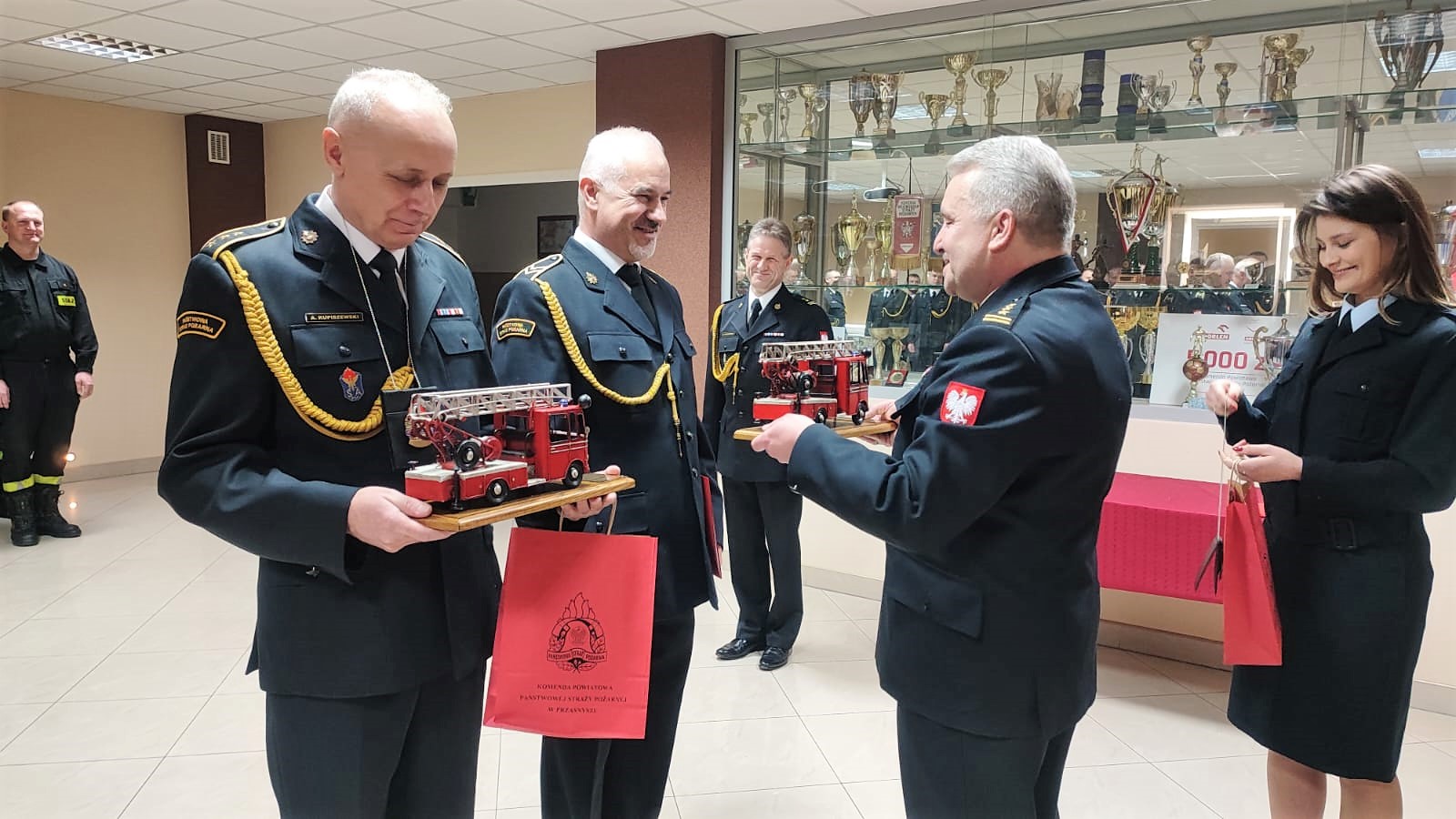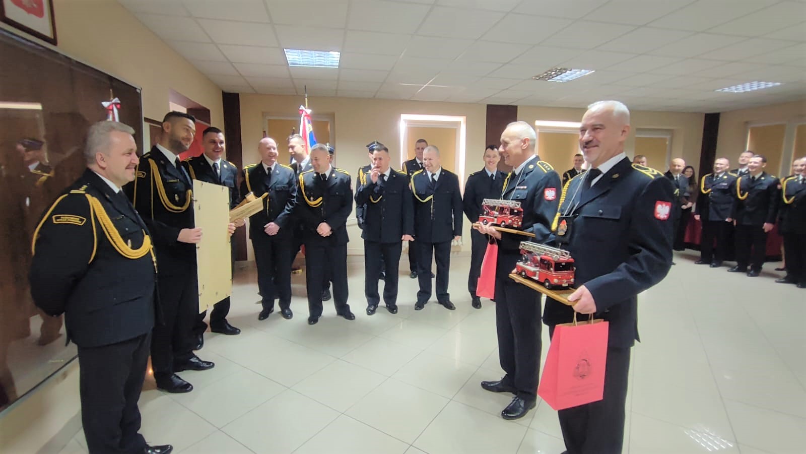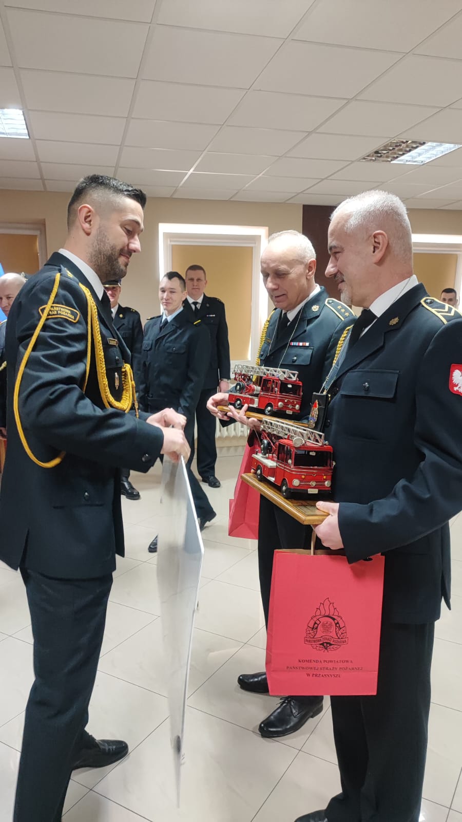 Nie obyło się też bez chwil wzruszenia i uśmiechu, podczas przemówień podsumowujących i upamiętniających dorobek służby obu wspaniałych strażaków. Na zakończenie uroczystości odchodzącym na zaopatrzenie emerytalne funkcjonariuszom wręczono symboliczne upominki.