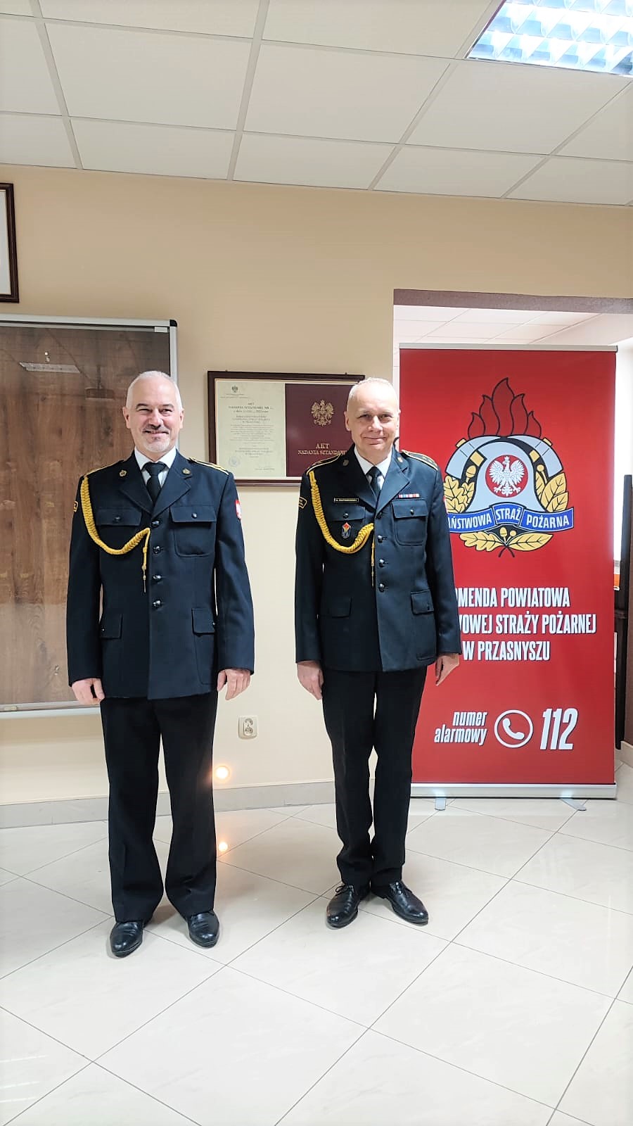 W dniu 3 lutego 2023 r. odbyła się uroczysta zbiórka, podczas której Komendant Powiatowy Państwowej Straży Pożarnej w Przasnyszu st. bryg. Waldemar Białczak, podziękował za wieloletnią służbę asp.sztab. Andrzejowi Kupiszewskiemu oraz st.ogn. Krzysztofowi Morawskiemu, którzy z dniem 31 stycznia 2023 r. przeszli na zasłużone zaopatrzenie emerytalne.