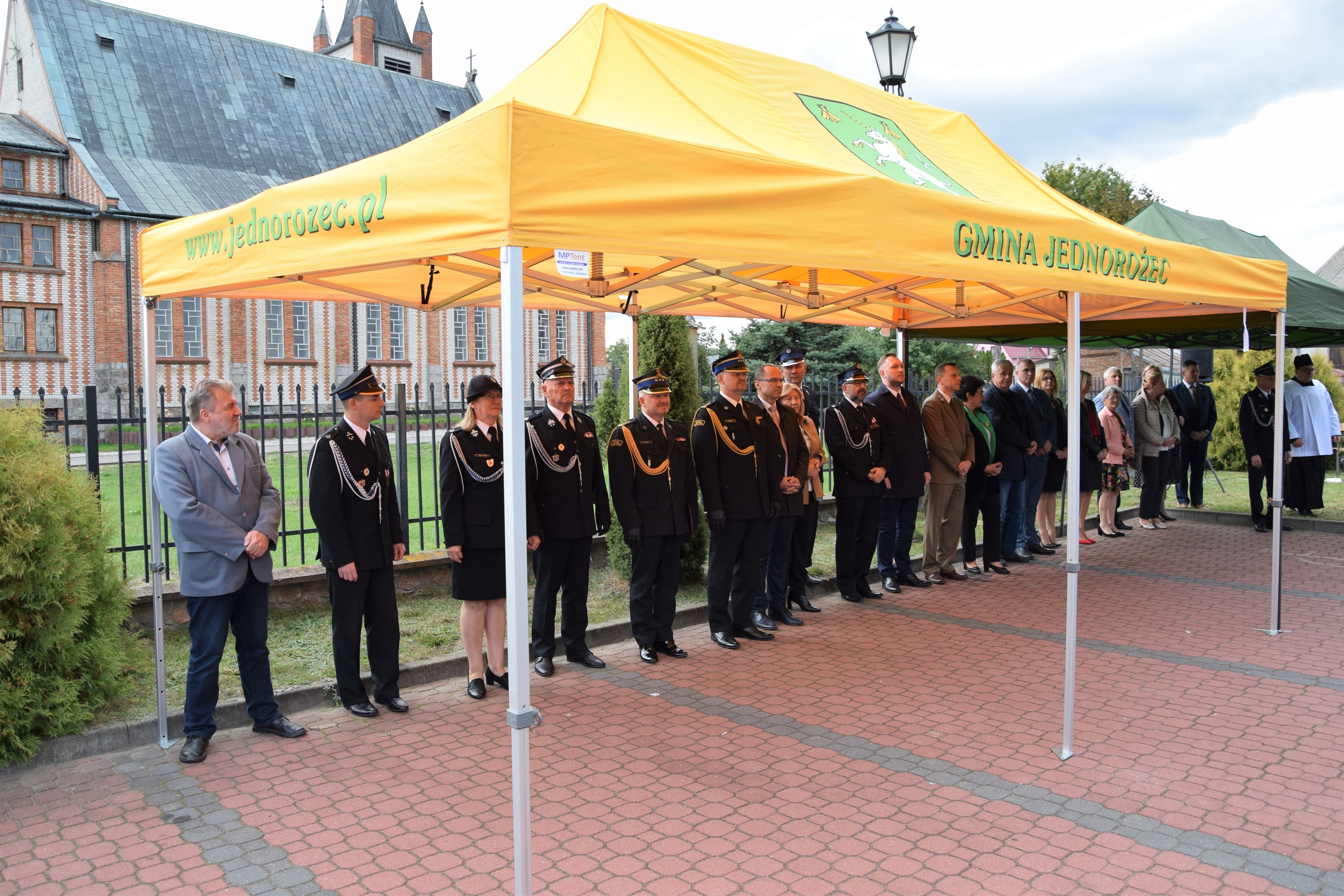 W uroczystości wzięli udział zaproszeni goście w tym m.in. Z-ca Mazowieckiego Komendanta Wojewódzkiego st.bryg. Tomasz Cybul, Radni do Sejmiku Województwa Mazowieckiego Pan Konrad Wojnarowski i Pani Wiesława Krawczyk, Starosta Powiatu Przasnyskiego Krzysztof Bieńkowski, Radny Powiatu Przasnyskiego Pan Zenon Szczepankowski, Wójt Gminy Jednorożec Krzysztof Iwulski, Sekretarz Gminy Przasnysz Bożena Rudzińska, Komendant Powiatowy Państwowej Straży Pożarnej w Przasnyszu st. bryg. Waldemar Białczak, Członek Zarządu Oddziału Wojewódzkiego ZOSP RP woj. mazowieckiego dh Bogdan Rzepczyński, Proboszcz Parafii pw. Św. Floriana w Jednorożcu ks. Wiesław Chmielewski, a także przedstawiciele władz samorządowych, powiatowych, strażacy i licznie przybyli mieszkańcy miejscowości.