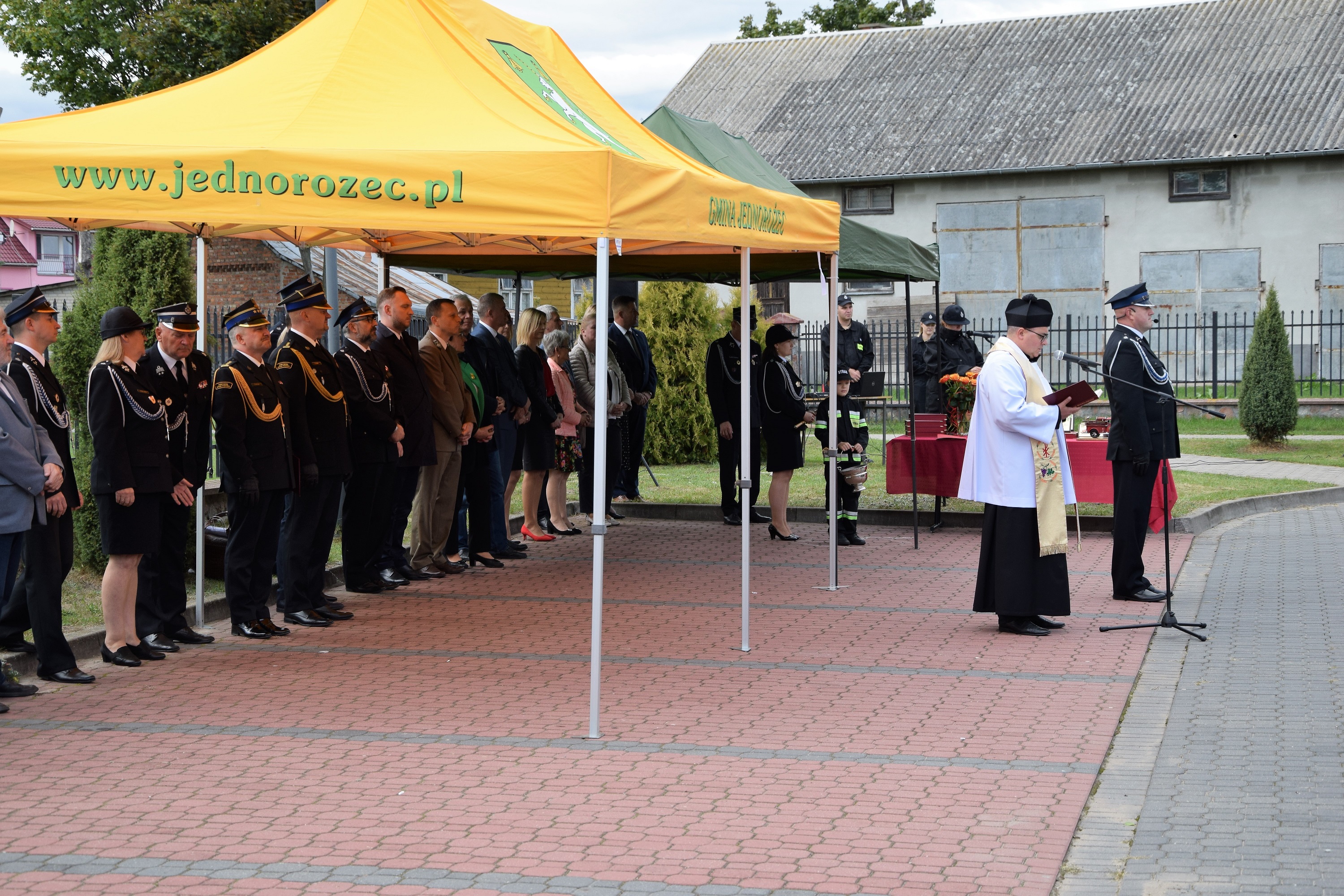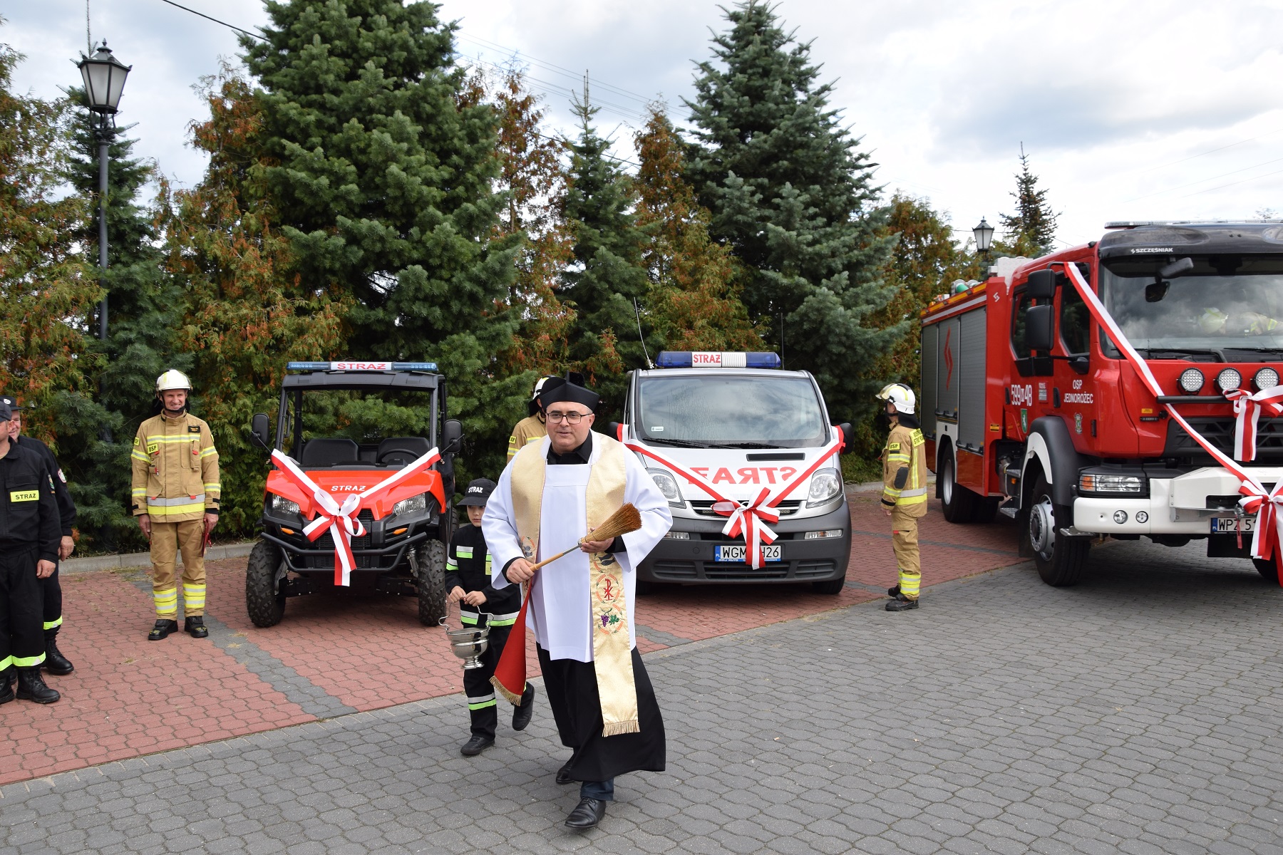 Pojazdy pożarnicze zostały poświęcone przez ks. Wiesława Chmielewskiego, a następnie dokonano odczytania aktów przekazania sprzętu pożarniczego oraz wręczono kluczyki Prezesom OSP w Mchowie i Jednorożcu.