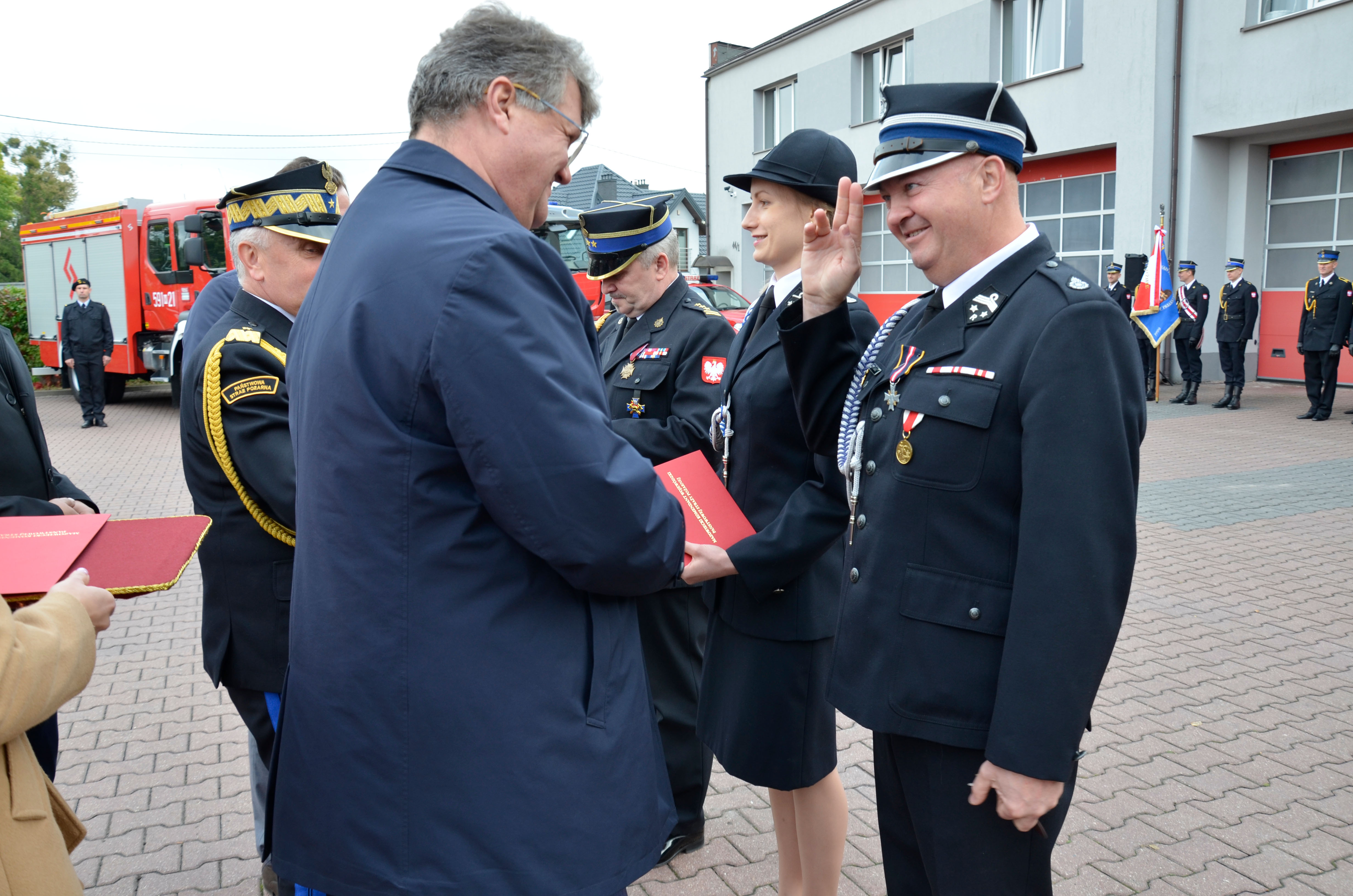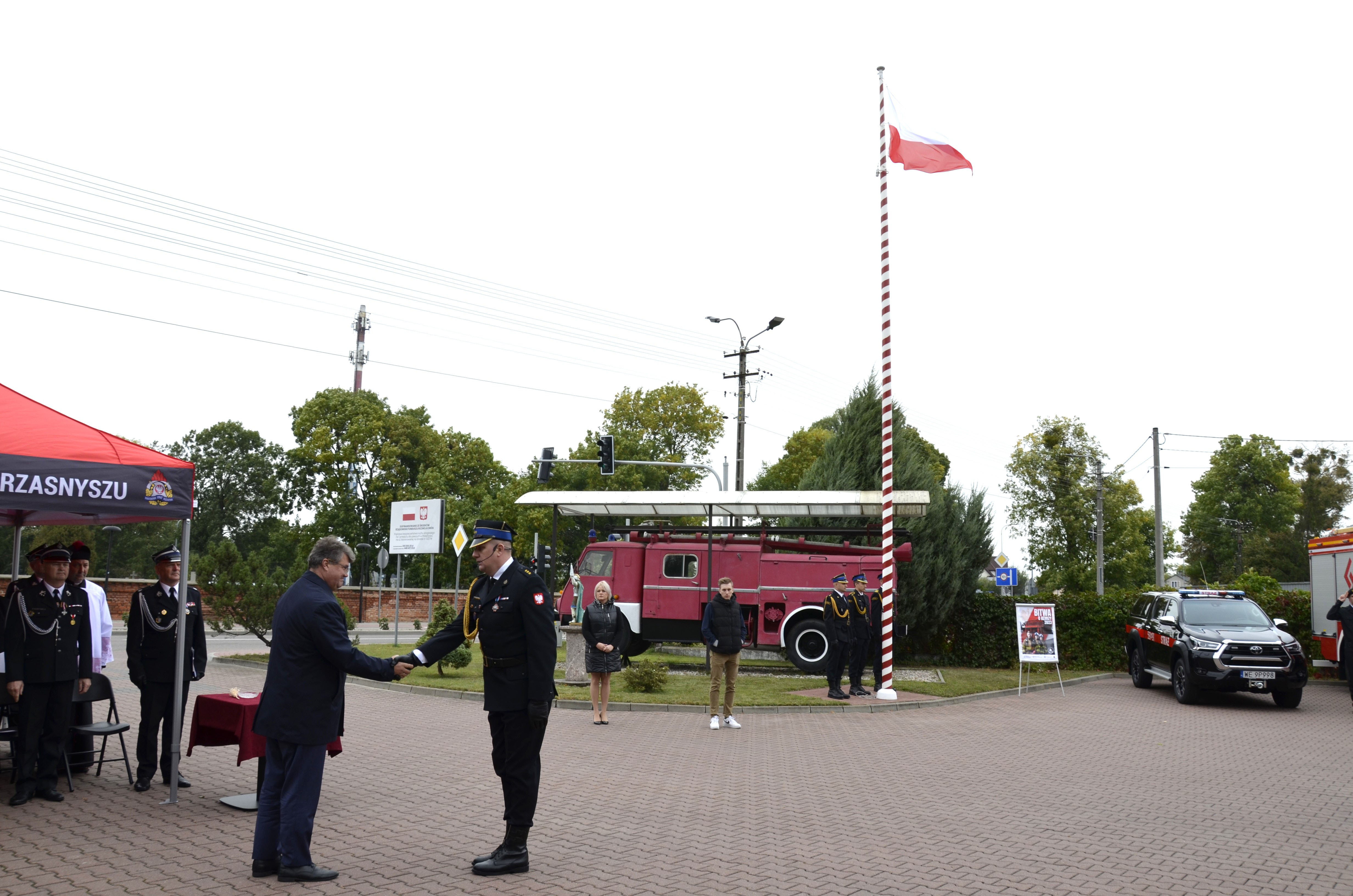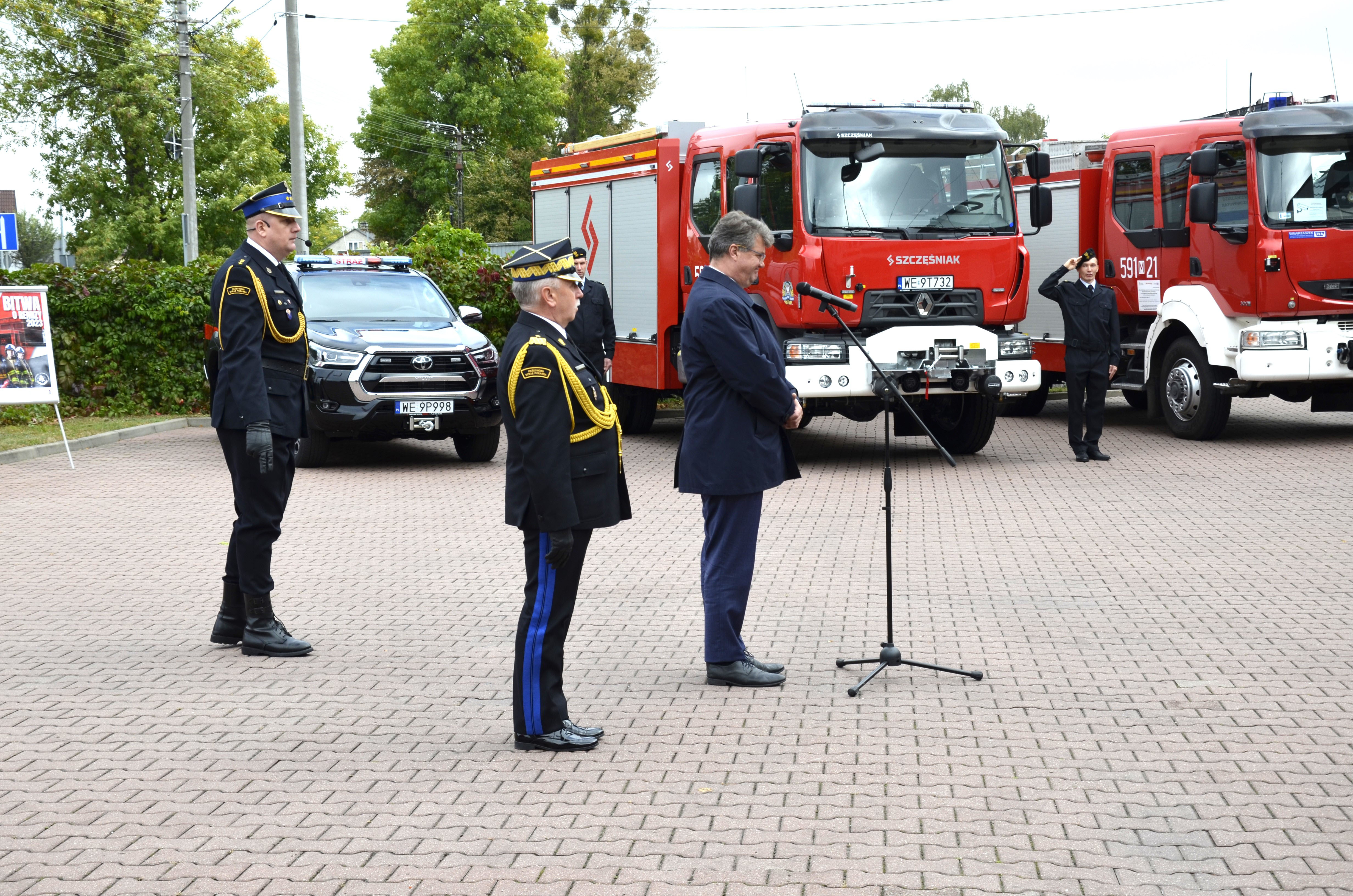 Uroczyste przekazanie samochodów pożarniczych w KP PSP w Przasnyszu
