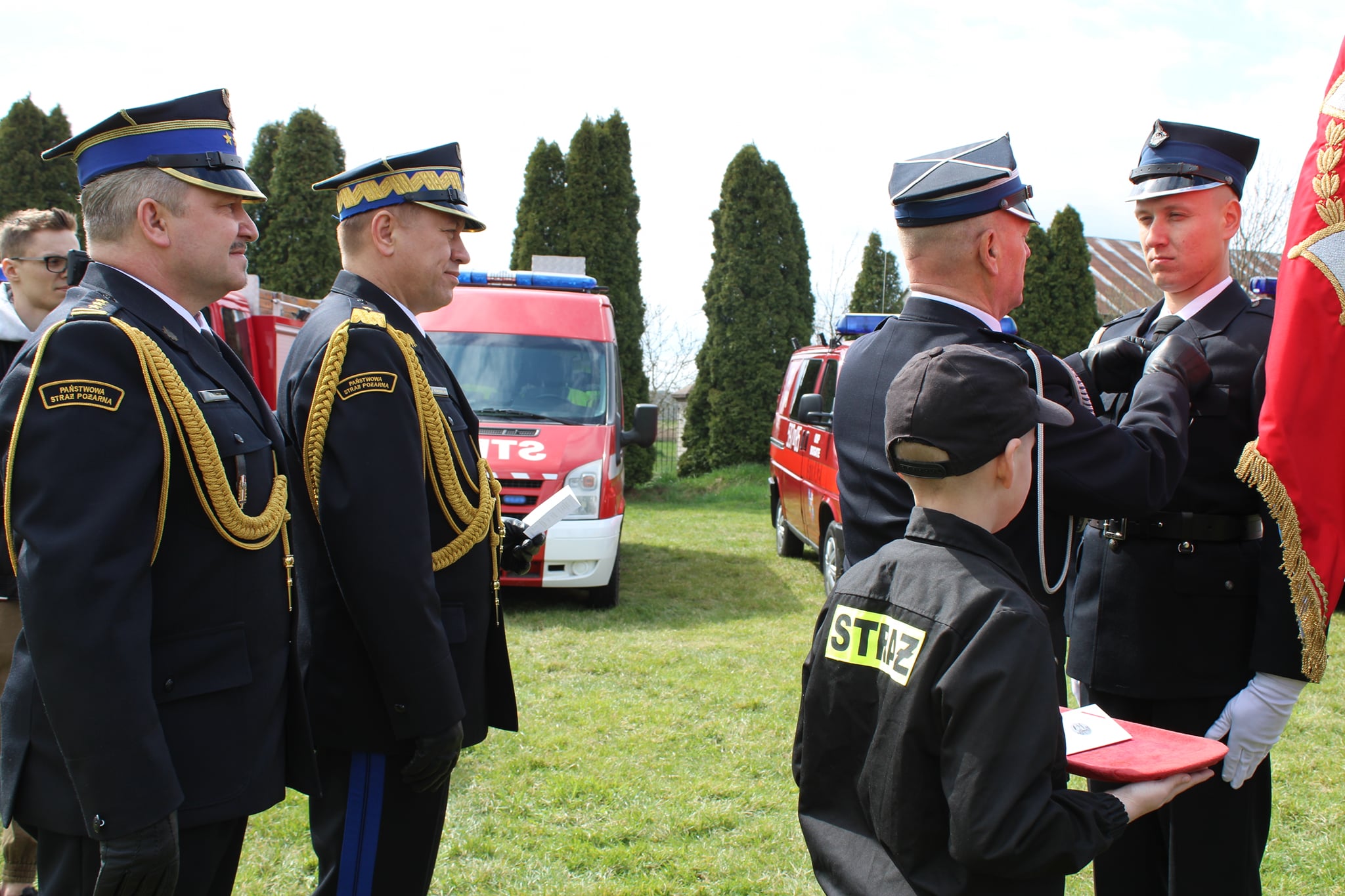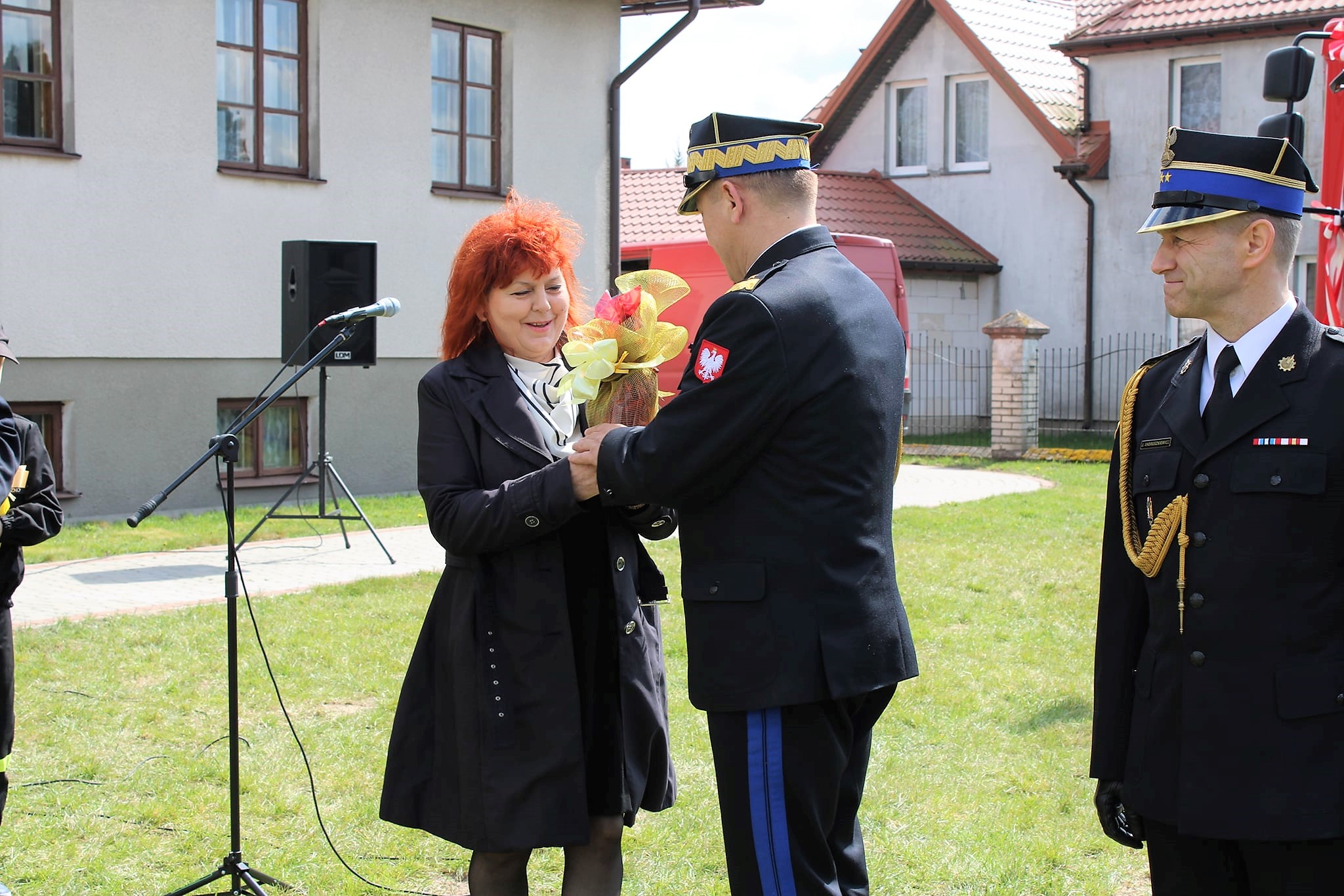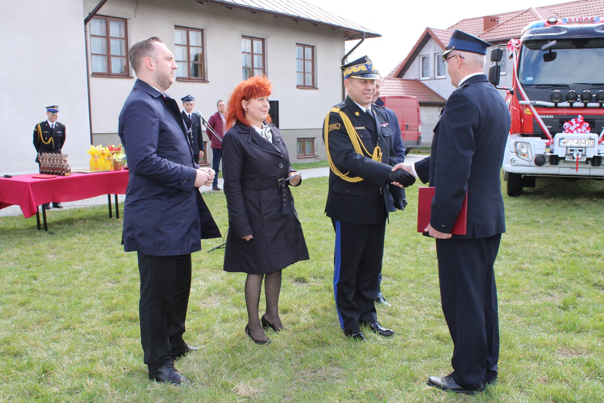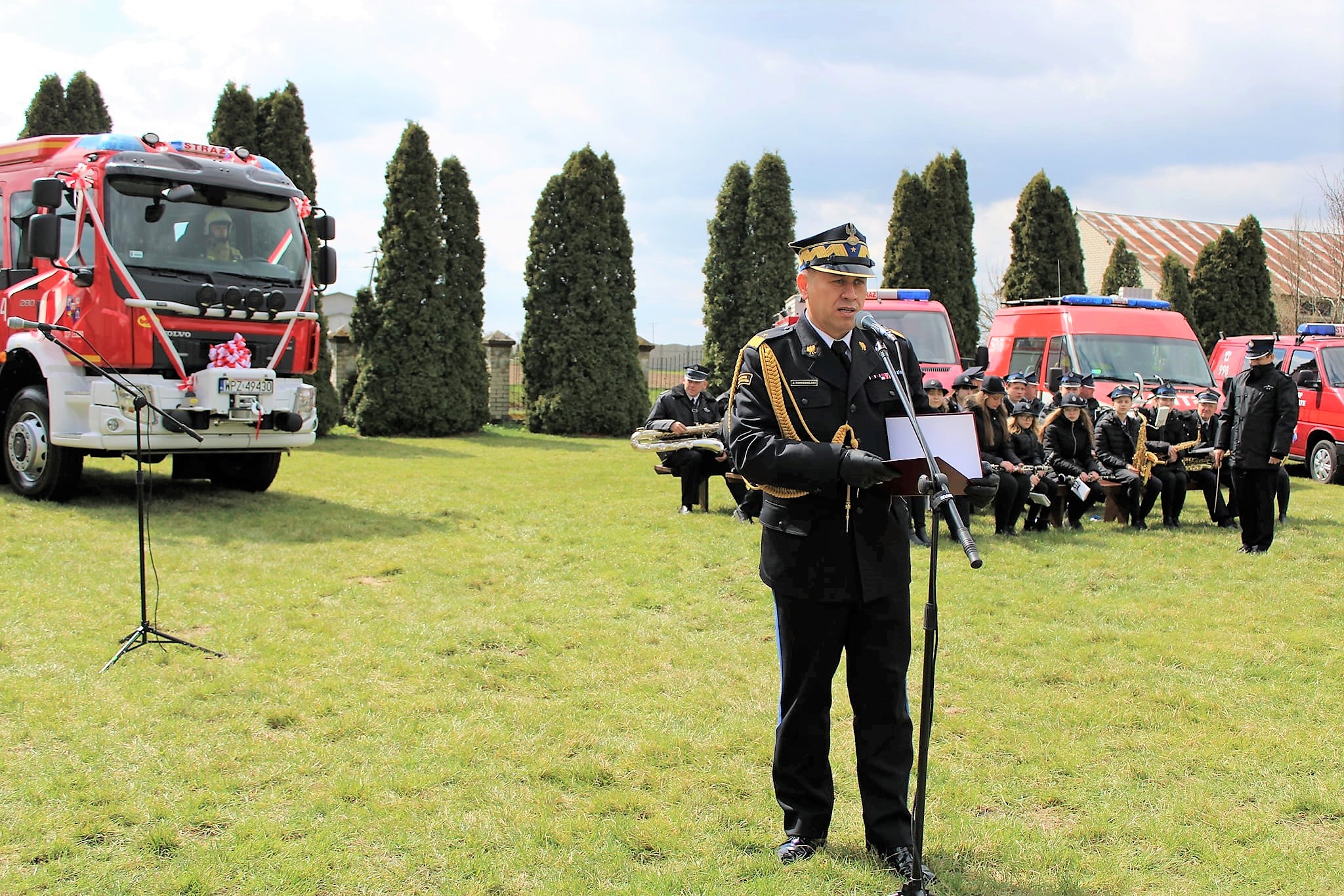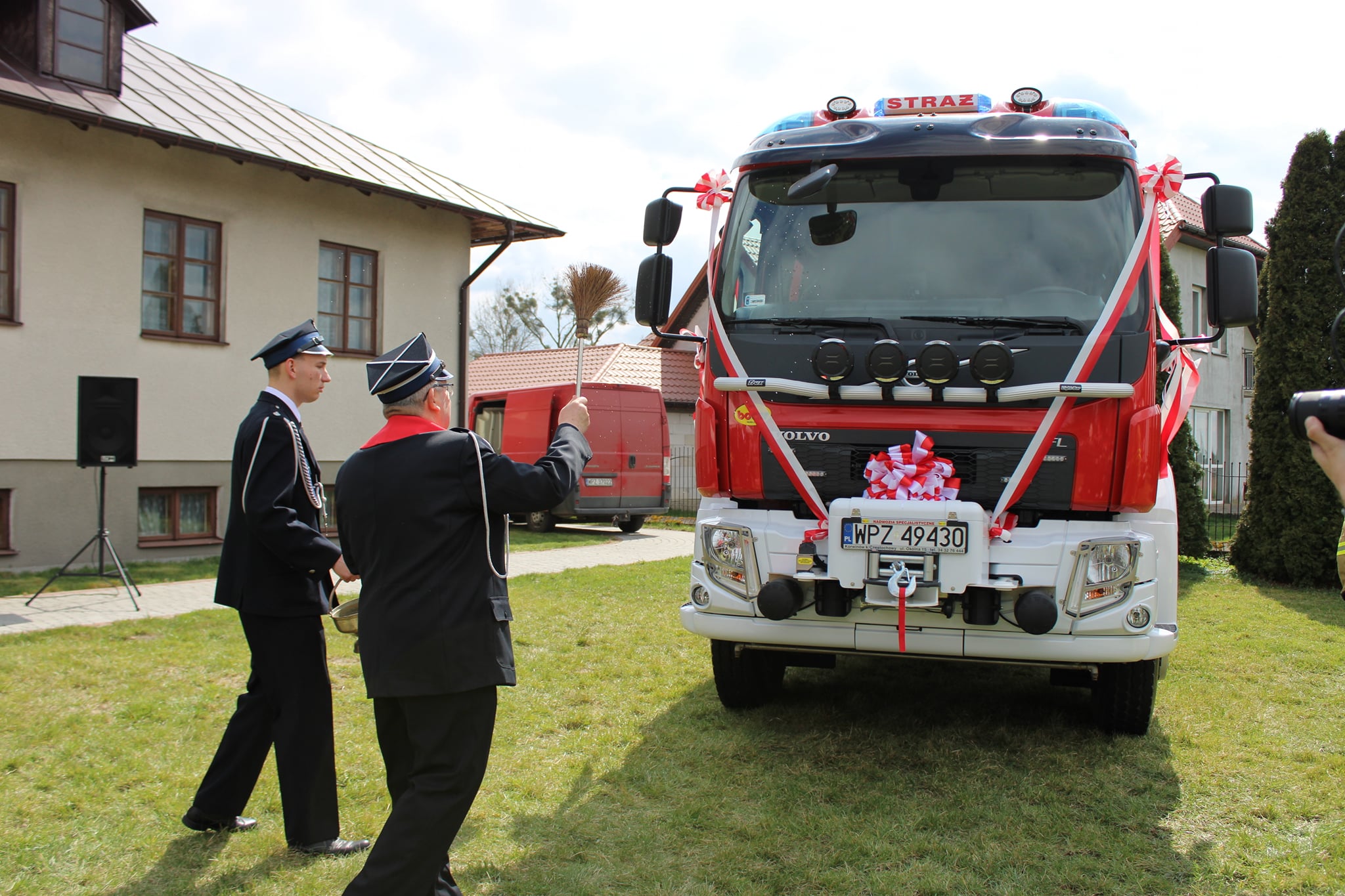Pojazd pożarniczy został poświęcony przez Powiatowego Kapelana strażaków PSP i OSP, dokonano także odczytania aktu przekazania średniego samochodu ratowniczo - gaśniczego oraz wręczono kluczyki Prezesowi OSP Dariuszowi Jankowskiemu.