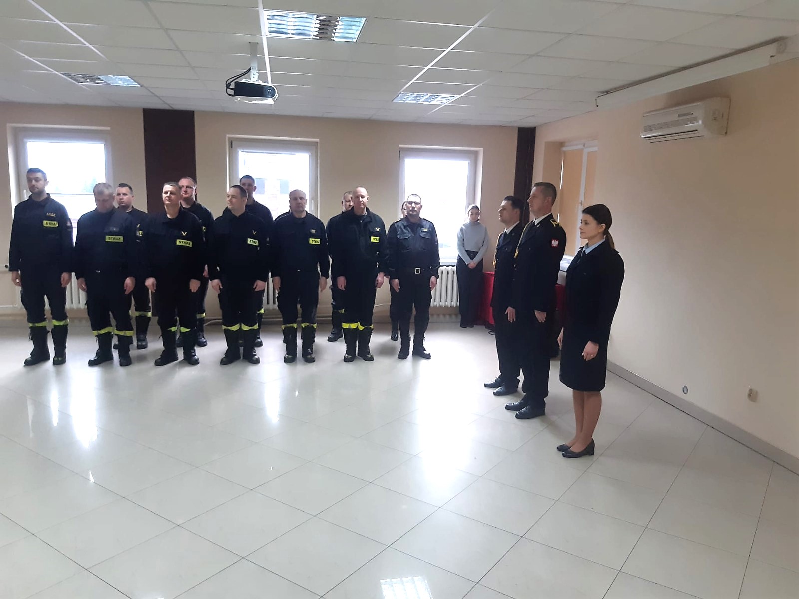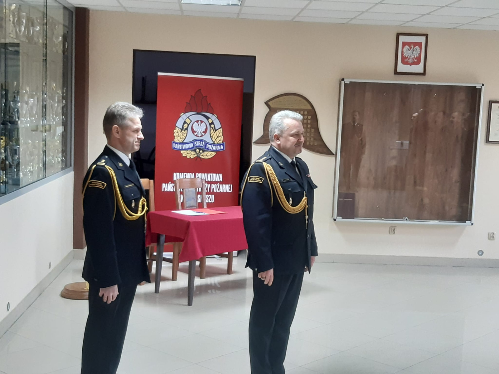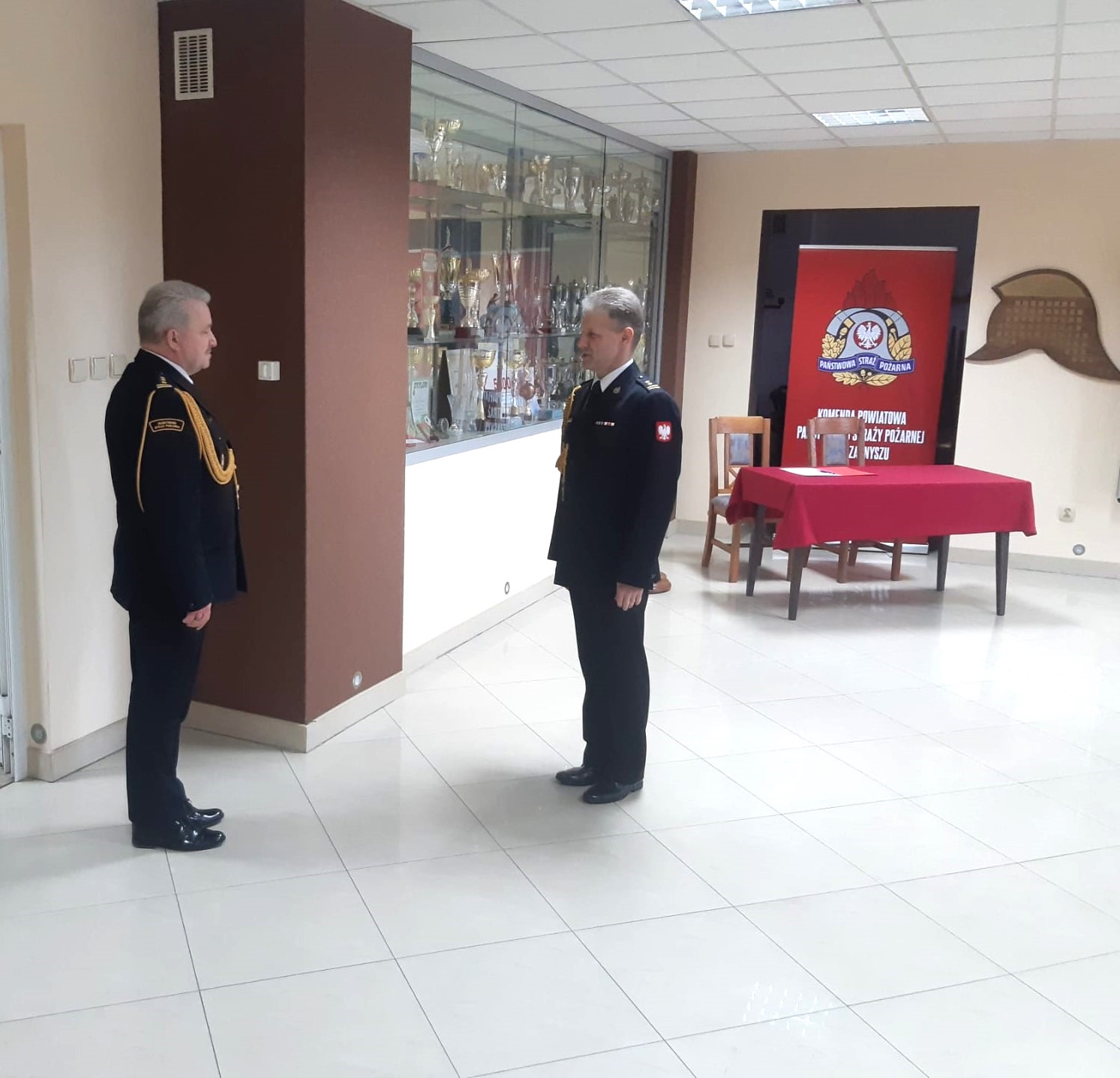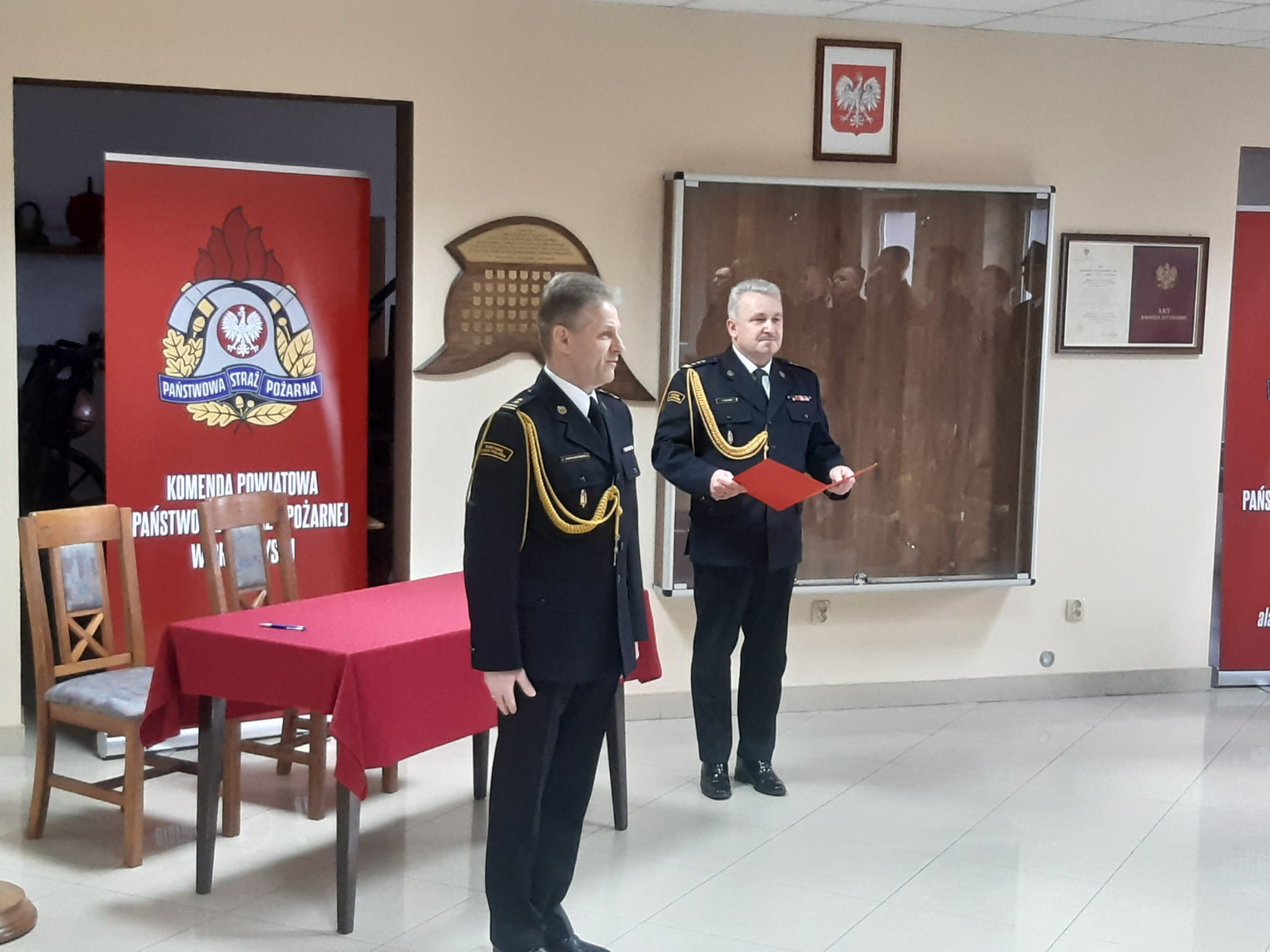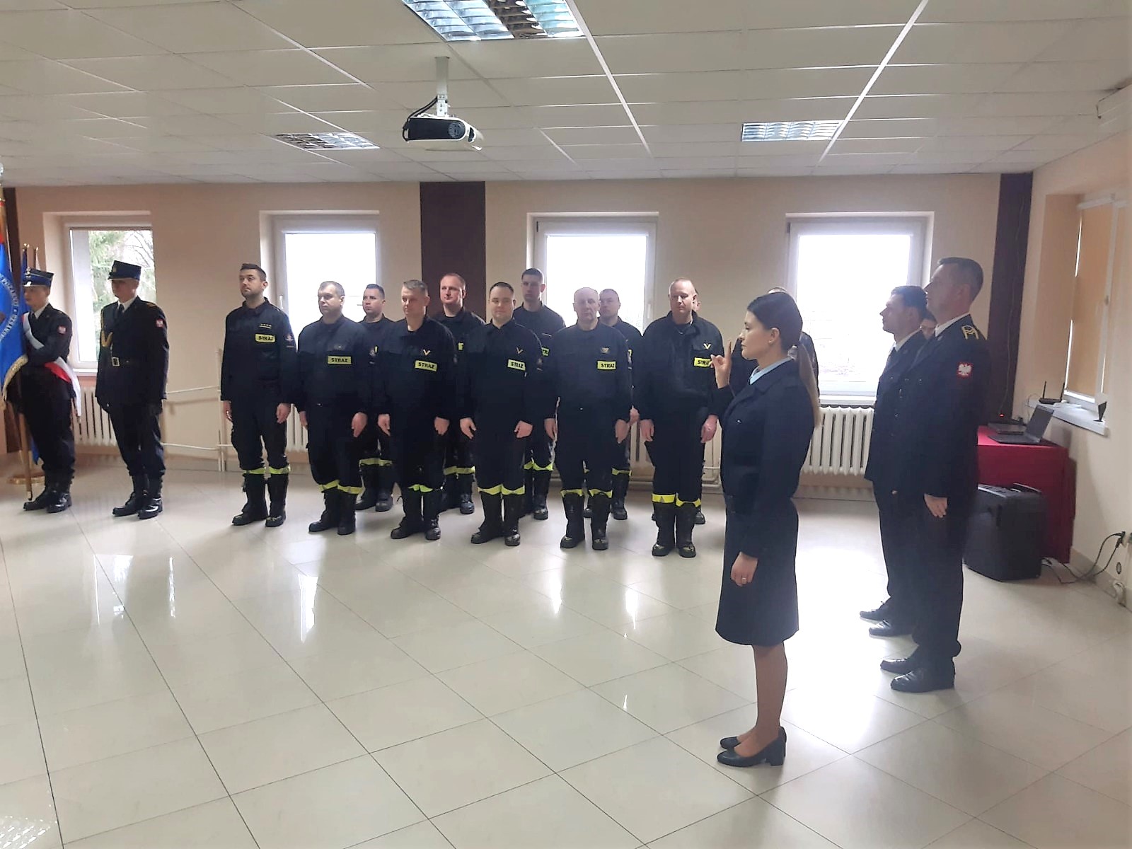 Słowem wstępu Komendant Powiatowy nawiązał do roty ślubowania, podkreślając znaczenie tej chwili w życiu zawodowym każdego strażaka. Zaznaczył także, że funkcjonariusz reprezentuje tą formację nie tylko w czasie służby, ale także poza nią. Podkreślił, że służba w Straży Pożarnej nie jest łatwa i wymaga oddania oraz wielkiego serca do pracy.
