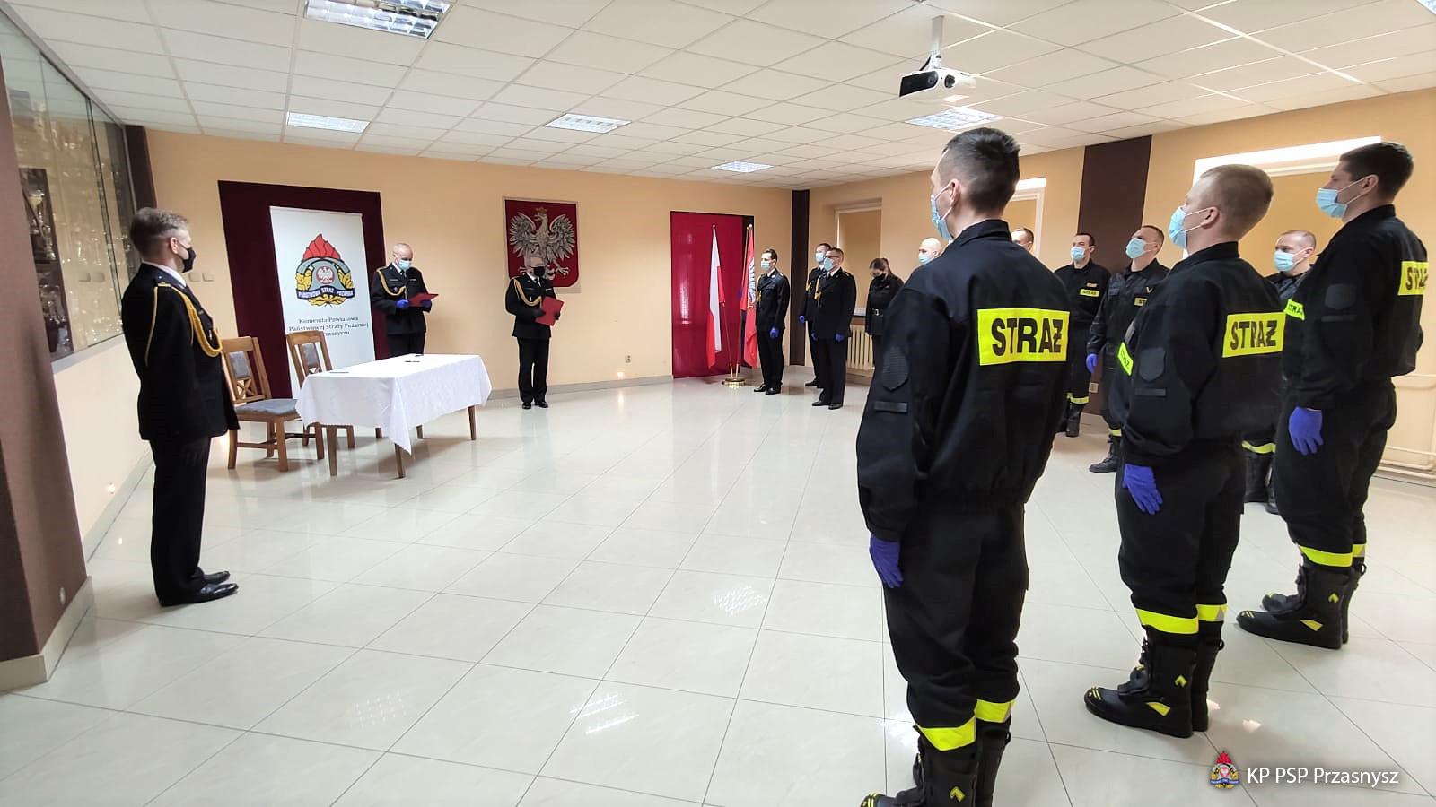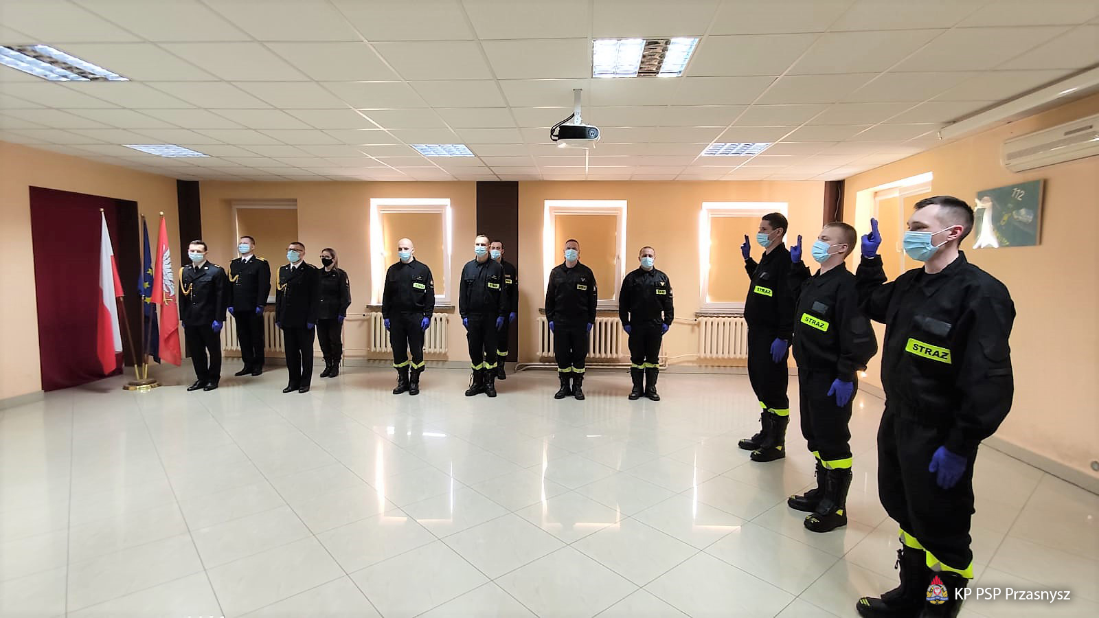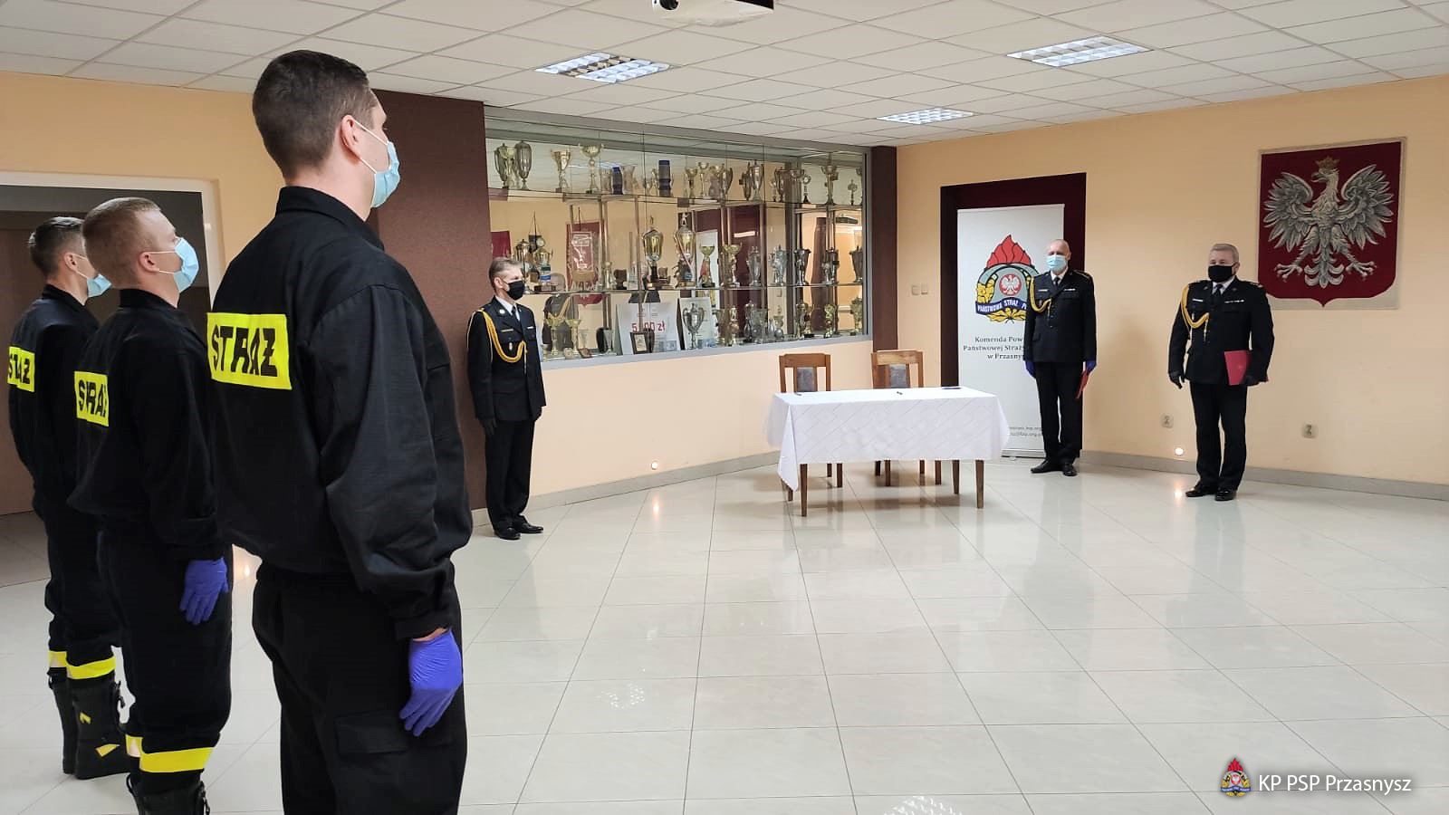 W dniu 25 lutego 2021 roku w siedzibie Komendy Powiatowej Państwowej Straży Pożarnej w Przasnyszu odbyło się uroczyste ślubowanie trzech nowych funkcjonariuszy przyjętych do służby w Państwowej Straży Pożarnej w Przasnyszu.