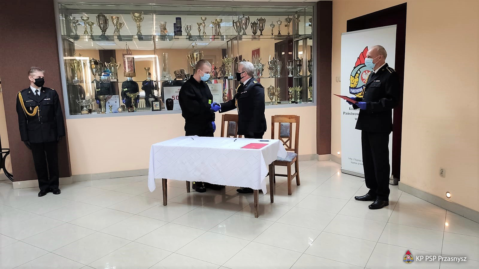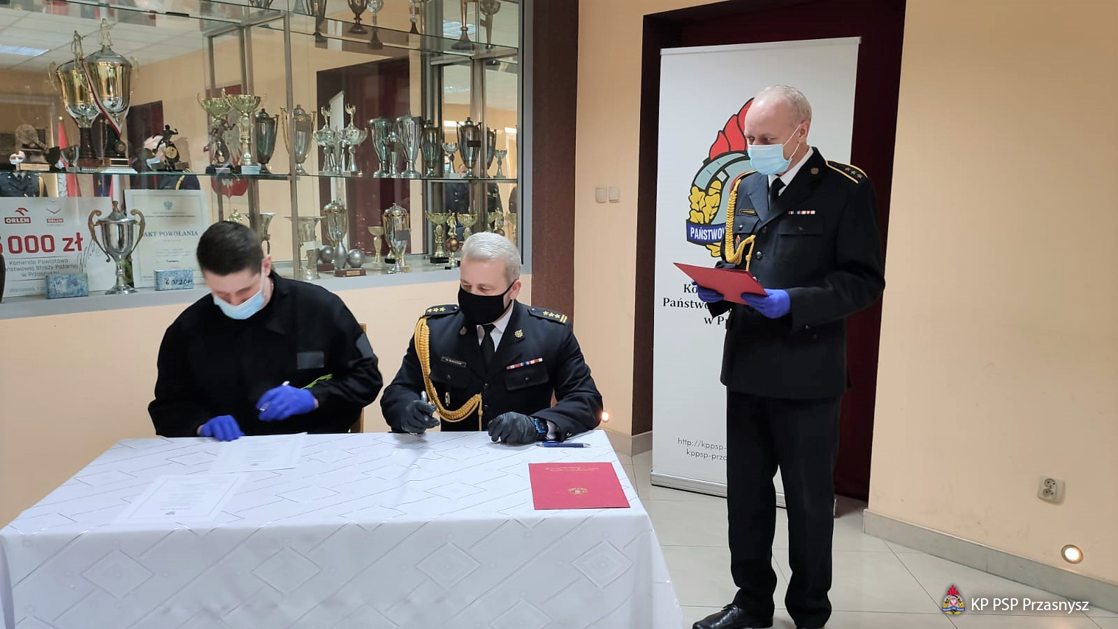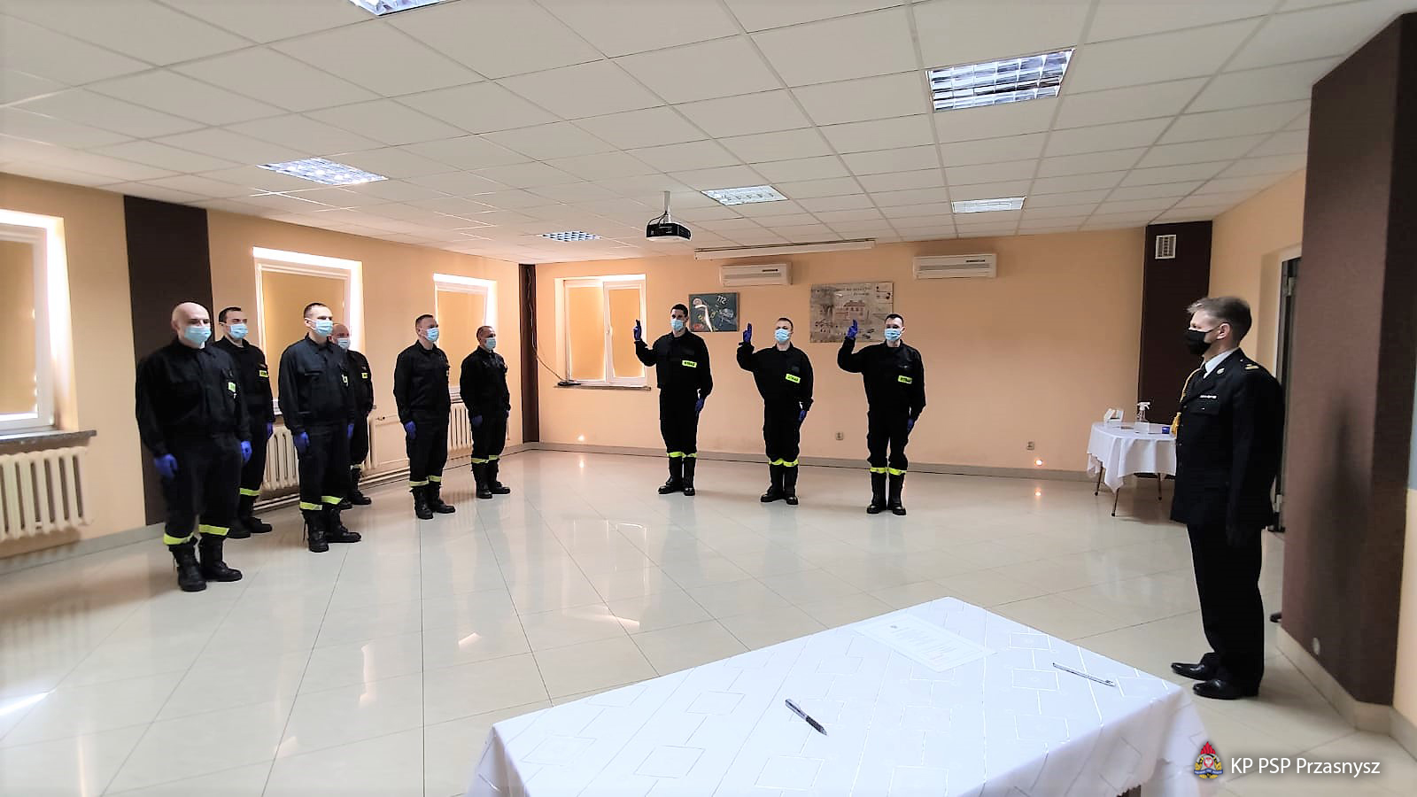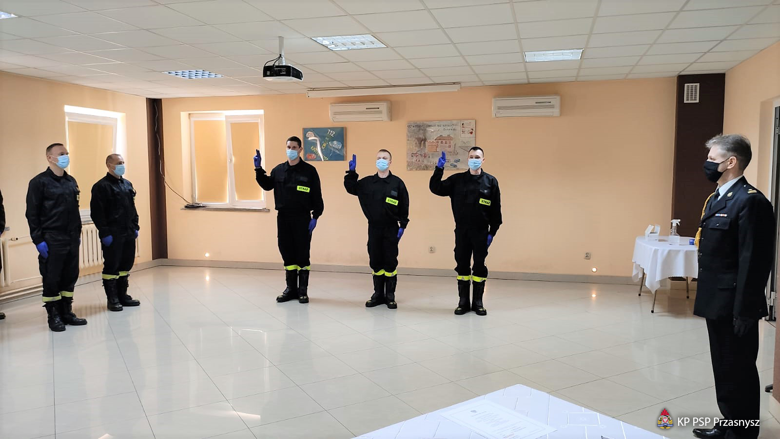 W dniu 25 lutego 2021 roku w siedzibie Komendy Powiatowej Państwowej Straży Pożarnej w Przasnyszu odbyło się uroczyste ślubowanie trzech nowych funkcjonariuszy przyjętych do służby w Państwowej Straży Pożarnej w Przasnyszu.