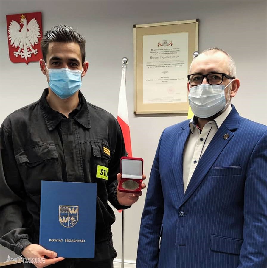 30 marca 2021 roku Starosta Przasnyski Krzysztof Bieńkowski po raz pierwszy przyznał medal zasług dla Ziemi Przasnyskiej „Gloria Prasnensis Terrae”. W pełni zasłużone wyróżnienie trafiło do rąk strażaka z Państwowej Straży Pożarnej w Przasnyszu Rafała Smolińskiego, który wykazał się szczególną odwagą i bohaterstwem, ratując z pożaru 90-letnią kobietę podczas jednej z akcji ratunkowych pod koniec lutego bieżącego roku.