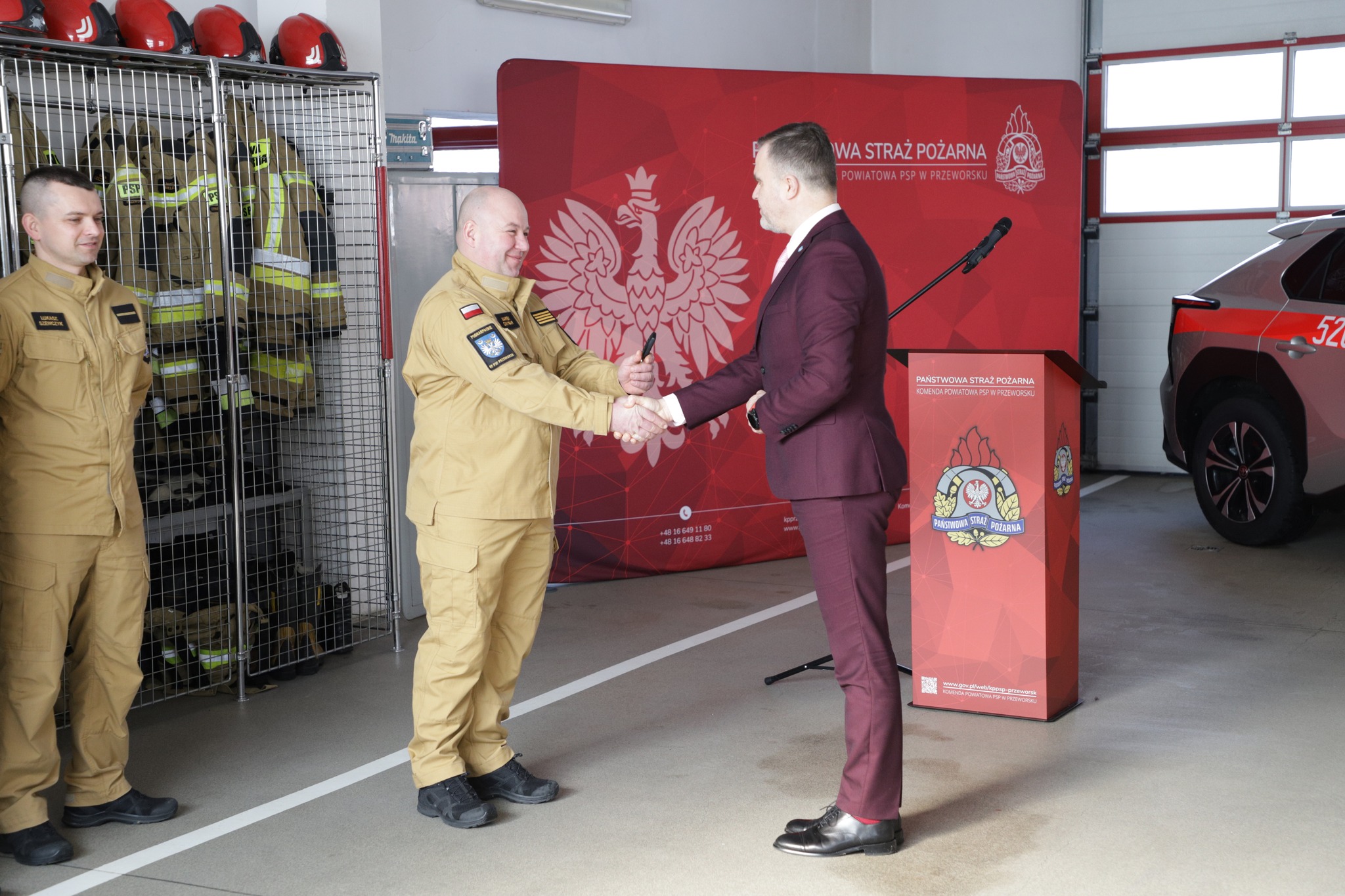 W Komendzie Powiatowej Pa艅stwowej Stra偶y Po偶arnej w Przeworsku odby艂o si臋 uroczyste przekazanie lekkiego samochodu operacyjnego dla przeworskich stra偶aków.