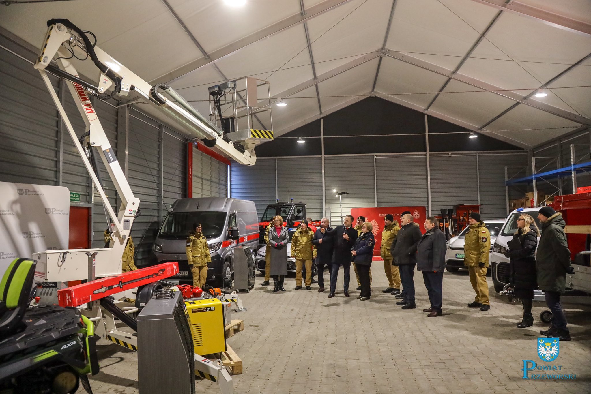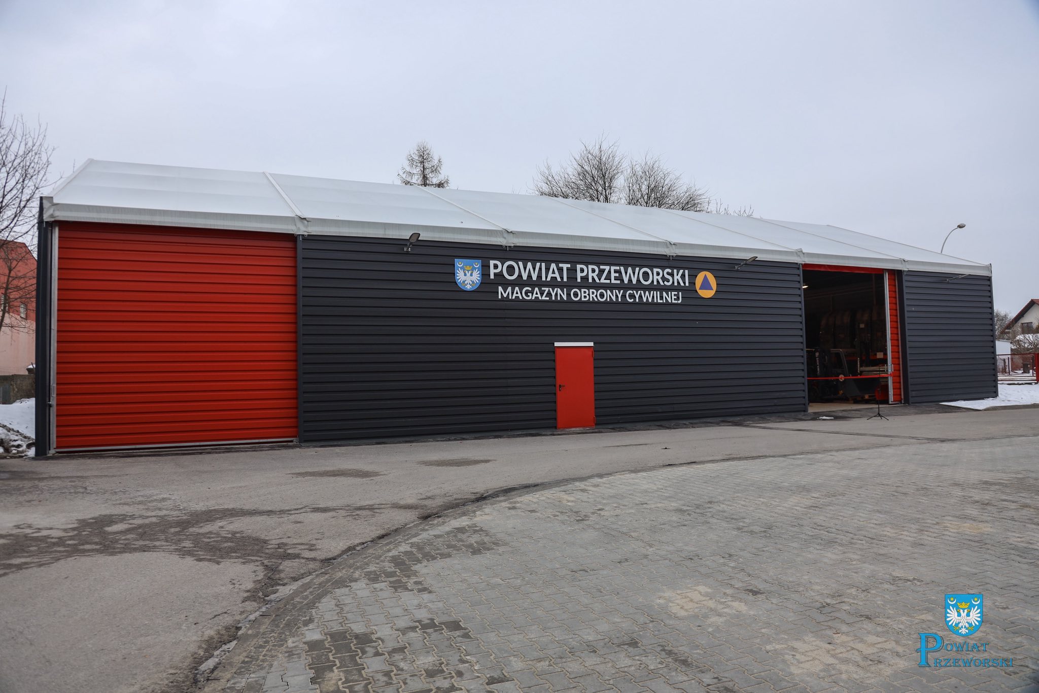 Zrealizowano przedsięwzięcie polegającej na budowie nowoczesnej hali magazynowej wraz z pełnym wyposażeniem, finansowanej w ramach Programu Ochrony Ludności i Obrony Cywilnej na lata 2025–2026. Uroczyste otwarcie obiektu zostało podkreślone symbolicznym przecięciem wstęgi oraz oficjalnym oddaniem go do użytku. Obiekt powstał na terenie naszej Komendy. Całkowita wartość zadania wyniosła 𝟭 𝟳𝟮𝟱 𝟰𝟲𝟴,𝟯𝟰 𝘇ł , z czego wkład własny Powiatu Przeworskiego to 𝟯𝟱𝟬 𝟯𝟱𝟳,𝟳𝟱 𝘇ł. Dofinansowanie przekazane przez Wojewodę stanowiło 80% kosztów inwestycji – 𝟭 𝟯𝟳𝟱 𝟭𝟭𝟬,𝟱𝟵 𝘇ł.