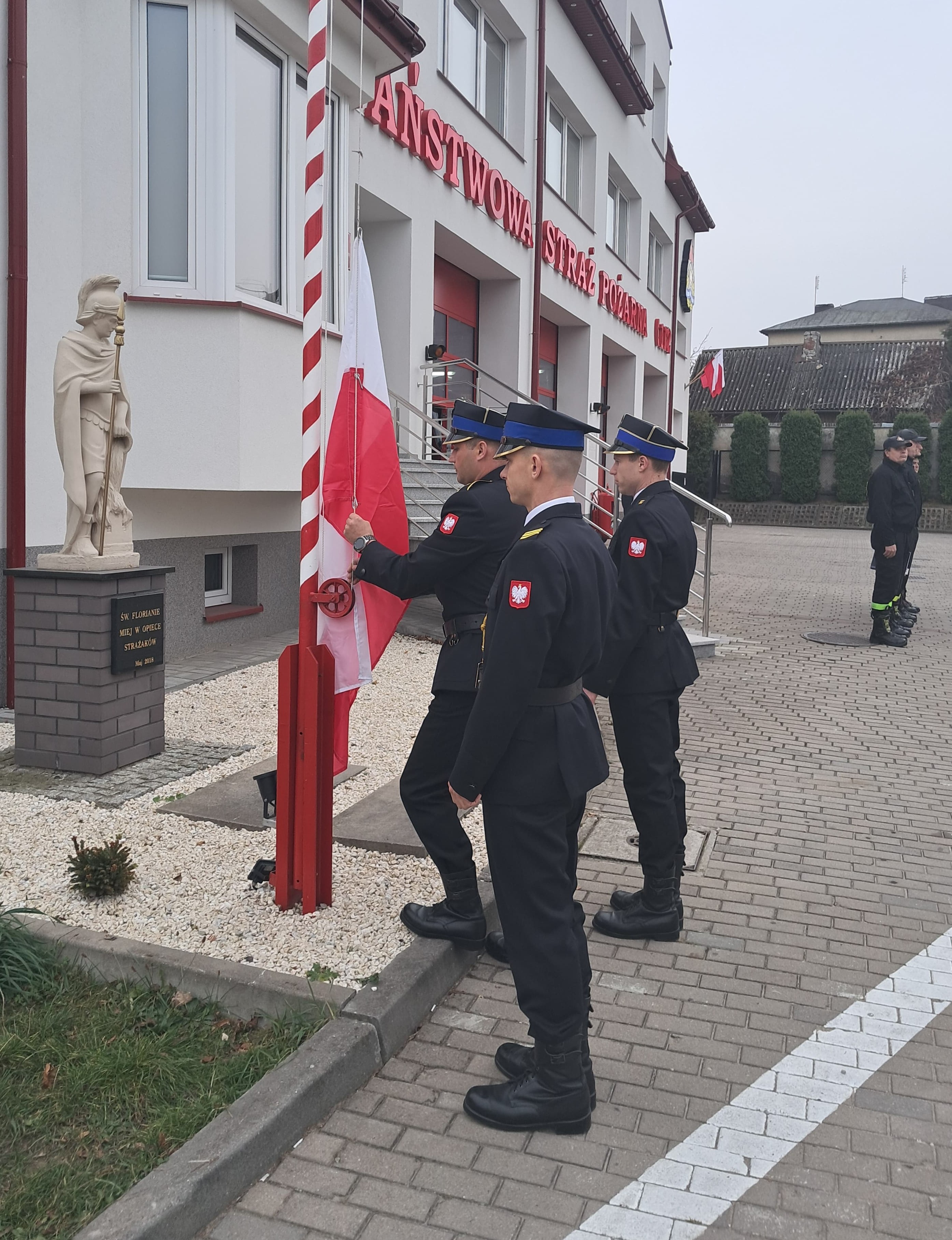 Z okazji Narodowego Święta Niepodległości, 11 listopada 2024 roku na placu przed Komendą Powiatową Państwowej Straży Pożarnej w Przysusze odbyła się uroczysta zmiana służbowa z podniesieniem flagi państwowej na maszt.