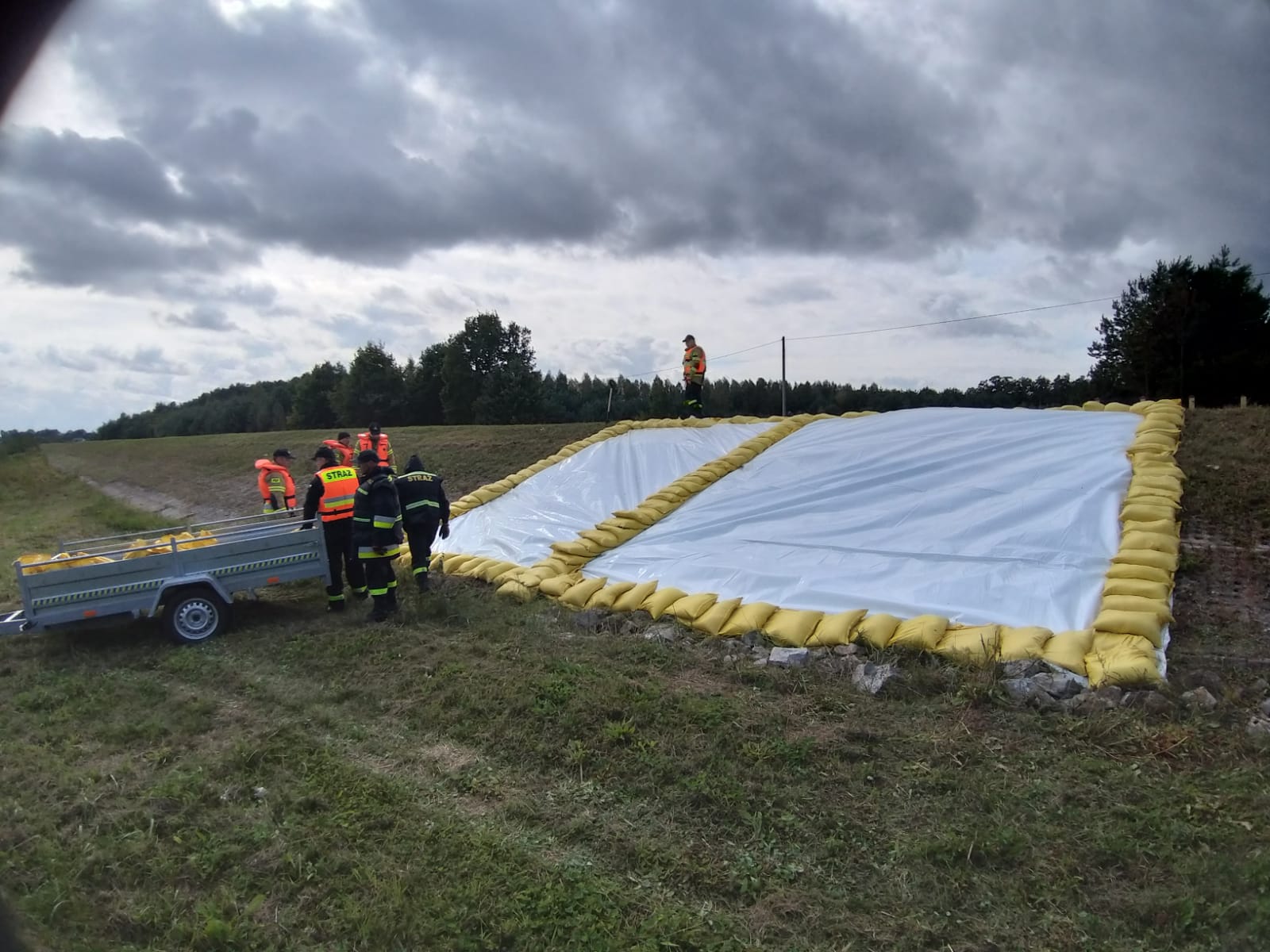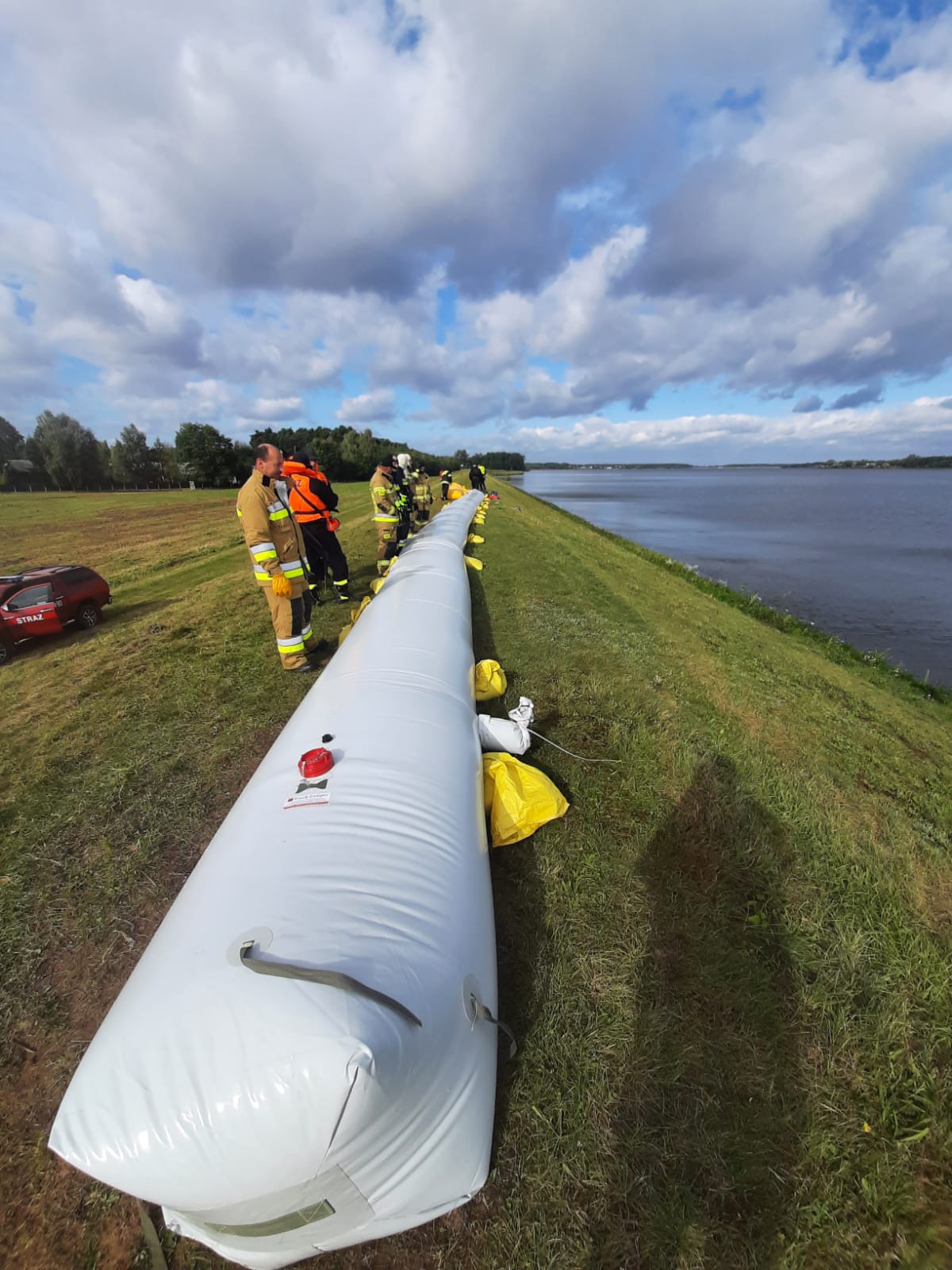 - podniesienie korony wału o około 1 m w dwóch miejscach (w sumie na odcinku 100 m) za pomocą worków z piaskiem,