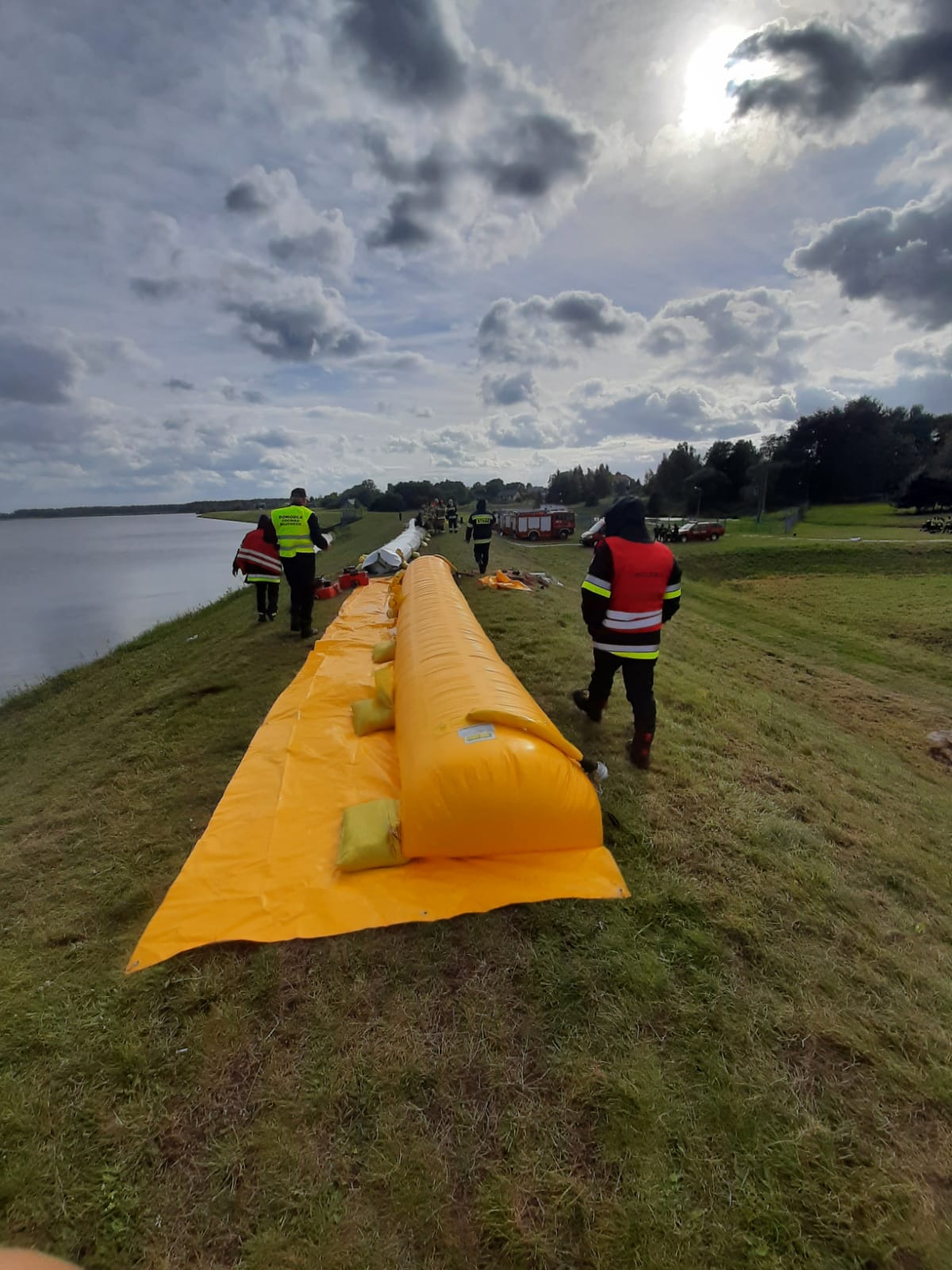 - podniesienie wierzchołka wału na długości 50 m na wysokość ponad 50 cm za pomocą zapór przeciwpowodziowych,