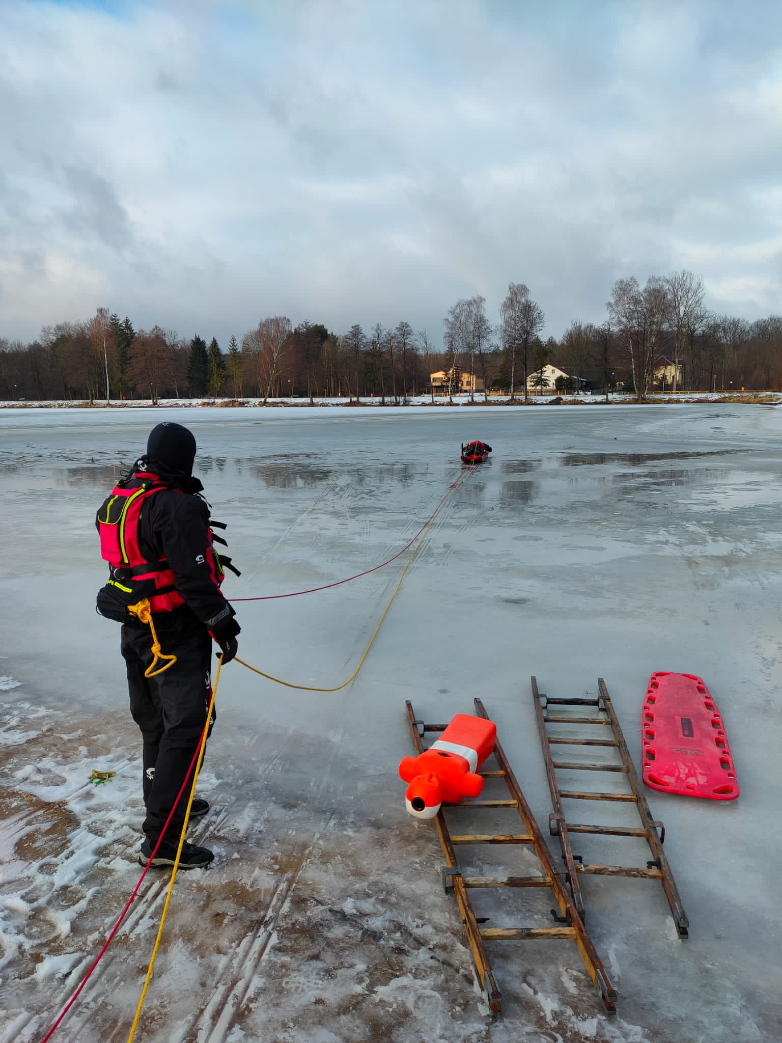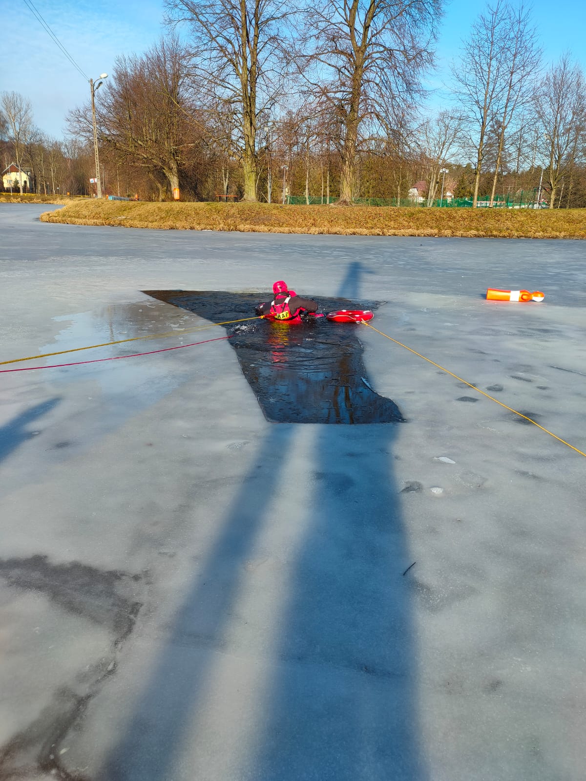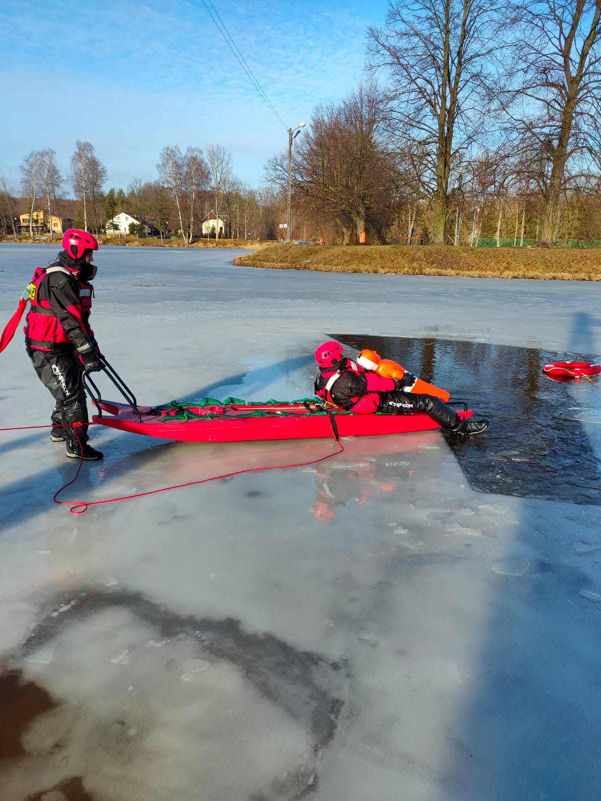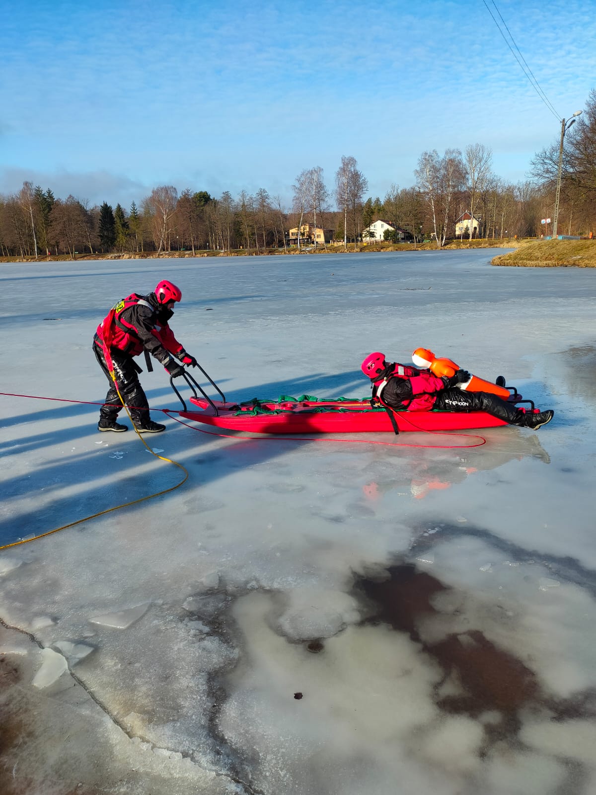 Ćwiczenia z zakresu ratownictwa lodowego na Zalewie Topornia