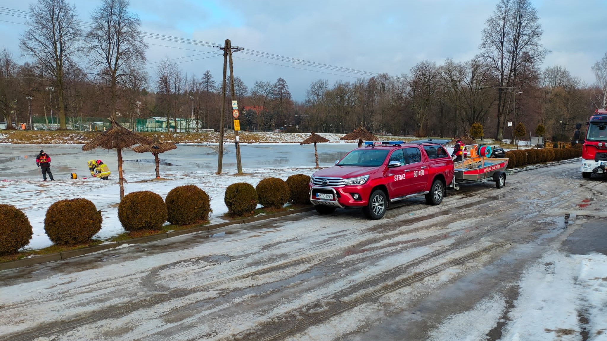 W dniach 26.01 - 03.02 br. na Zalewie Topornia w Przysusze, zmiany służbowe przysuskiej Jednostki Ratowniczo-Gaśniczej przeprowadzały ćwiczenia, których tematyką było ratownictwo na zamarzniętych akwenach. Strażakom udało się rozpoznać ten obiekt pod kątem możliwości prowadzenia działań ratowniczych oraz przećwiczyć szereg zagadnień z zakresu ratownictwa na lodzie. Do działań wykorzystano między innymi sanie lodowe, rzutki ratunkowe, koła ratunkowe oraz sprzęt, który może być dostępny na miejscu zdarzenia tj. drabiny lub inne przedmioty, które unoszą się na wodzie i mogą służyć do uratowania osoby.