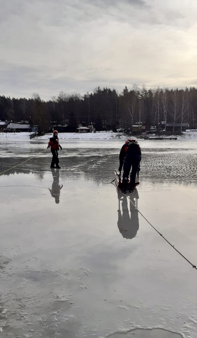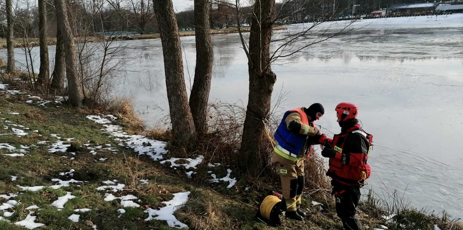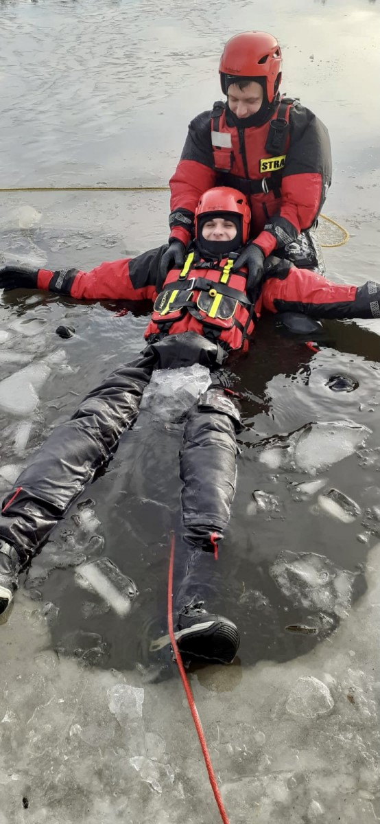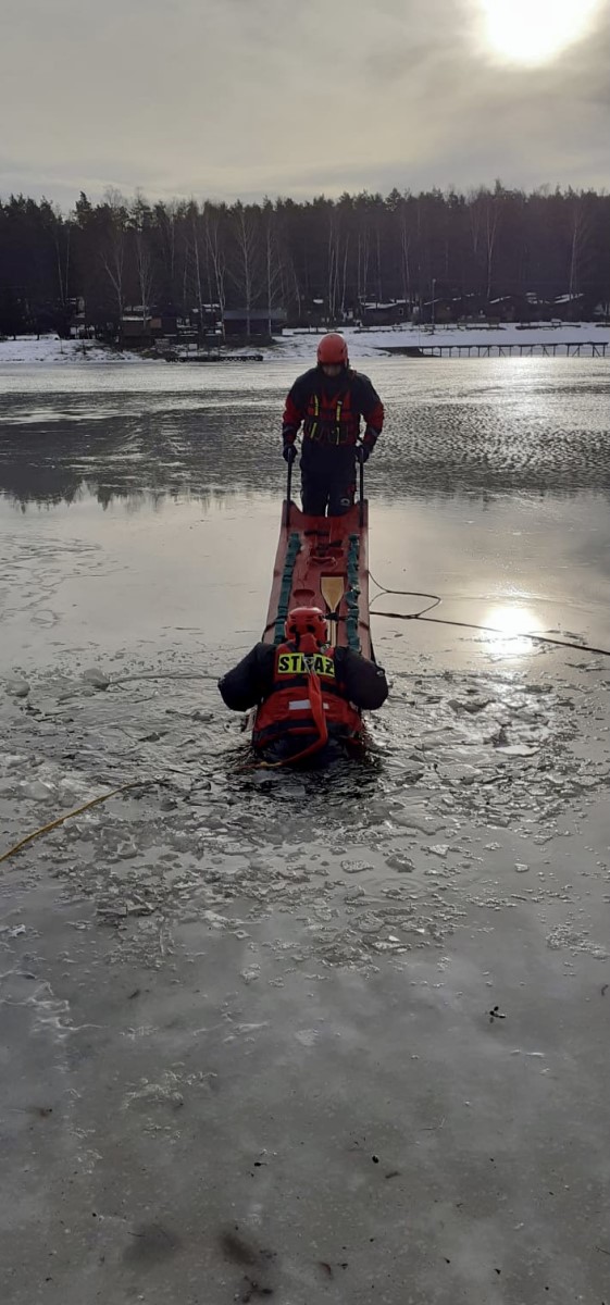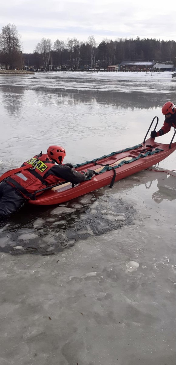 Ćwiczenia z zakresu ratownictwa lodowego na zbiorniku wodnym Topornia