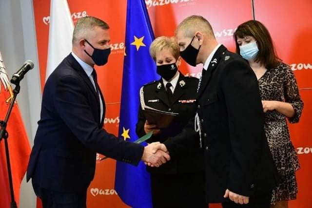 Za swoją profesjonalną postawę otrzymal tytuł Strażaka Miesiąca. Wyróżnienie i nagrodę finansową odebrali z rąk wicemarszałka Rafała Rajkowskiego oraz członka zarządu województwa Janiny Ewy Orzełowskiej.