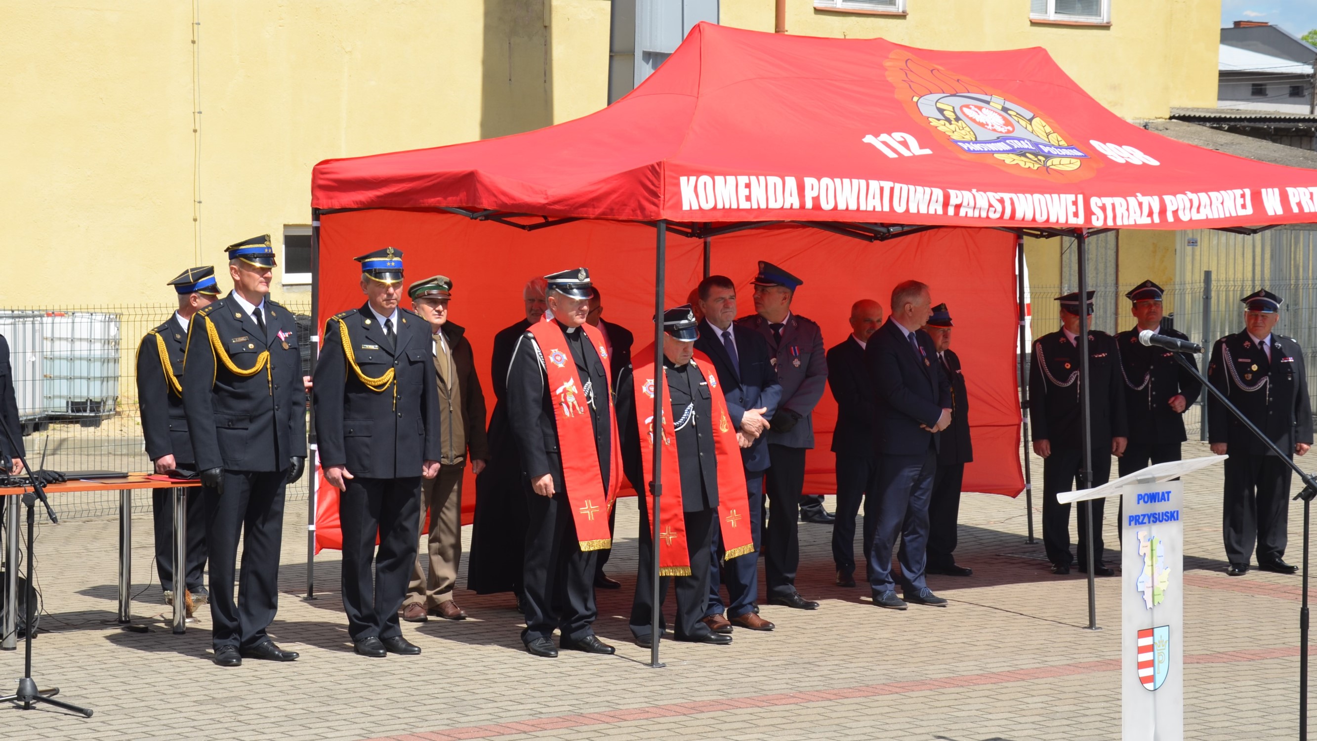 Powitania zebranych dokonał komendant powiatowy PSP w Przysusze bryg. Marcin Sokół, który przedstawił informację o prowadzonych działaniach ratowniczo-gaśniczych, zrealizowanych inwestycjach i zakupach w KP PSP w Przysusze oraz w jednostkach OSP. Słowa podziękowania skierował do Komendanta Głównego PSP, Mazowieckiego Komendanta Wojewódzkiego PSP, Starosty Przysuskiego, burmistrza i wójtów gmin za rozumienie potrzeb KP PSP w Przysusze oraz wymierną pomoc finansową m.in. w zakupie samochodu mikrobus, samochodu rozpoznawczo-ratowniczego, pojazdu typu quad, pralnicy i suszarni do ubrań specjalnych, modernizacji systemu łączności oraz remoncie dachu i wymianie okien w budynku komendy. Podziękował również strażakom Państwowej Straży Pożarnej i Ochotniczych Straży Pożarnych za zaangażowanie w działania ratownicze, włożony wysiłek w ratowanie mienia, zdrowia i życia poszkodowanych.