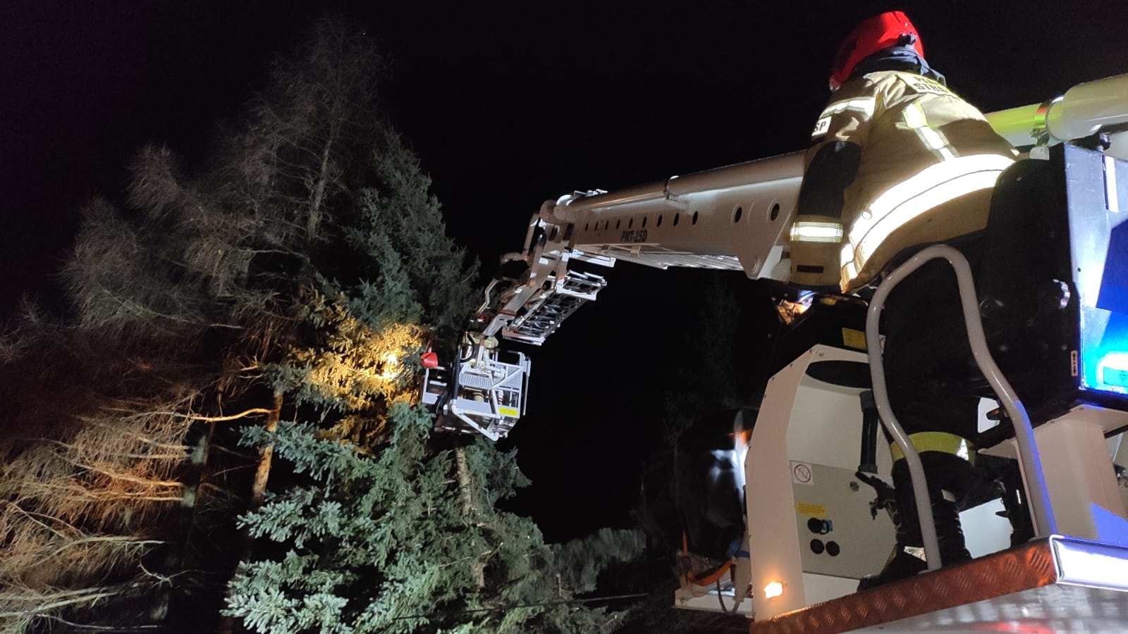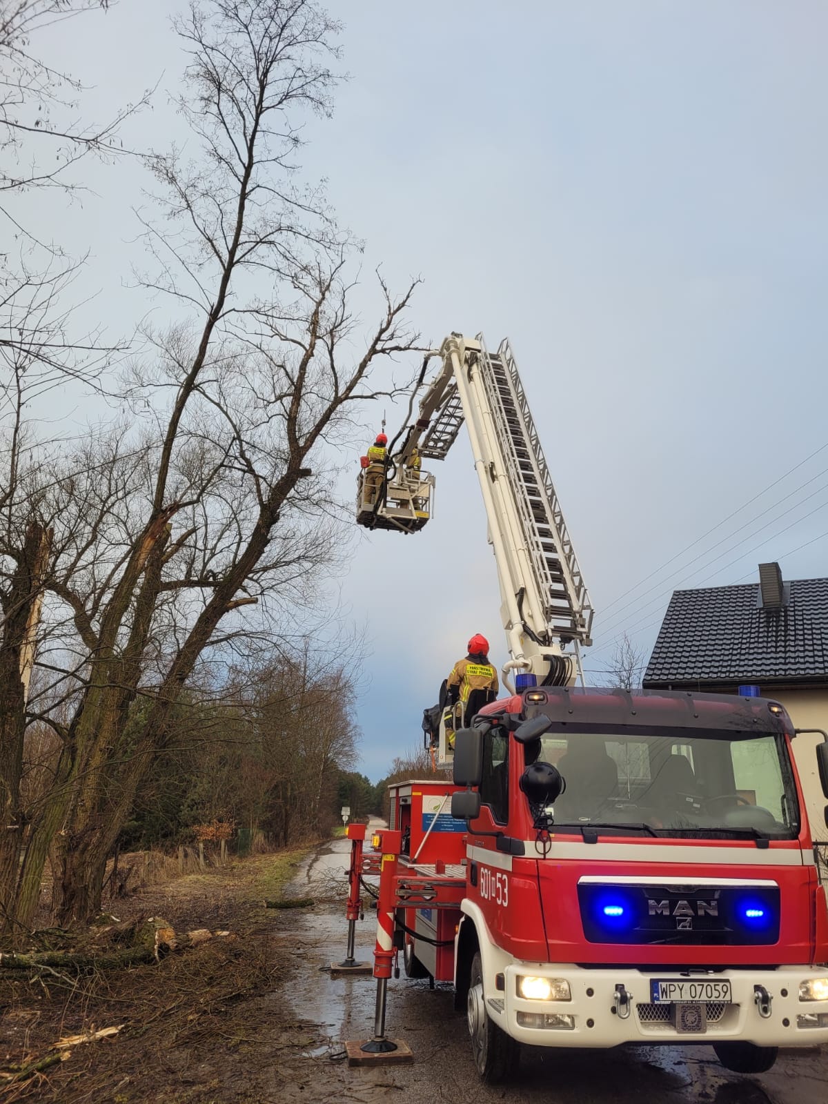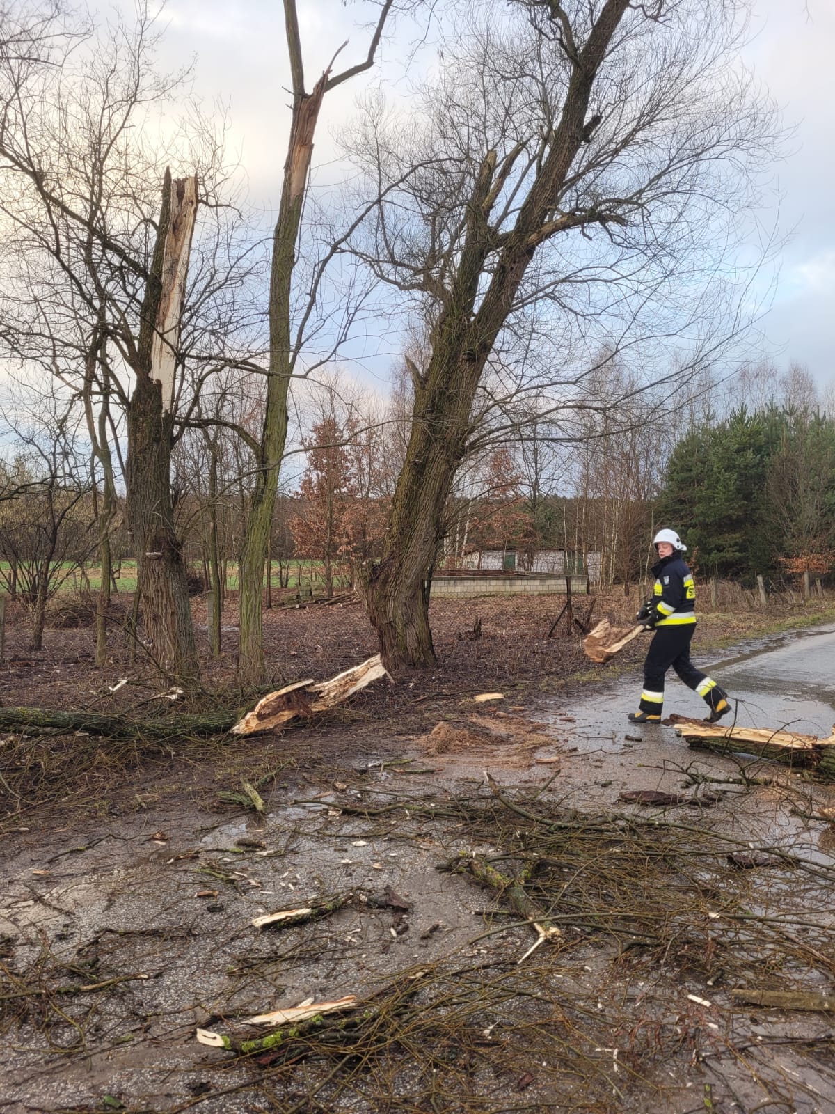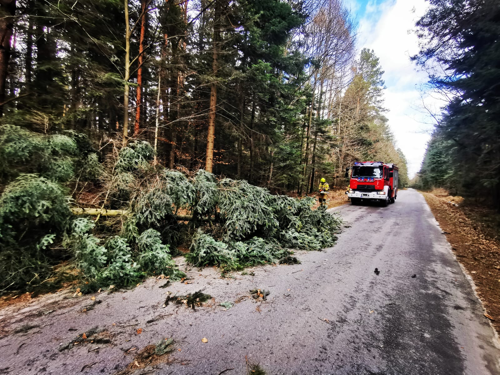 Kolejny dzień usuwania skutków podmuchów silnego wiatru. Odnotowano 7 zdarzeń związanych z niekorzystnymi warunkami atmosferycznymi (m.in. pochylony maszt antenowy, drzewa na drodze, drzewa stanowiące zagrożenie, uszkodzone dachy w budynkach mieszkalnych, zasilanie koncentratora tlenu)