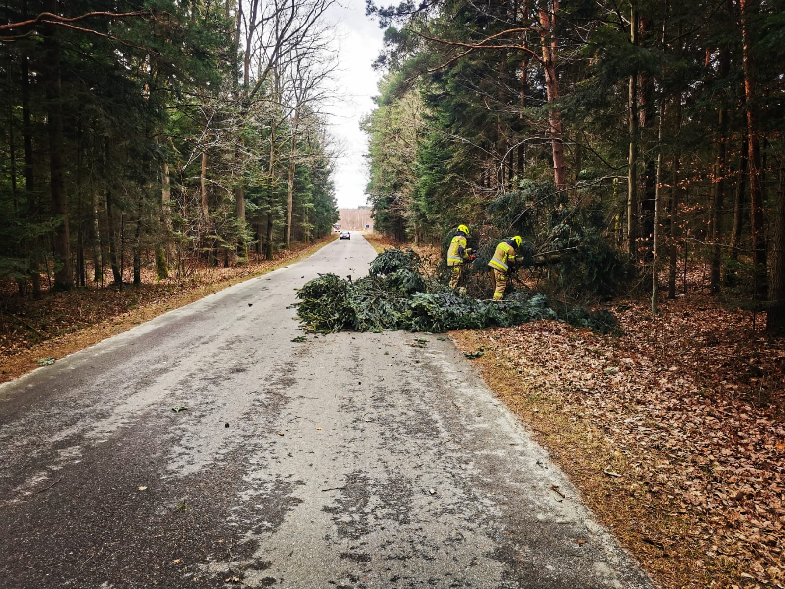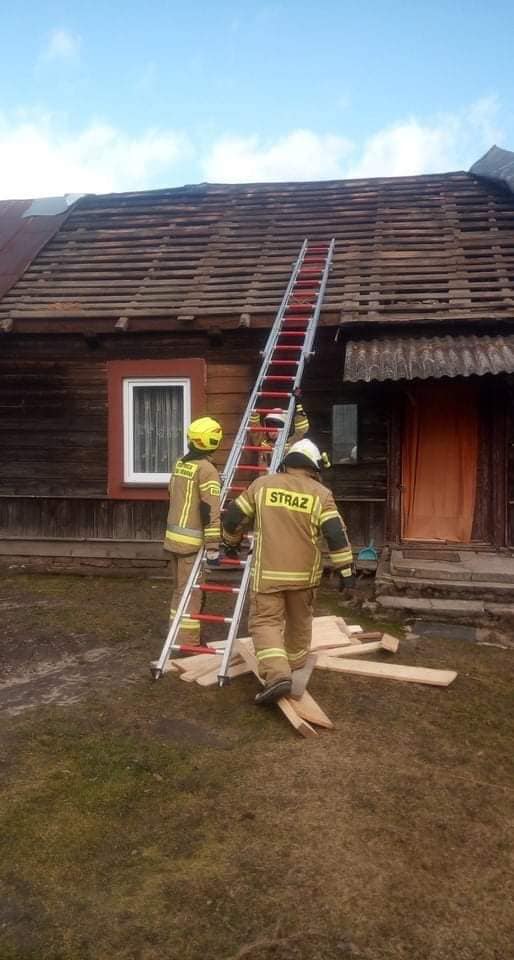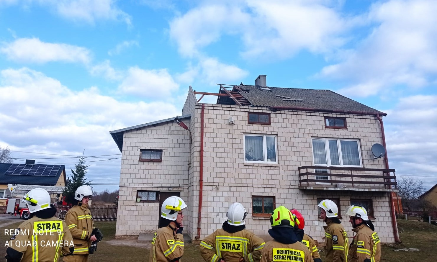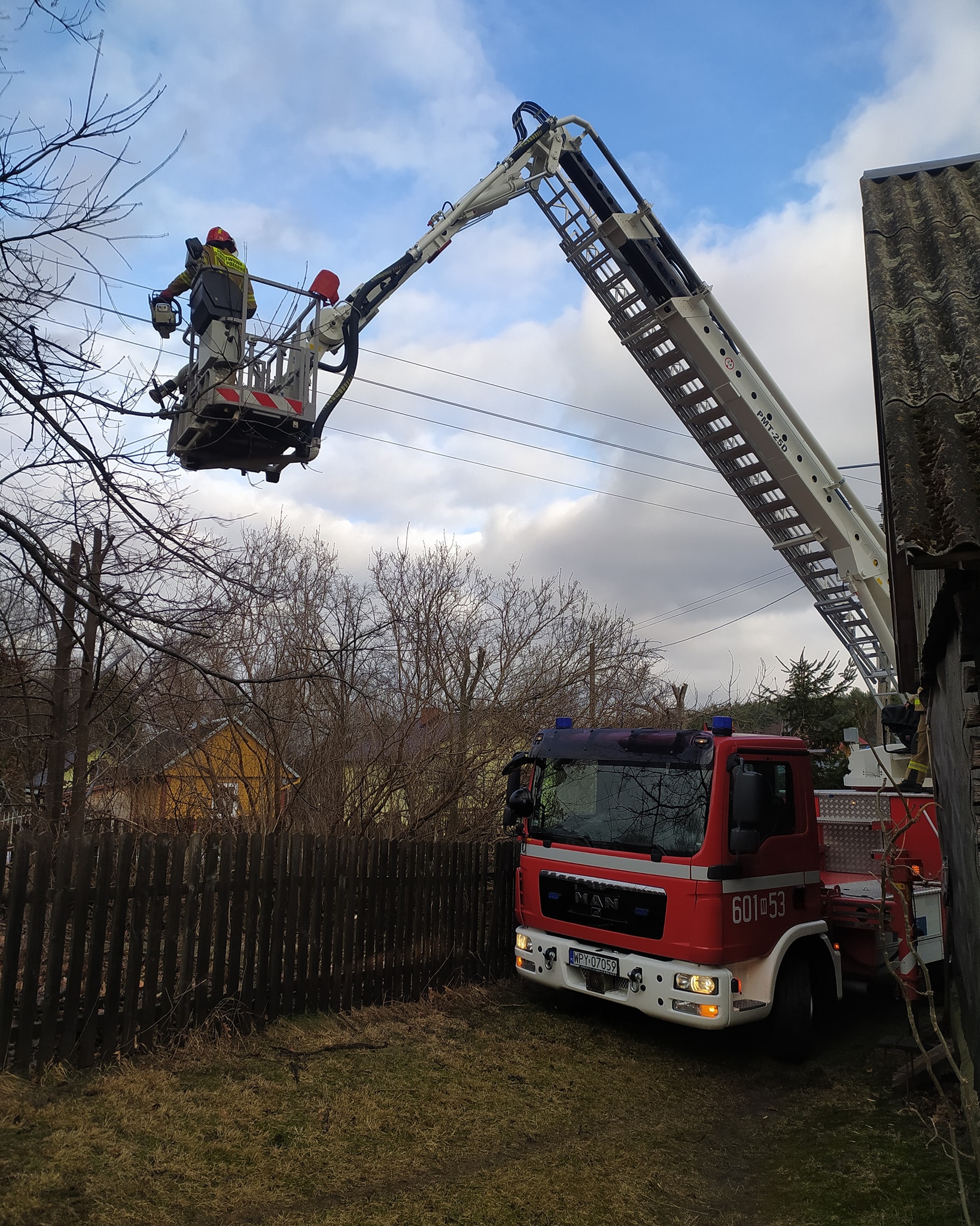 Kolejny dzień usuwania skutków podmuchów silnego wiatru. Odnotowano 7 zdarzeń związanych z niekorzystnymi warunkami atmosferycznymi (m.in. pochylony maszt antenowy, drzewa na drodze, drzewa stanowiące zagrożenie, uszkodzone dachy w budynkach mieszkalnych, zasilanie koncentratora tlenu)