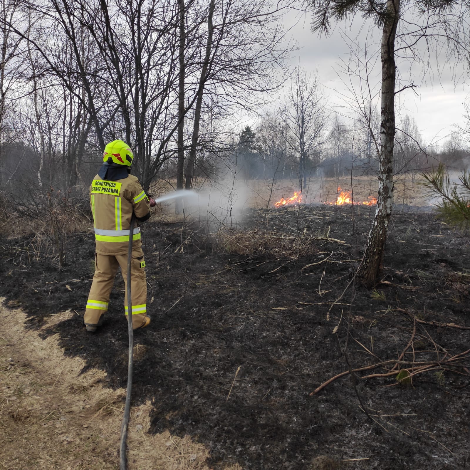 Dwa zastępy OSP zadysponowane zostały do pożaru nieużytkowanych powierzchni rolniczych na ul. Praga w Odrzywole.