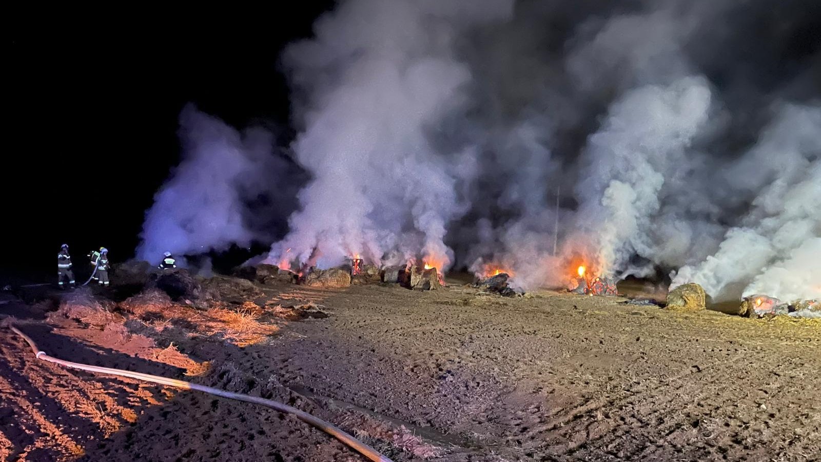 Łącznie siedem samochodów z JRG PSP i OSP zadysponowano do pożaru balotów na polu przy ulicy Przytyckiej w Wieniawie. Spaleniu uległo około 100 sztuk balotów słomy.