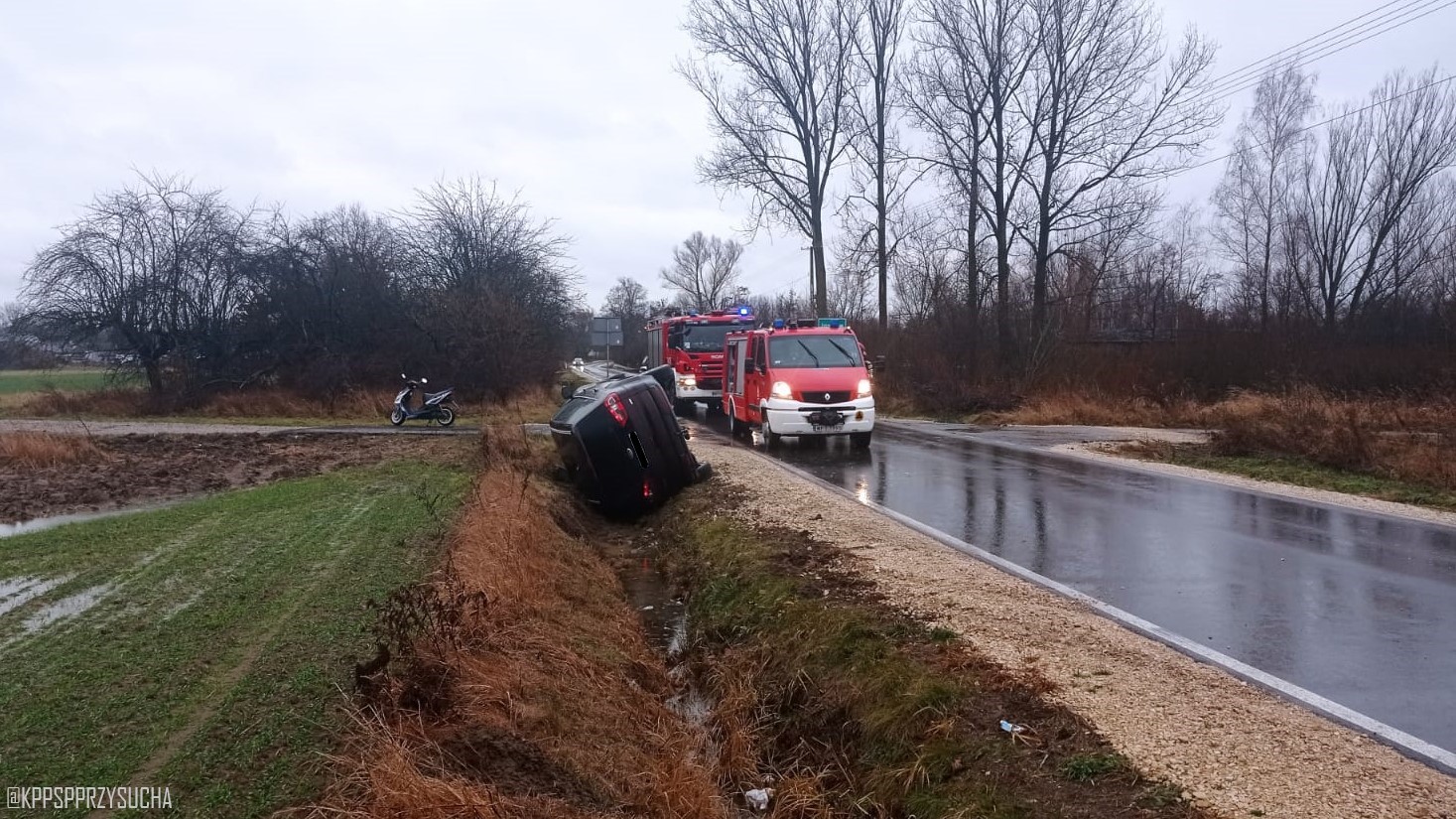 Trzy zastępy PSP zadysponowano do dachowania samochodu osobowego na ulicy Cichej w miejscowości Janików. Działania zastępów polegały zabezpieczeniu miejsca zdarzenia oraz udzieleniu KPP osobie poszkodowanej.