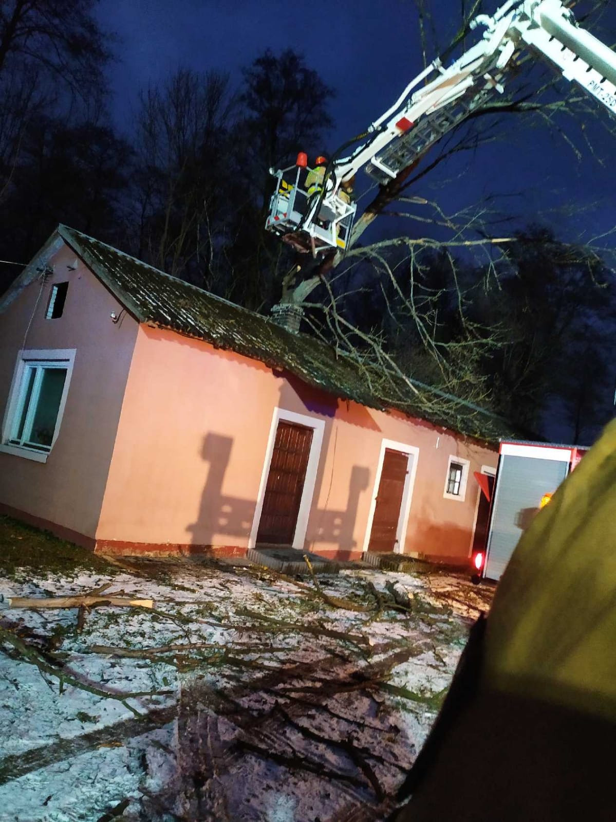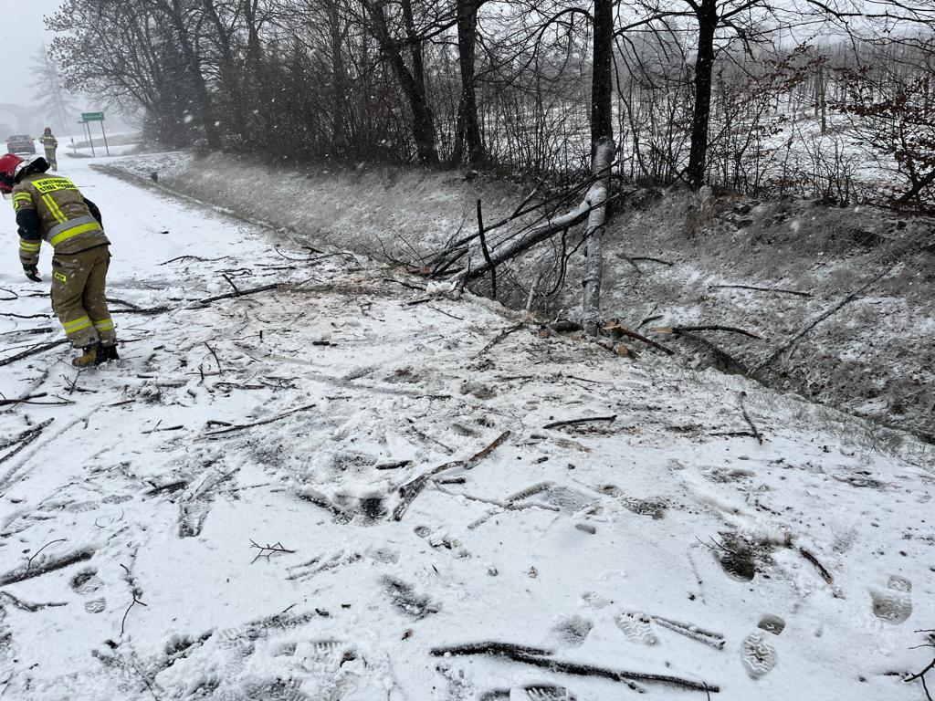 Zastęp PSP oraz dwa zastępy OSP zadysponowano do drzewa powalonego na budynek gospodarczy w miejscowości Nowy Świat gm. Klwów.