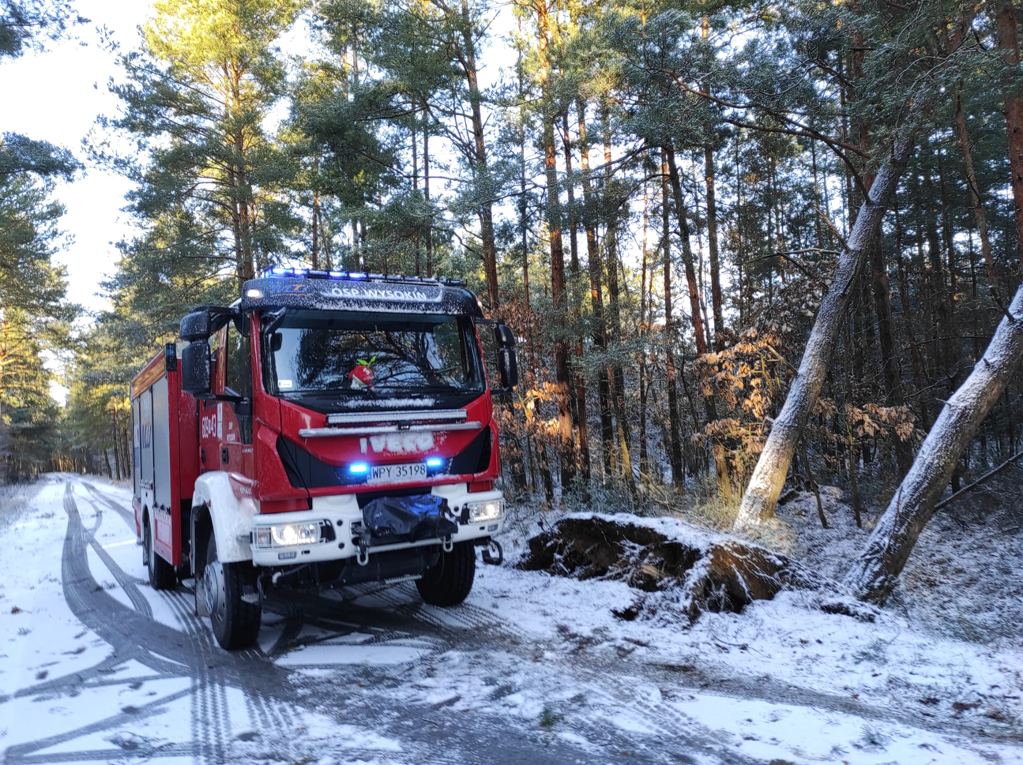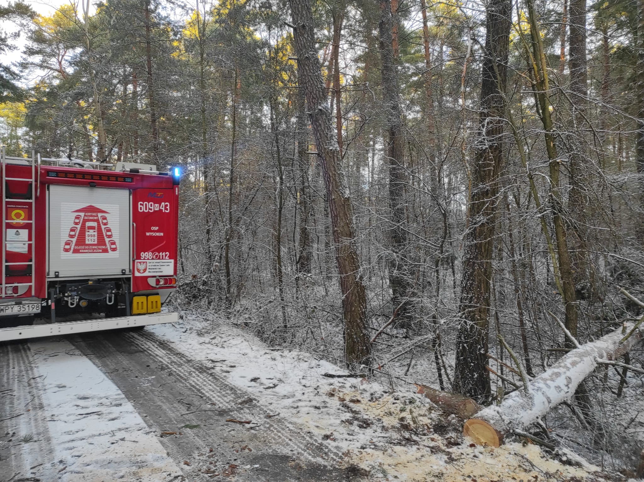 Zastęp PSP został zadysponowany do powalonego drzewa na linię energetyczną w miejscowości Stanisławów, gm. Odrzywół.