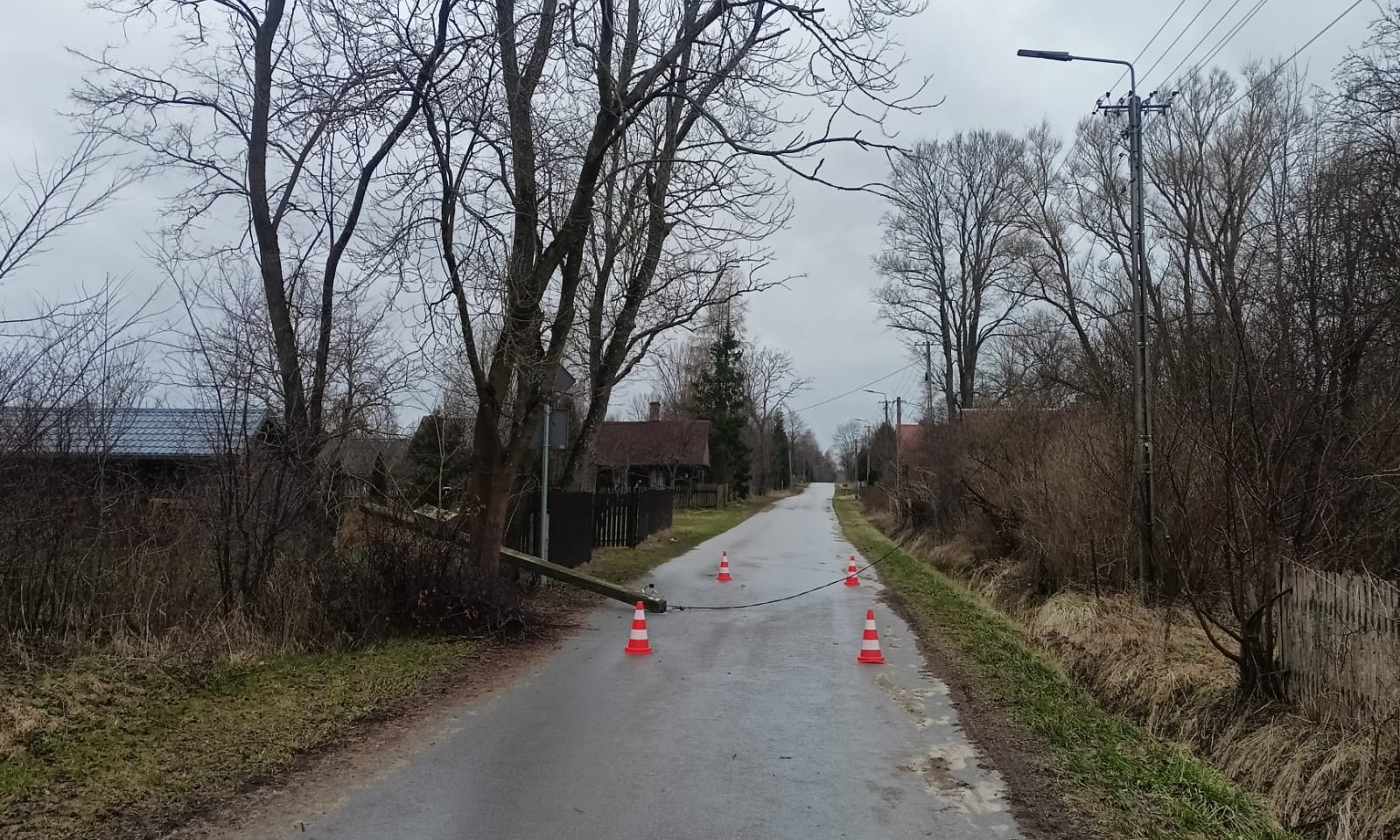 Samochód z JRG PSP w Przysusze zadysponowano do powalonego na drogę słupa elektrycznego w miejscowości Bolęcin (gmina Borkowice).