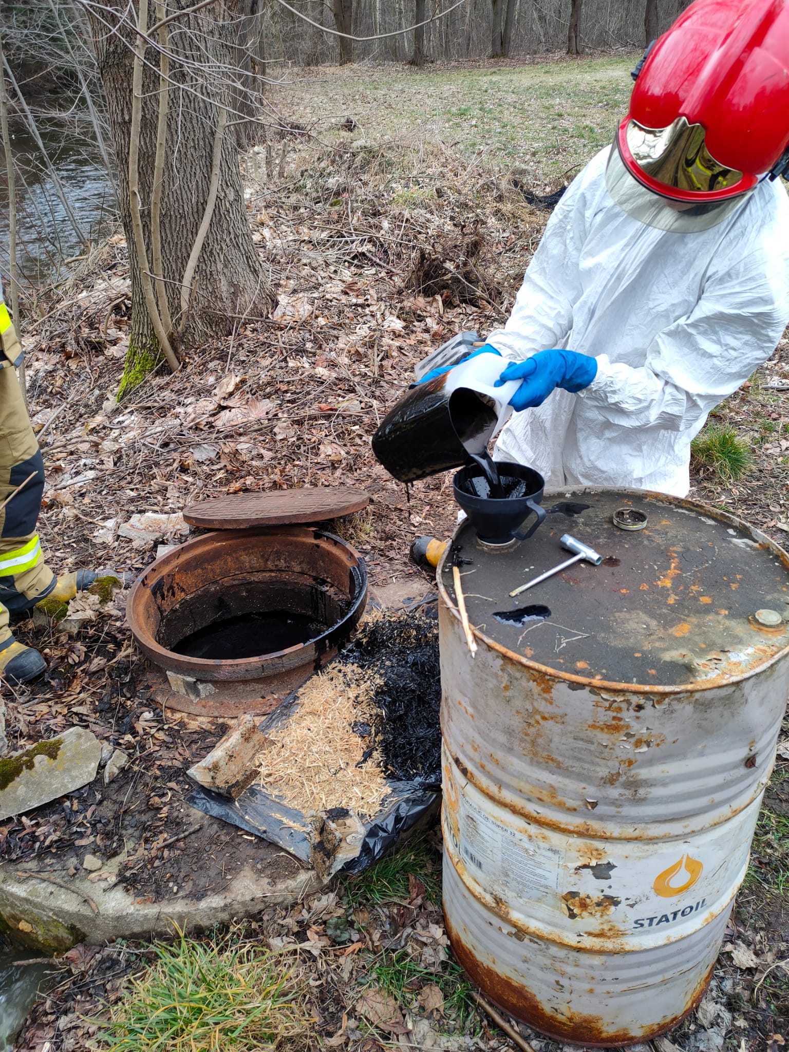 Trzy zastępy JRG PSP oraz Specjalistyczna Grupa Ratownictwa Chemiczno-Ekologicznego „RADOM 6” dysponowano do nieznanej oleistej substancji unoszącej się w studzienkach kanalizacyjnych przy ul. Topornia w Przysusze.