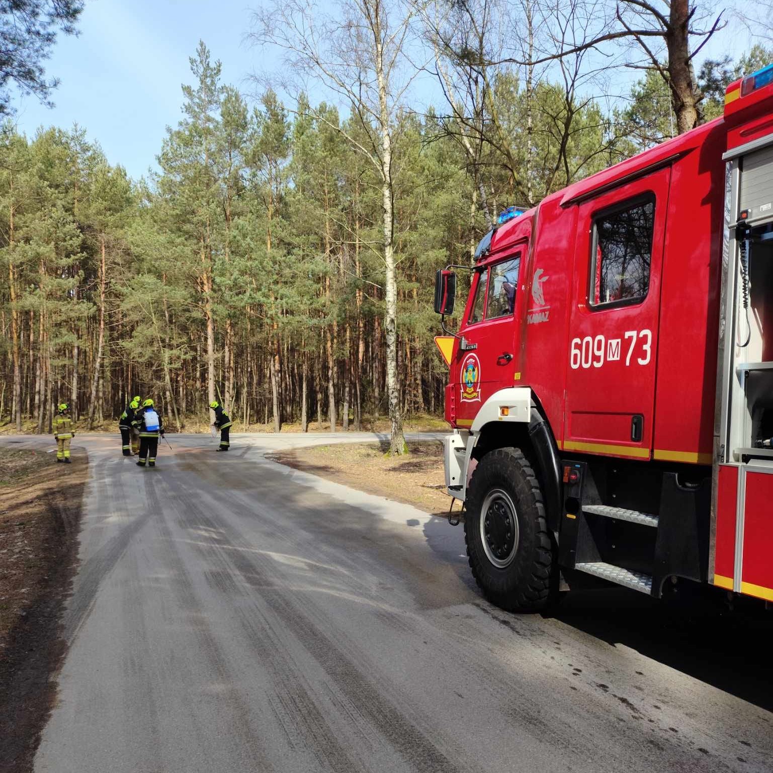 Samochód z OSP Zychorzyn zadysponowano do plamy substancji ropopochodnej na drodze powiatowej w Antoniowie (gmina Gielniów).
