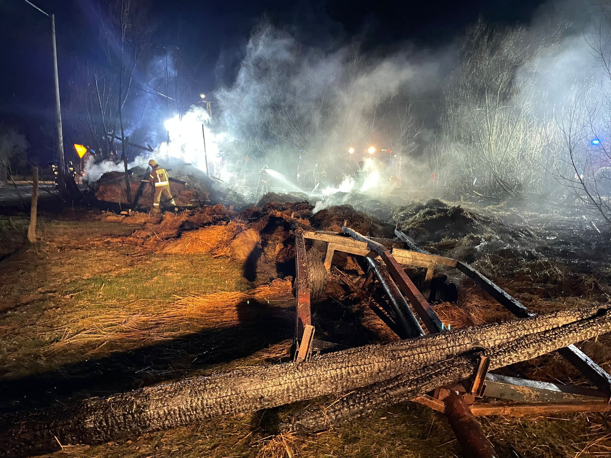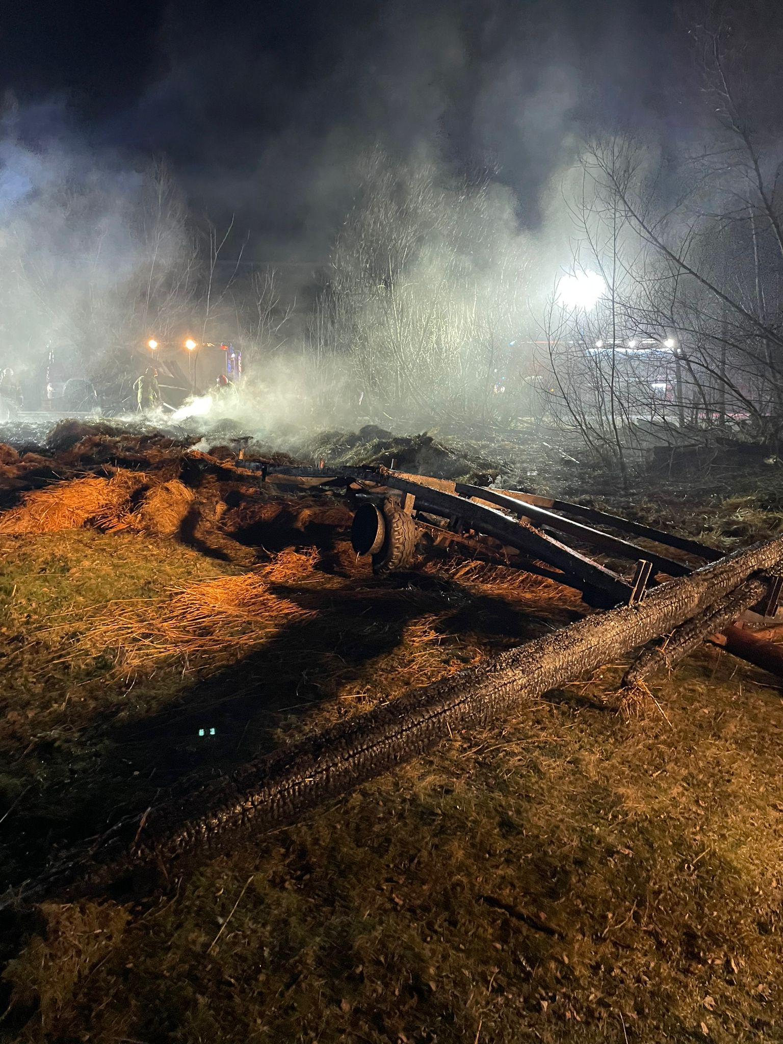 Zastęp PSP oraz zastęp OSP Rusinów zadysponowano do dogaszania pogorzeliska po pożarze stodoły w Rusinowie.