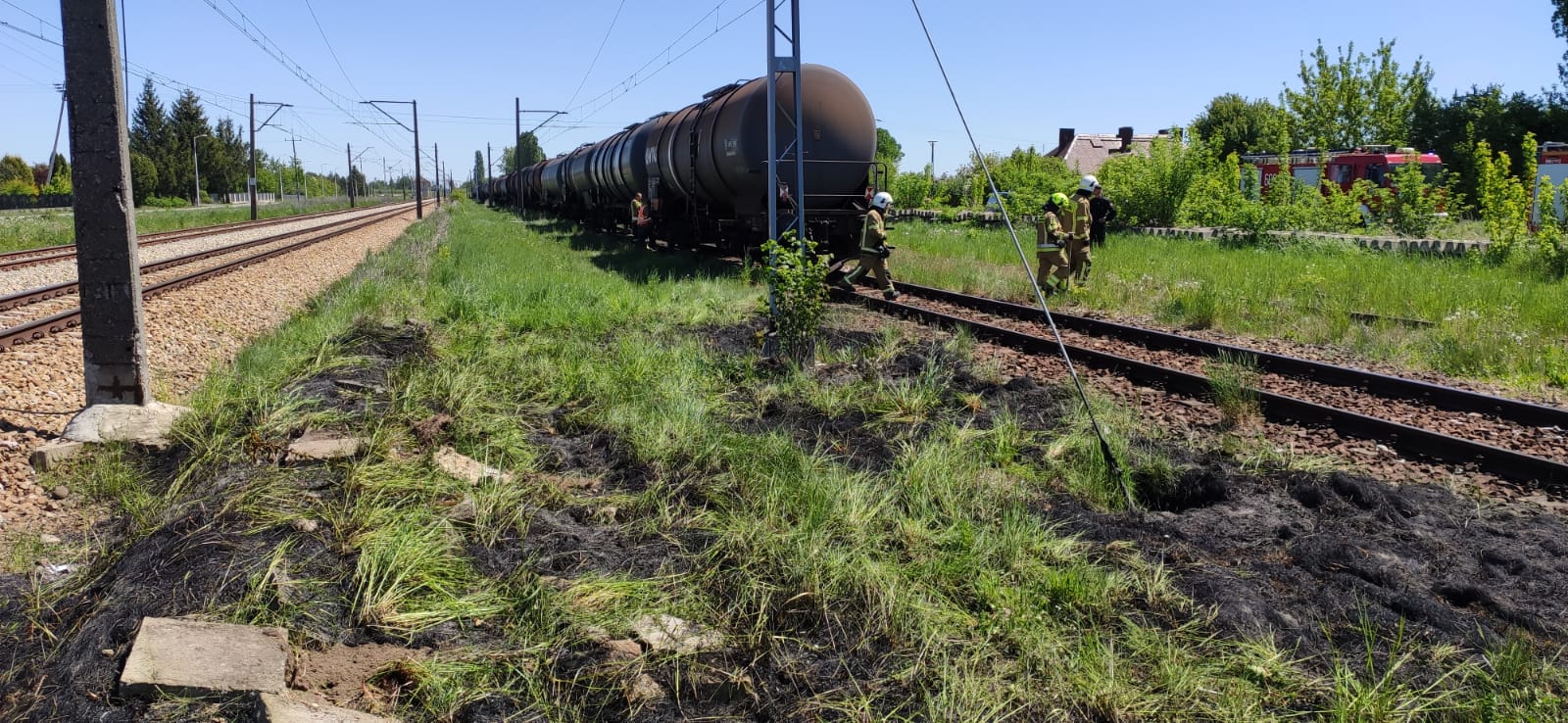 Zastęp OSP Skrzyńsko zadysponowany został do pożaru traw przy nasypie kolejowym w Skrzyńsku, gm. Przysucha.
