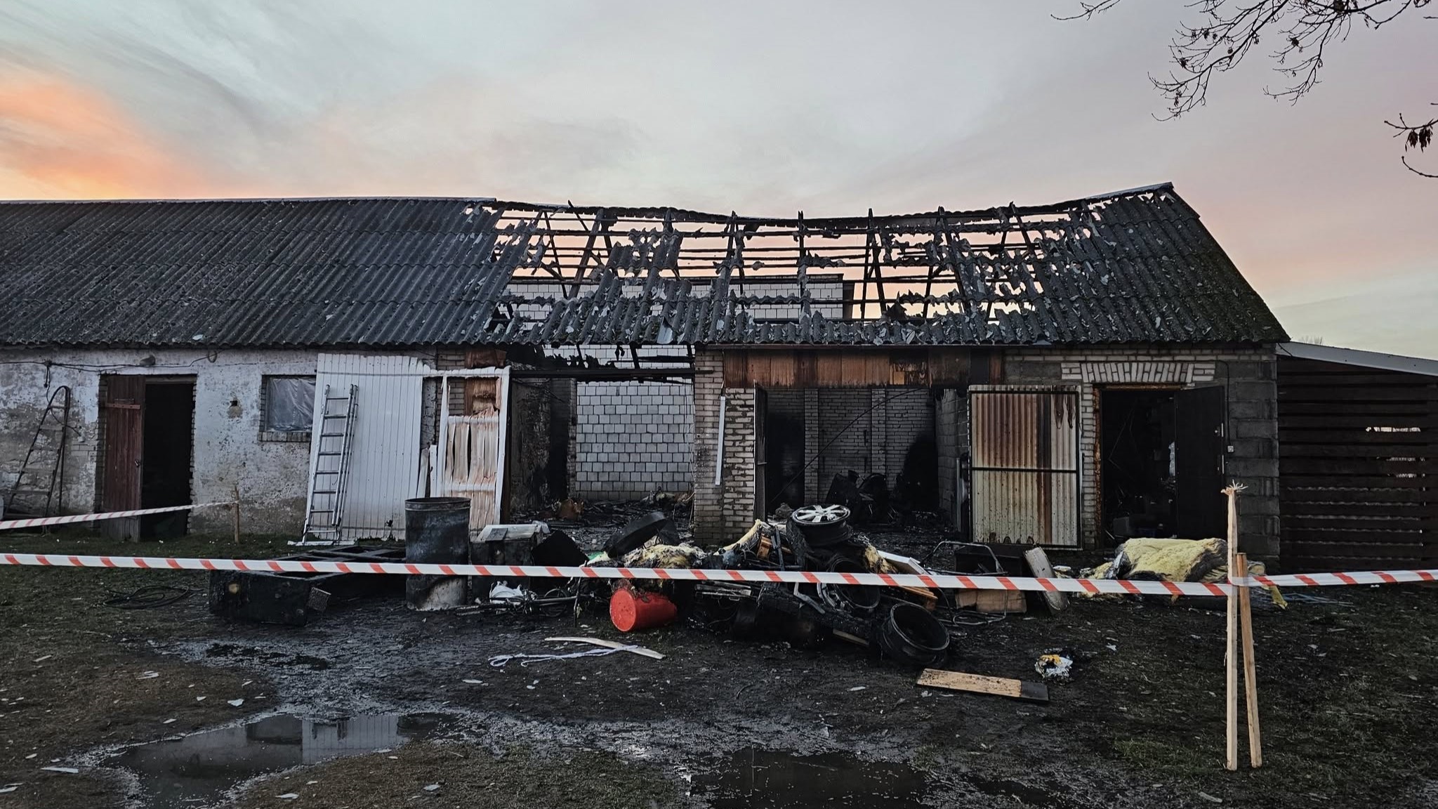 Łącznie 7 samochodów JOP zadysponowano do pożaru stodoły na posesji w Zbożennie (gmina Przysucha).