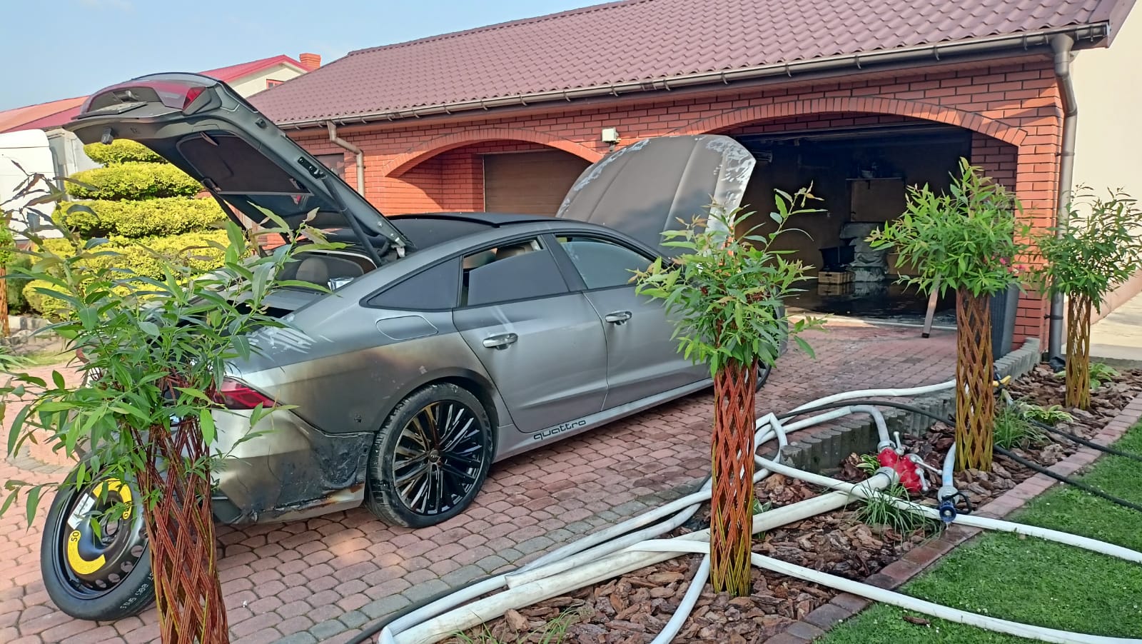 Dwa zastępy PSP oraz zastęp OSP Gielniów zadysponowano do pożaru samochodu w garażu w miejscowości Stoczki gm. Gielniów.