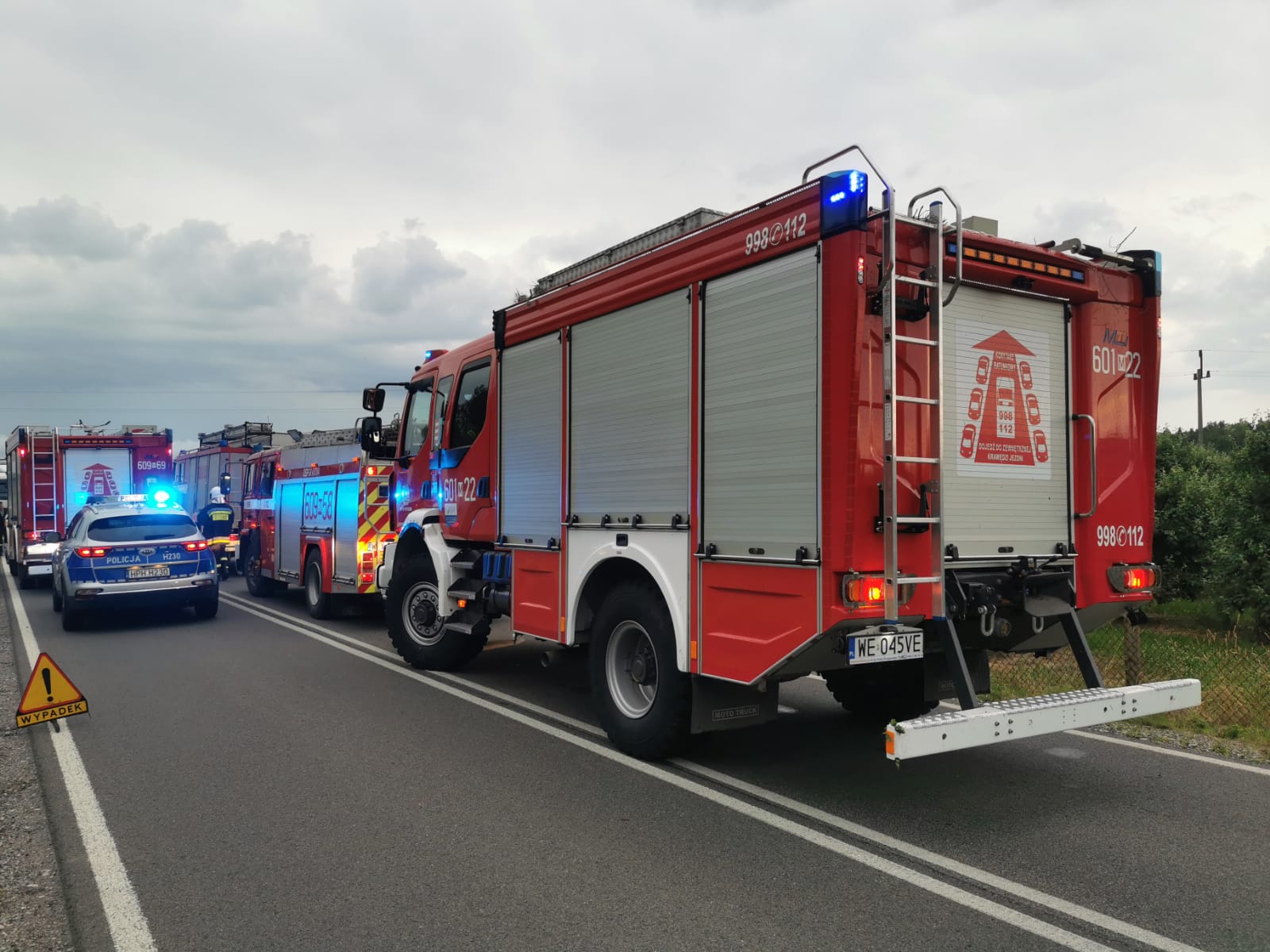 Zastęp PSP oraz trzy zastępy OSP zadysponowano do zderzenia dwóch samochodów osobowych, w wyniku którego poszkodowane zostały dwie osoby podróżujące pojazdami na drodze krajowej 48 w miejscowości Długie, gm. Potworów. Po dojeździe na miejsce zadysponowanych zastępów ustalono, że zdarzenie ma miejsce na terenie powiatu białobrzeskiego, miejscowość Jabłonna. Na miejsce dojechały zastępy z miejscowych jednostek, którym przekazano miejsce prowadzonych działań.