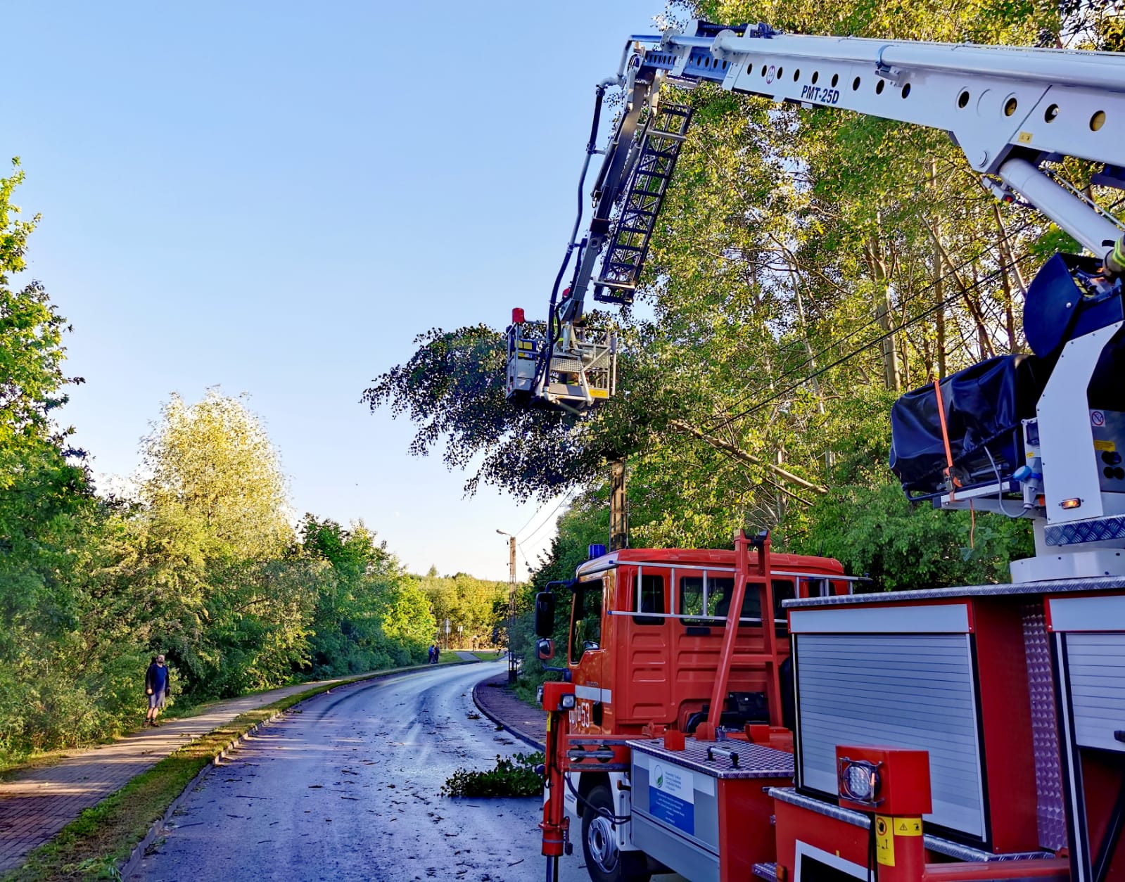 Zastęp PSP oraz zastęp OSP Przysucha zadysponowano do pochylonego drzewa stwarzającego zagrożenie na ulicy Świętokrzyskiej w Przysusze.