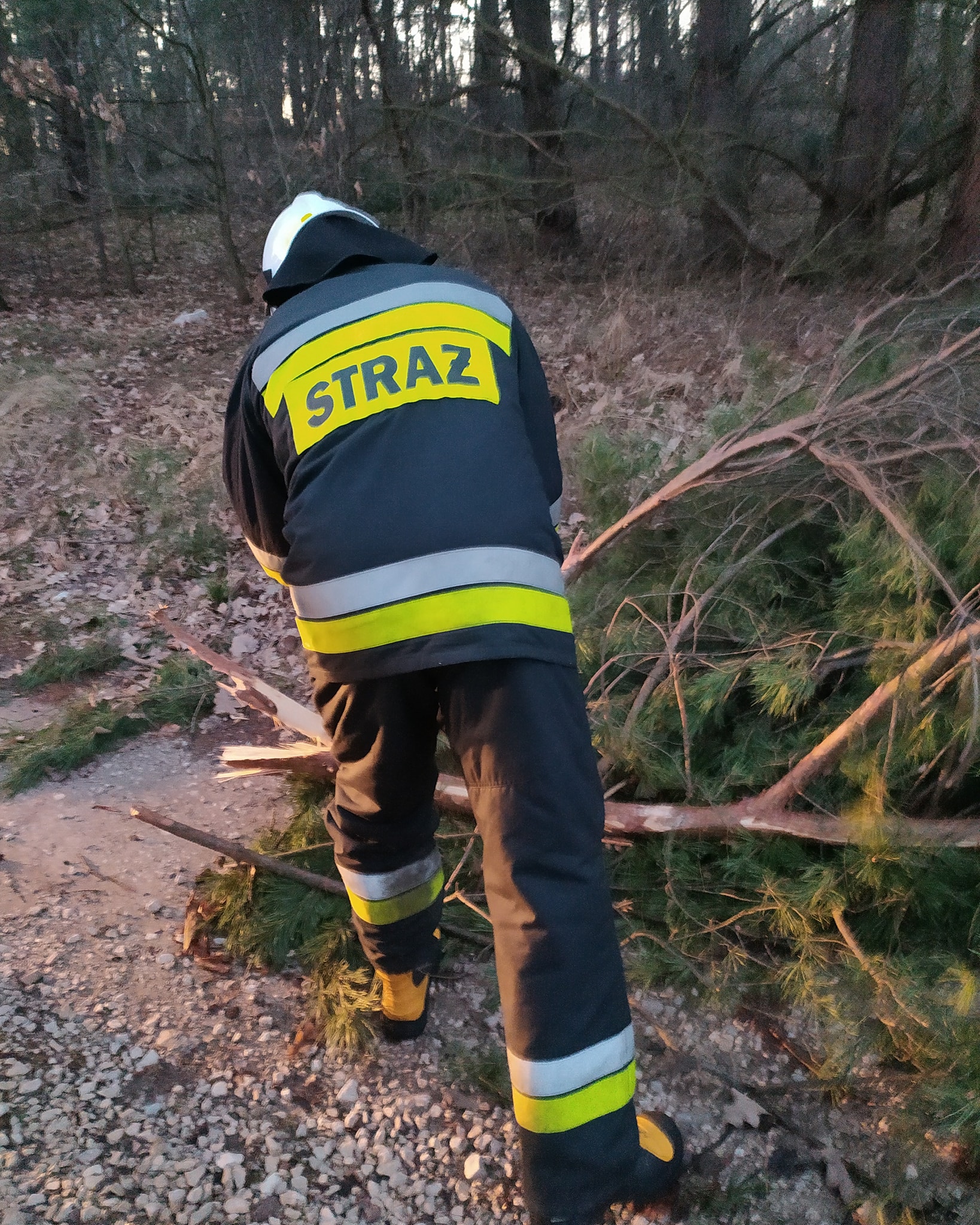 Zastęp OSP Rzuców podejmował interwencję w miejscowości Rzuców, polegającą na usunięciu zagrożenia ze strony powalonego drzewa na drogę gminną.