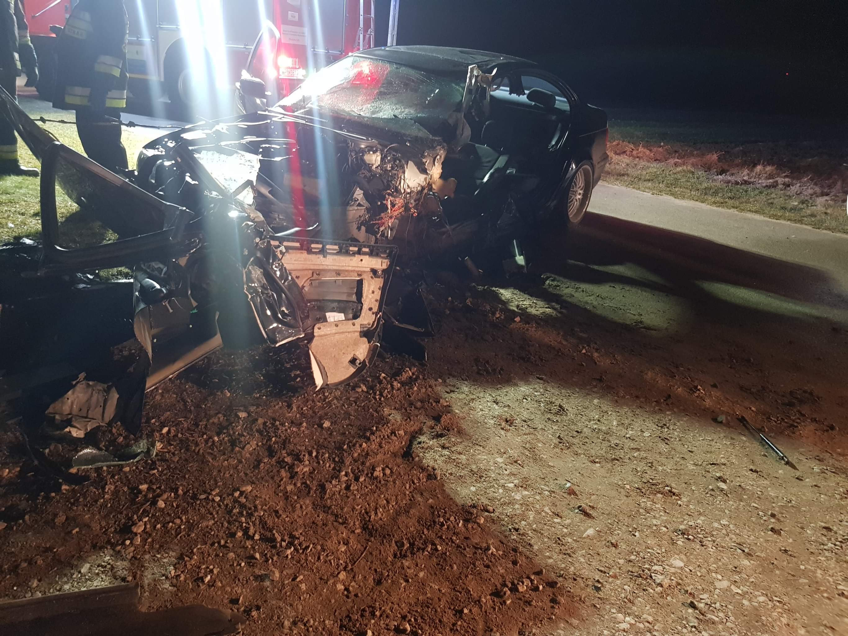 Podróżujący samochodem osobowym marki BMW mężczyzna stracił panowanie nad pojazdem i uderzył w przydrożny płot. W wyniku uderzenia kierujący został zakleszczony w pojeździe.