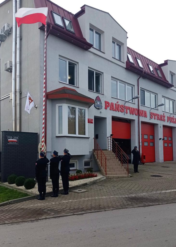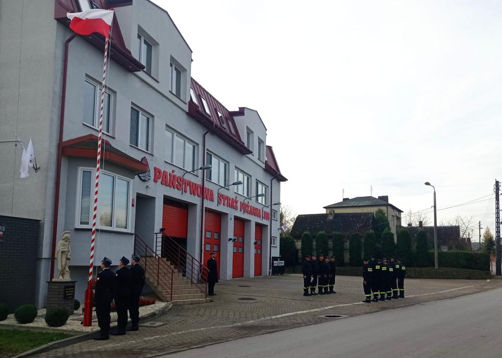 Z okazji Narodowego Święta Niepodległości 11 listopada przed budynkiem Komendy Powiatowej Państwowej Straży Pożarnej w Przysusze odbyła się uroczysta zmiana służby oraz podniesienie flagi państwowej.