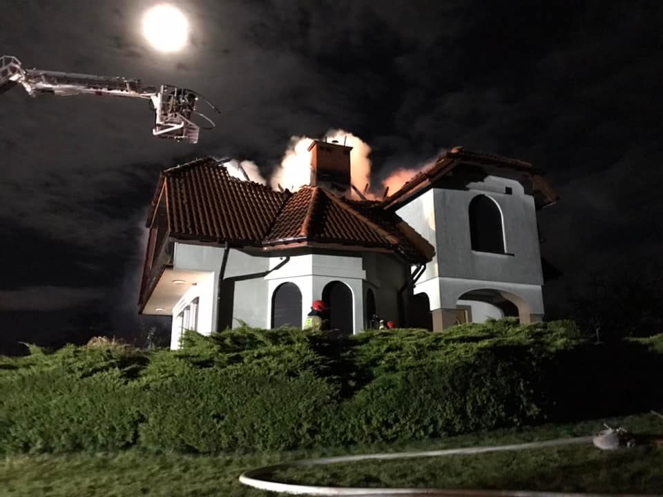 Dnia 19 grudnia br. chwilę po godzinie 19 do Stanowiska Kierowania Komendanta Powiatowego w Przysusze wpłynęło zgłoszenie o widocznych płomieniach w lesie w okolicy miejscowości Głogów (Konary) gm. Wieniawa. Dyżurny Stanowiska Kierowania niezwłocznie zadysponował pierwsze zastępy z JRG Przysucha oraz OSP Wieniawa. Po dojeździe na miejsce pierwszego zastępu stwierdzono, że pali się poddasze w budynku mieszkalnym. Od osób postronnych Kierujący Działaniami Ratowniczymi uzyskał informację, że w budynku nie przebywa żadna osoba. Na miejsce zadysponowano dodatkowe siły i środki z OSP z pobliskich gmin. Działania zastępów w pierwszej fazie skupiały się na podaniu prądów wody na palący się dach. Po wejściu do środka budynku, rota wyposażona w linię gaśniczą oraz kamerę termowizyjną przeszukała mieszkanie, a następnie udała się na poddasze w celu lokalizacji pożaru. Dalsze działania polegały na pracach rozbiórkowych oraz dogaszaniu spalonej konstrukcji dachu.