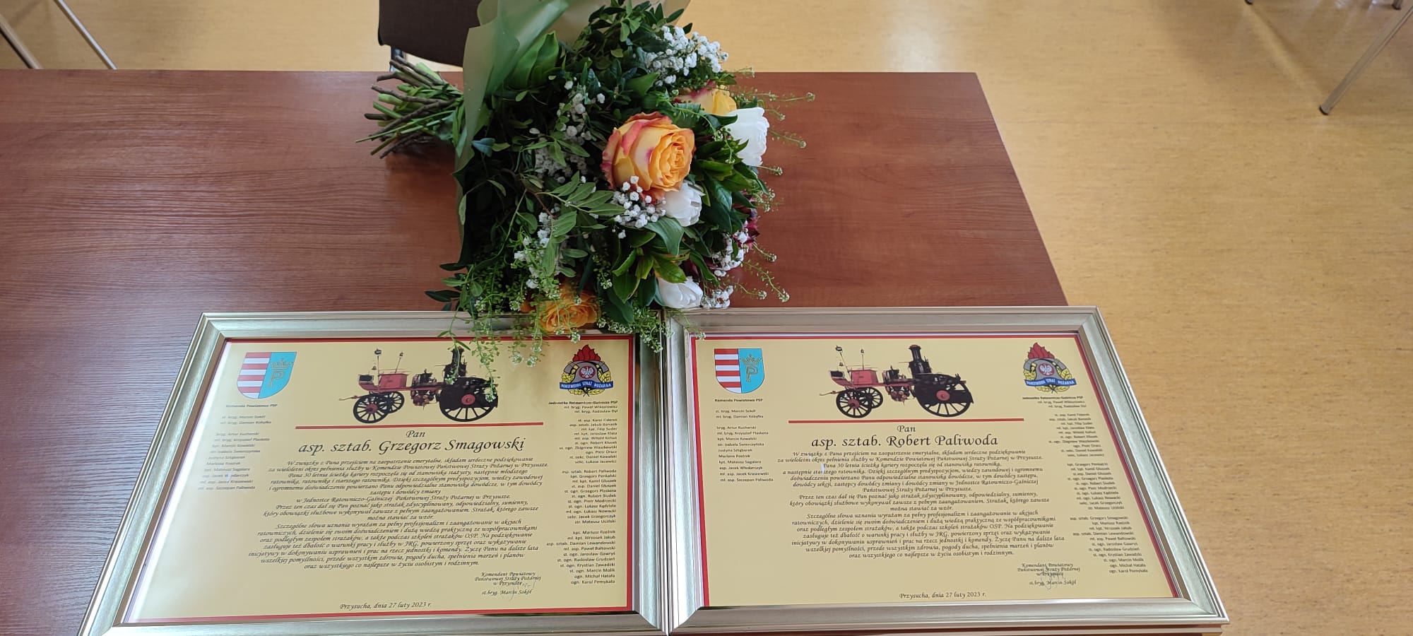 Z dniem 27 lutego br. okres czynnej służby zawodowej zakończyli i przeszli na zasłużone zaopatrzenie emerytalne asp. sztab. Robert Paliwoda i asp. sztab. Grzegorz Smagowski. Pełnili oni funkcję dowódców zmian w Jednostce Ratowniczo –Gaśniczej.
