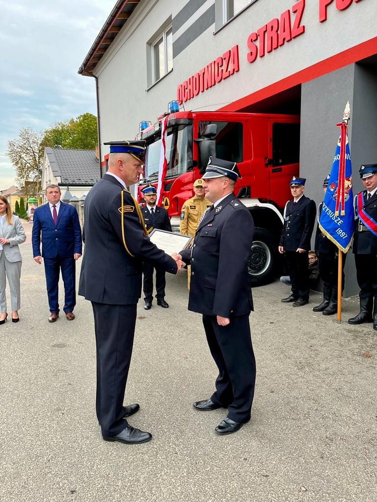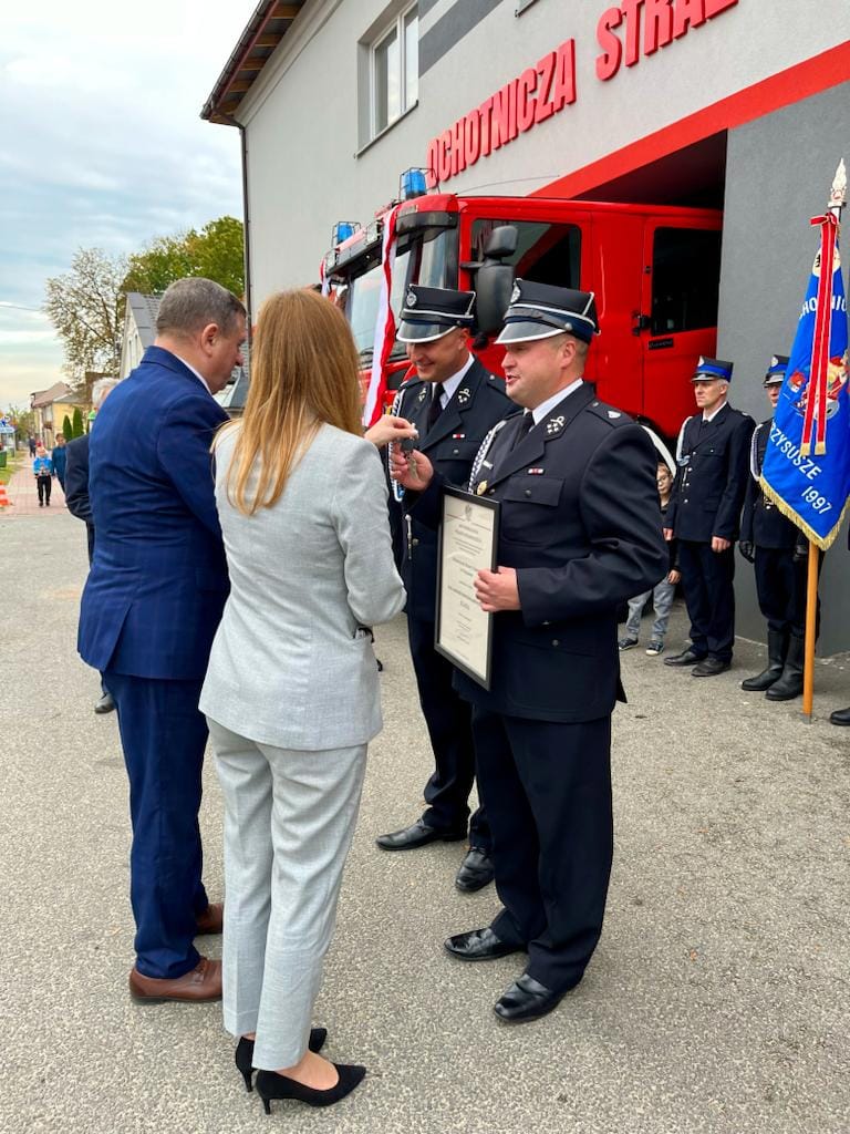 W uroczystości przekazania brali udział: doradca Ministra Klimatu i Sekretarz Powiatu Przysuskiego Pani Marta Zbrowska, Wicestarosta Powiatu Przysuskiego Pan Marek Kilianek, Przewodniczący Rady Gminy i Miasta w Przysusze Pan Mirosław Pierzchała, Komendant Powiatowy PSP w Przysusze st. bryg. Marcin Sokół, Zastępca Komendanta Powiatowego PSP w Przysusze mł. bryg. Damian Kobyłka, Dowódca JRG w Przysusze mł. bryg. Paweł Wiktorowicz.