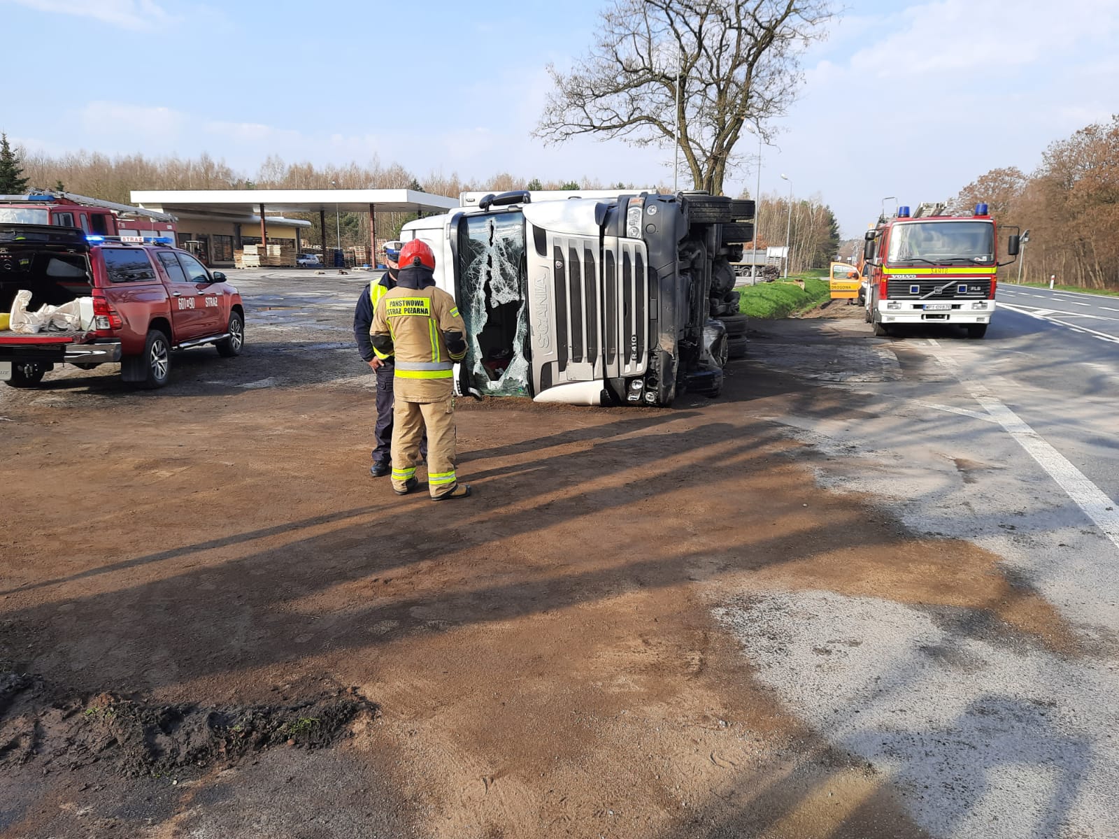 W dniu 21 kwietnia br. do Stanowiska Kierowania Komendanta Powiatowego w Przysusze wpłynęło zgłosznie o samochodzie ciężarowym, który stoczył się do rowu na DK12 w m. Gielniów. W pojeździe doszło do rozszczelnienia zbiornika z paliwem. Po przybyciu na miejsce zdarzenia pierwszych zastępów straży pożarnej zastano, przewrócony ciągnik siodłowy marki Scania z naczepą typu chłodnia na prawym boku, wyciek oleju napędowego, który gromadzi się w zagłębieniu asfaltowym i częściowo spływa do pobliskiego rowu, kierowca samochodu zabezpieczony przez patrol Policji, który po przebadaniu przez ZRM nie wymagał hospitalizacji. Na miejsce zadysponowano specjalistyczną grupę ratownictwa chemiczno-ekologicznego SGR Chem-Eko "Radom 6", która po dojeździe dokonała przepompowania pozostałego paliwa w uszkodzonym zbiorniku pojazdu, oraz zebrała rozlane w zagłębieniu asfaltowym paliwo do pojemników zastępczych. Następnie dokonano sorpcji resztek paliwa przy pomocy sorbentu i spryskano neutralizatorem.