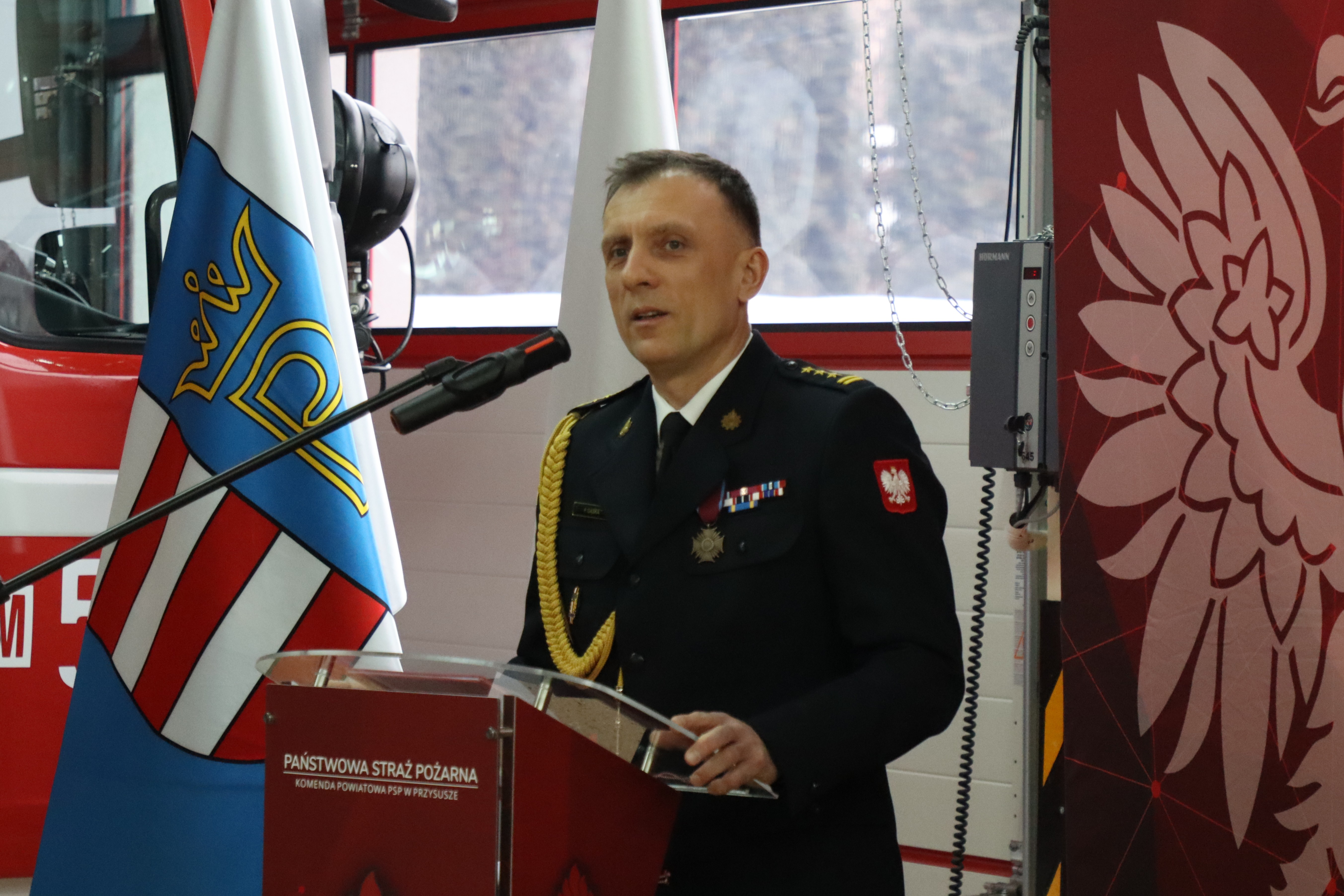 23 stycznia 2026 roku w siedzibie Komendy Powiatowej Państwowej Straży Pożarnej w Przysusze odbyła się uroczystość zdania i przyjęcia pełnienia obowiązków służbowych na stanowisku Komendanta Powiatowego Państwowej Straży Pożarnej w Przysusze.